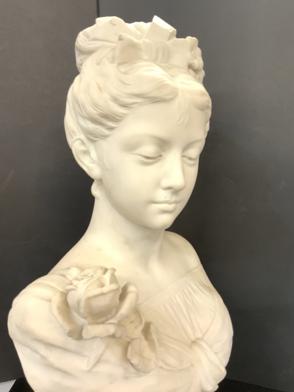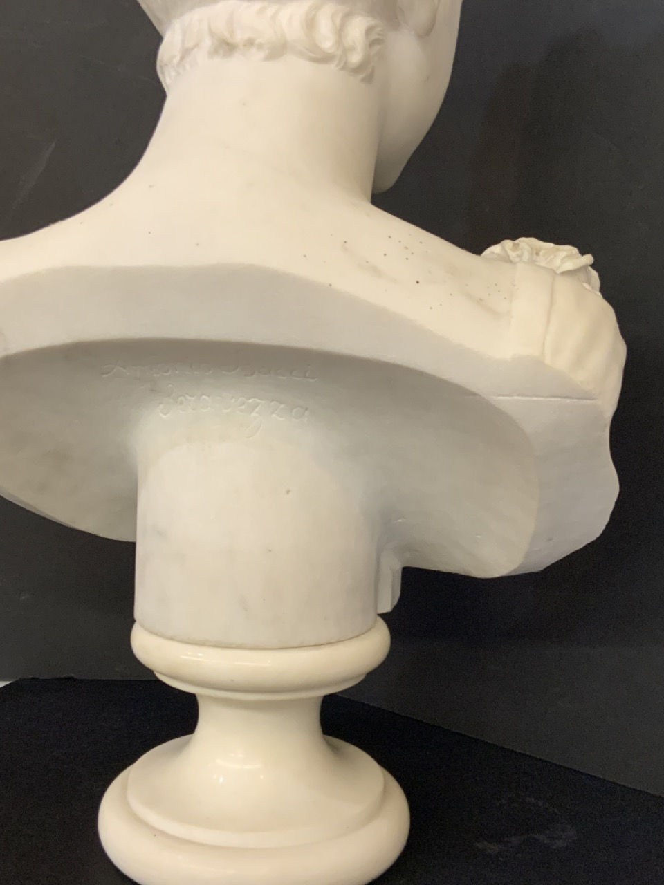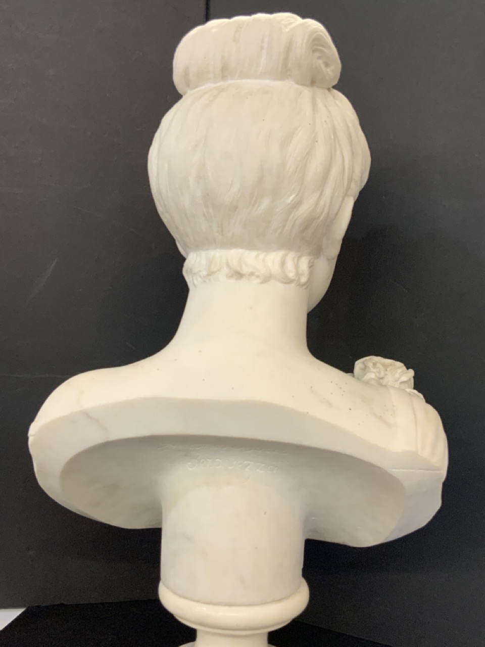 Marble bust sculpture of female.