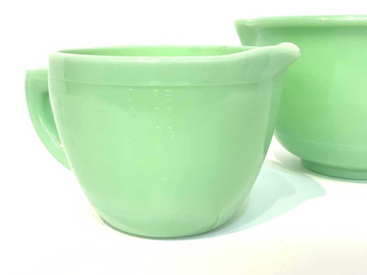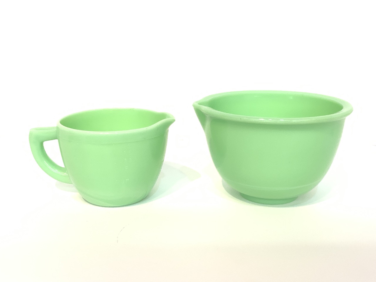 Two (2) piece Jadeite measuring cup and bowl. Mckee.