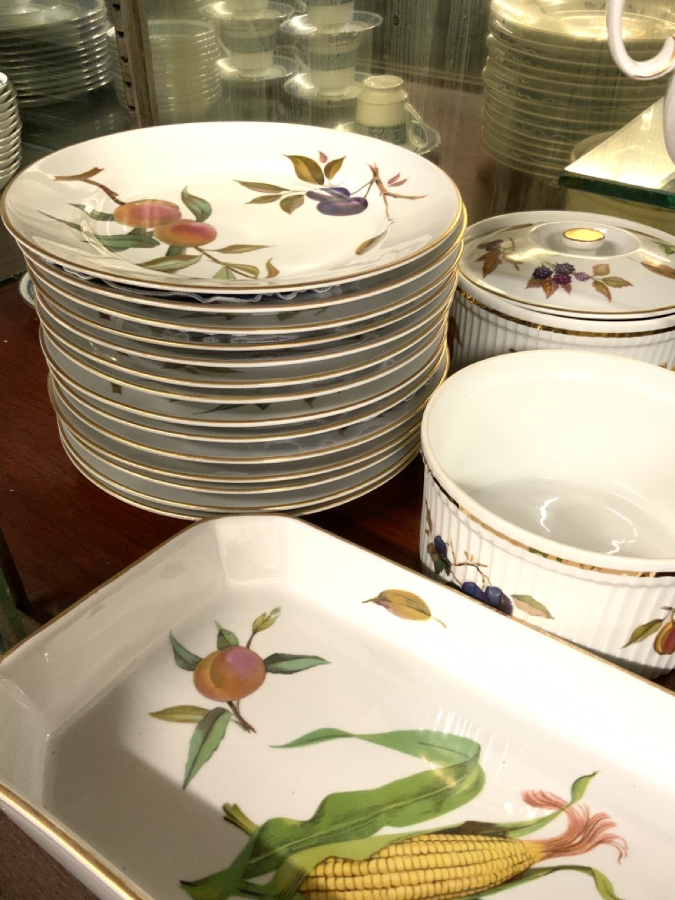 An extensive Royal Worcester Evesham dinner service. Please see photograph preview. Fine set with many extras and service for approx. 14+.