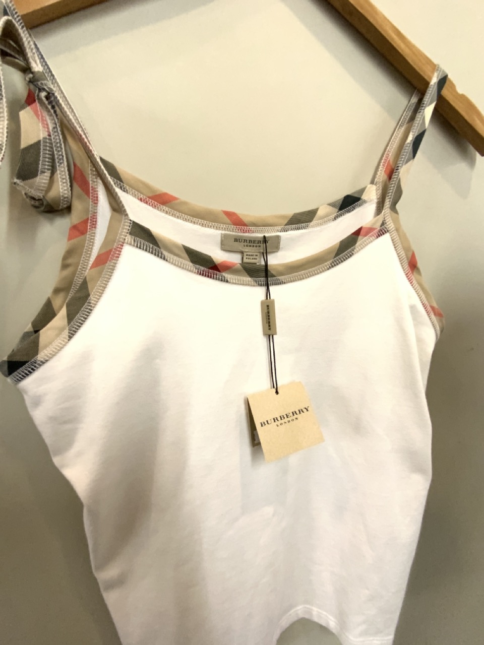 Two (2) piece Burberry tank top and black top with plaid collar.