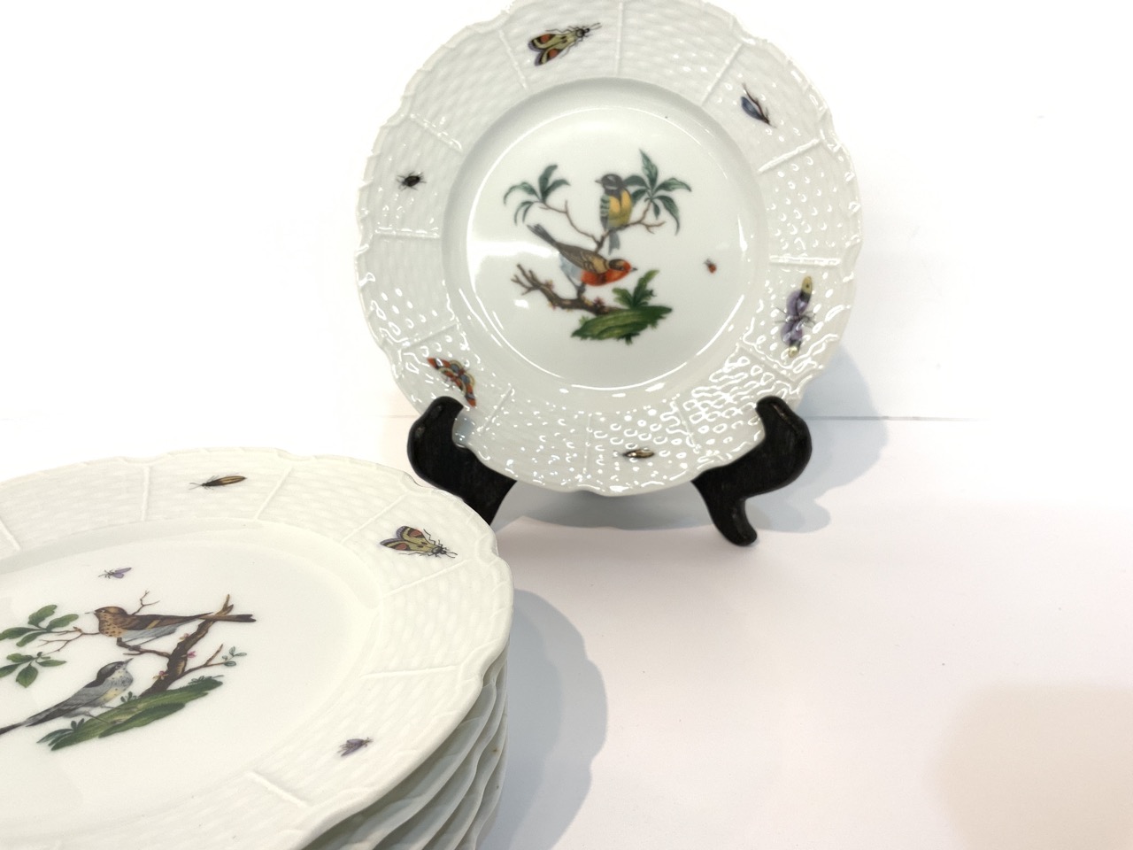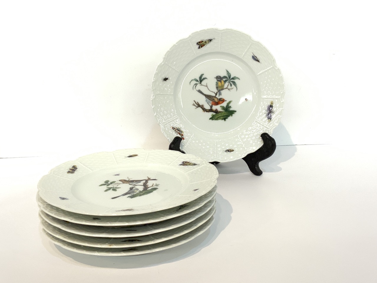 Six (6) Limoges "Ceraline" bird decorated dessert plates.