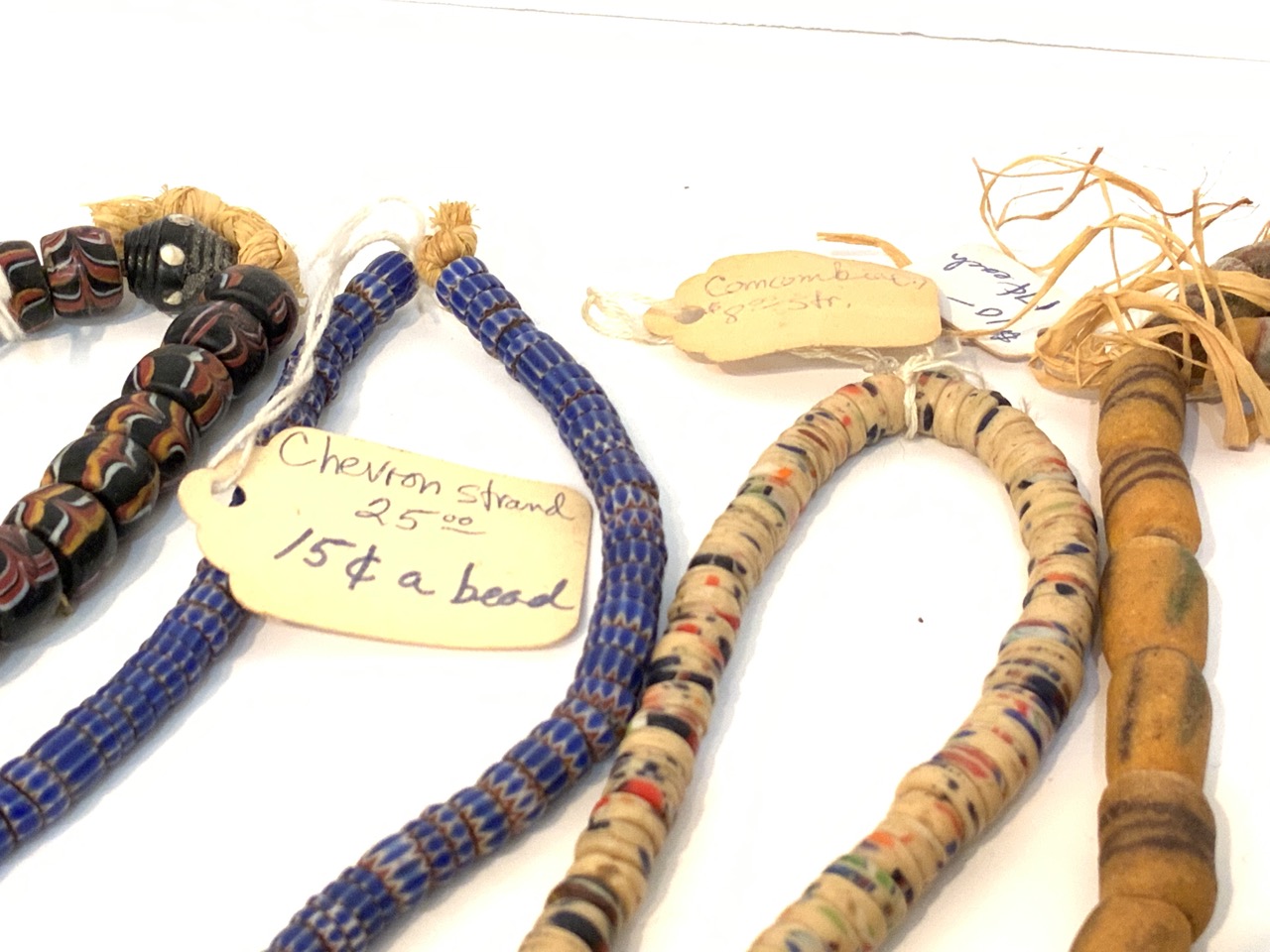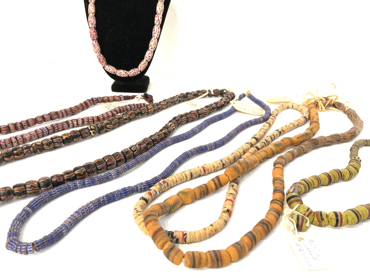 Provenance: Curated collection over 70+ years of purchasing/collecting African trade beads, Italian glass, Asian and tribal stones. Careful inspection encouraged. Bergen Cty. New Jersey Estate