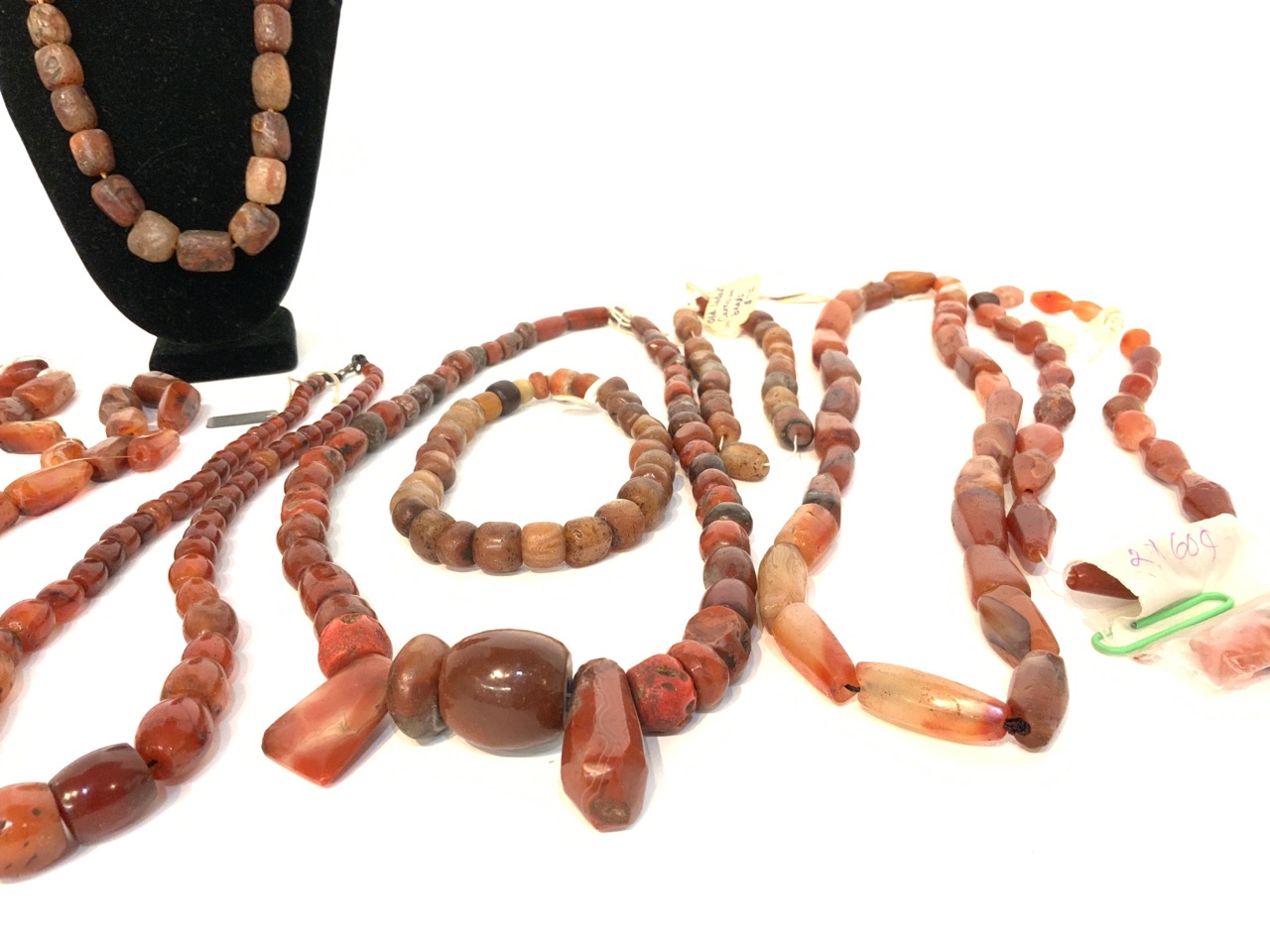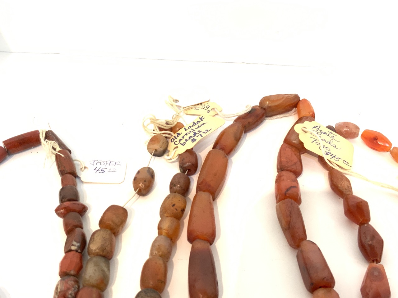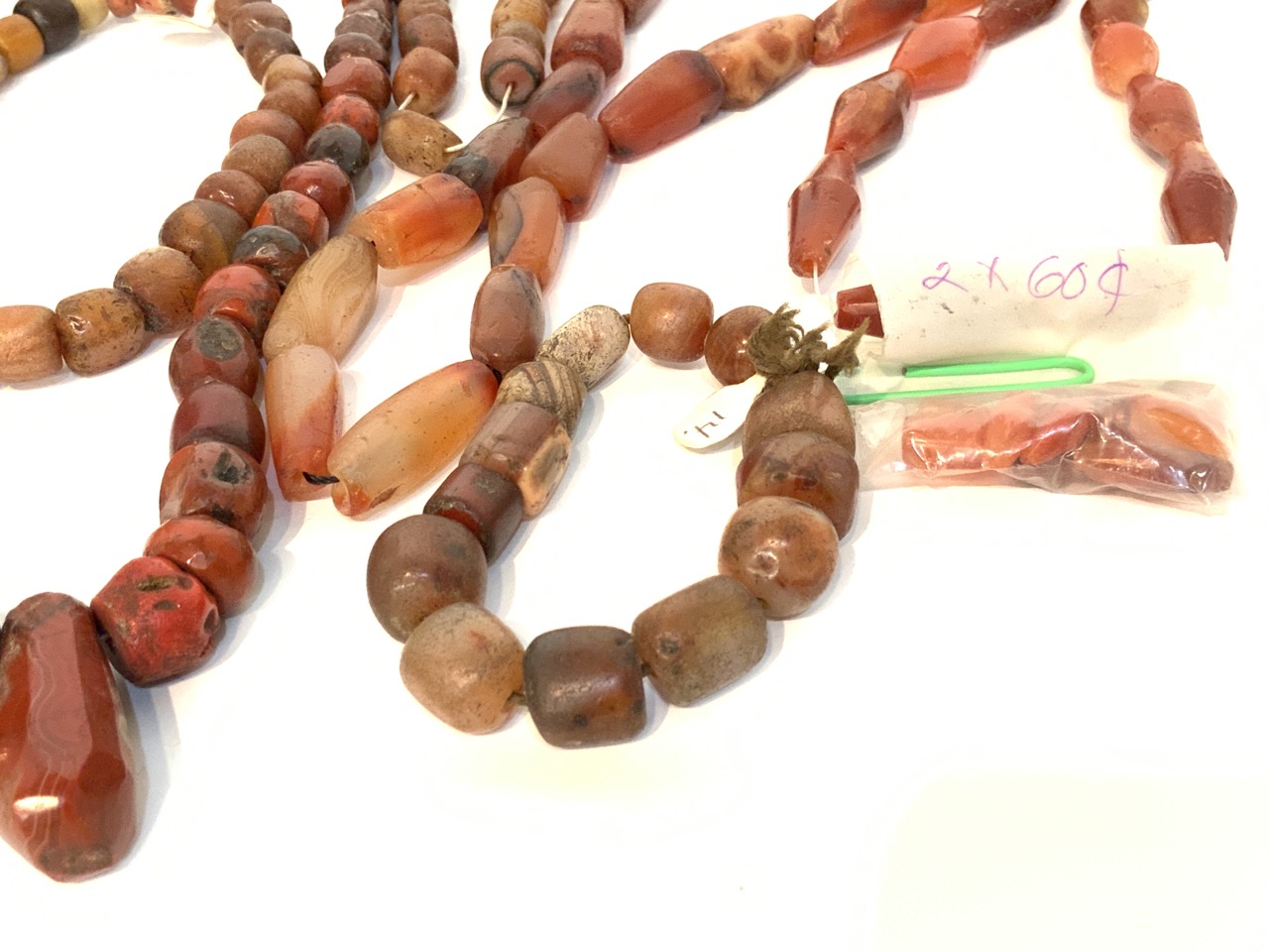 African trade beads grouping. Carnelian, Agate and Jasper stone beads. As see in photograph preview.
