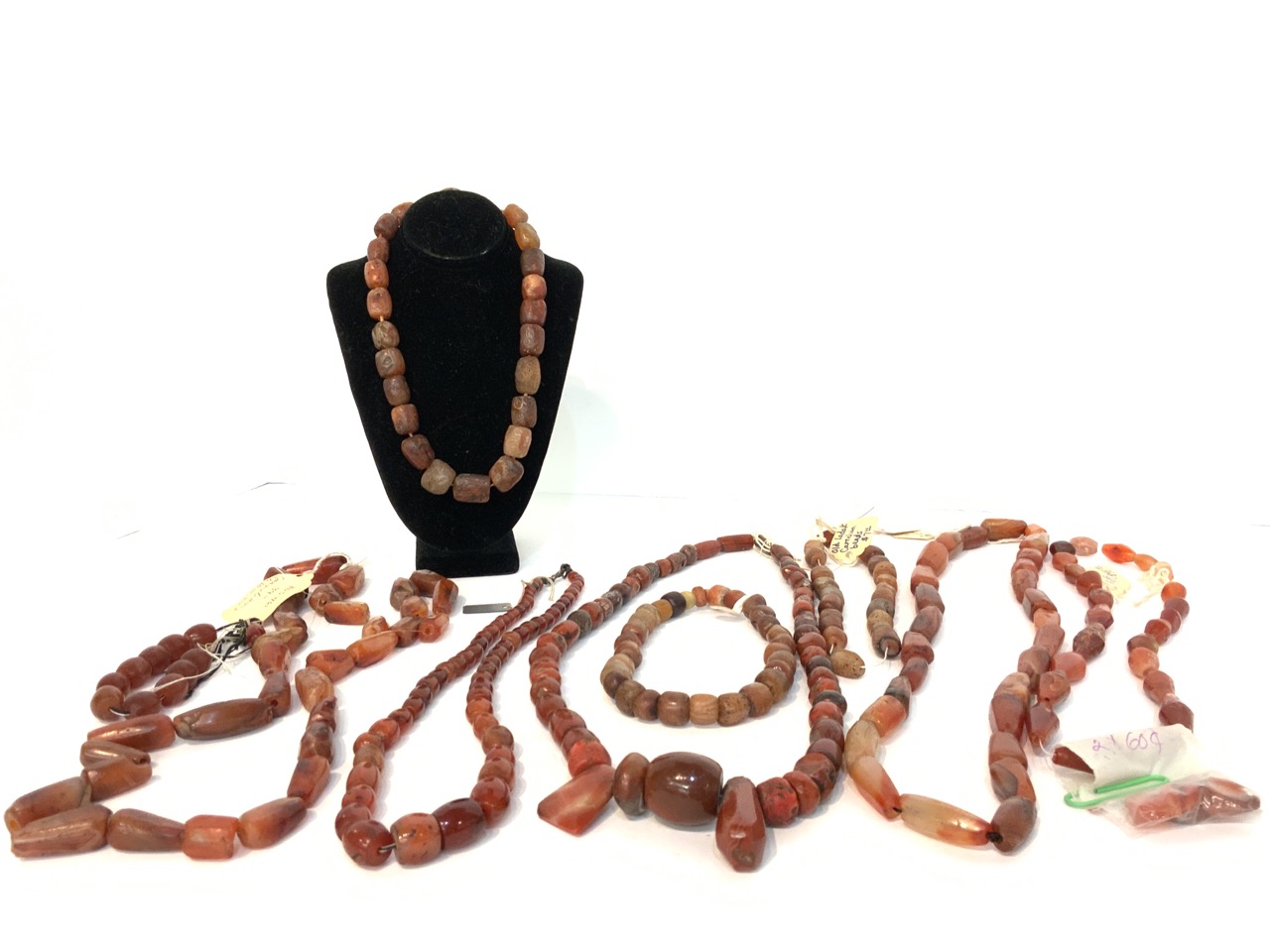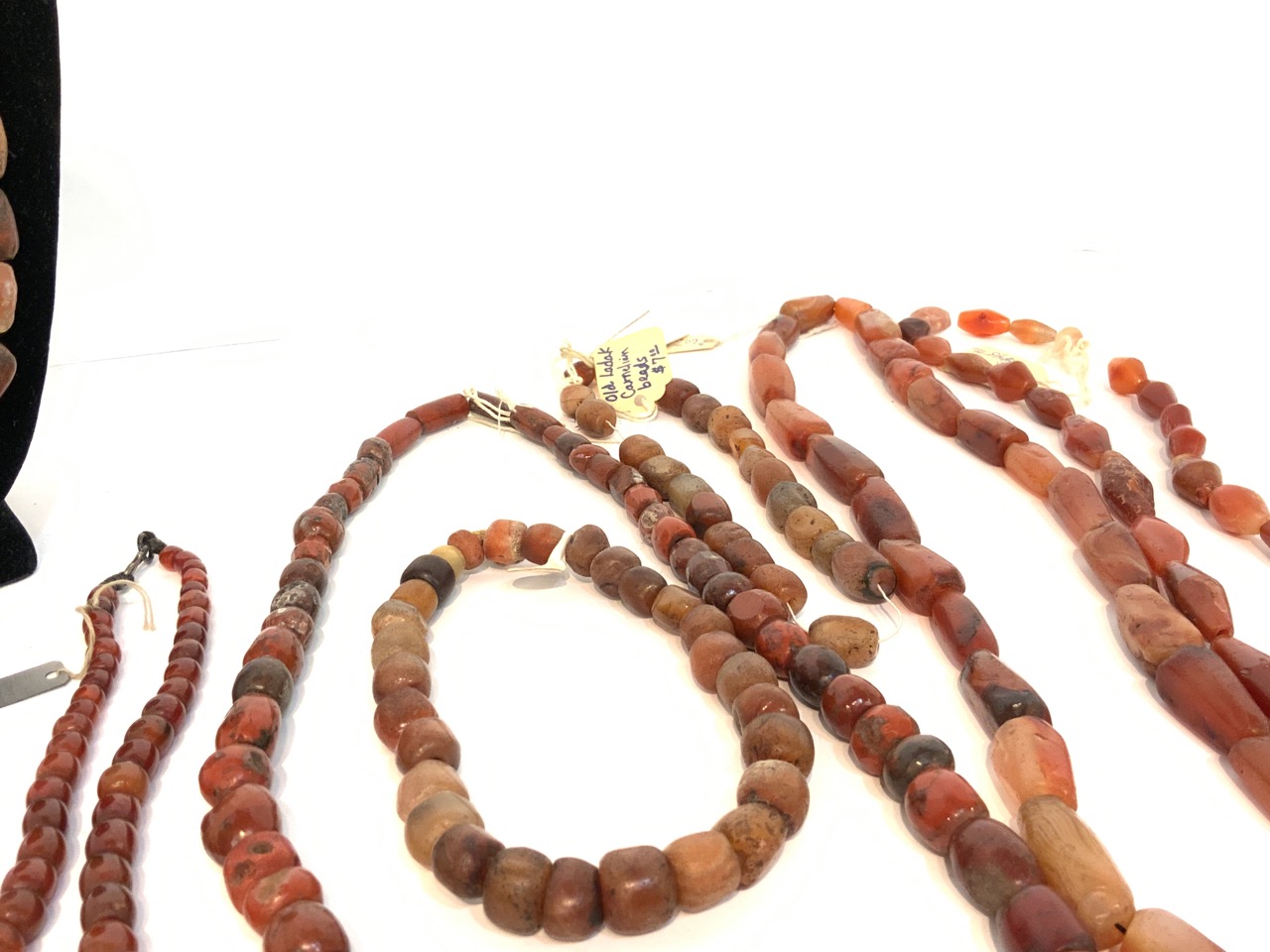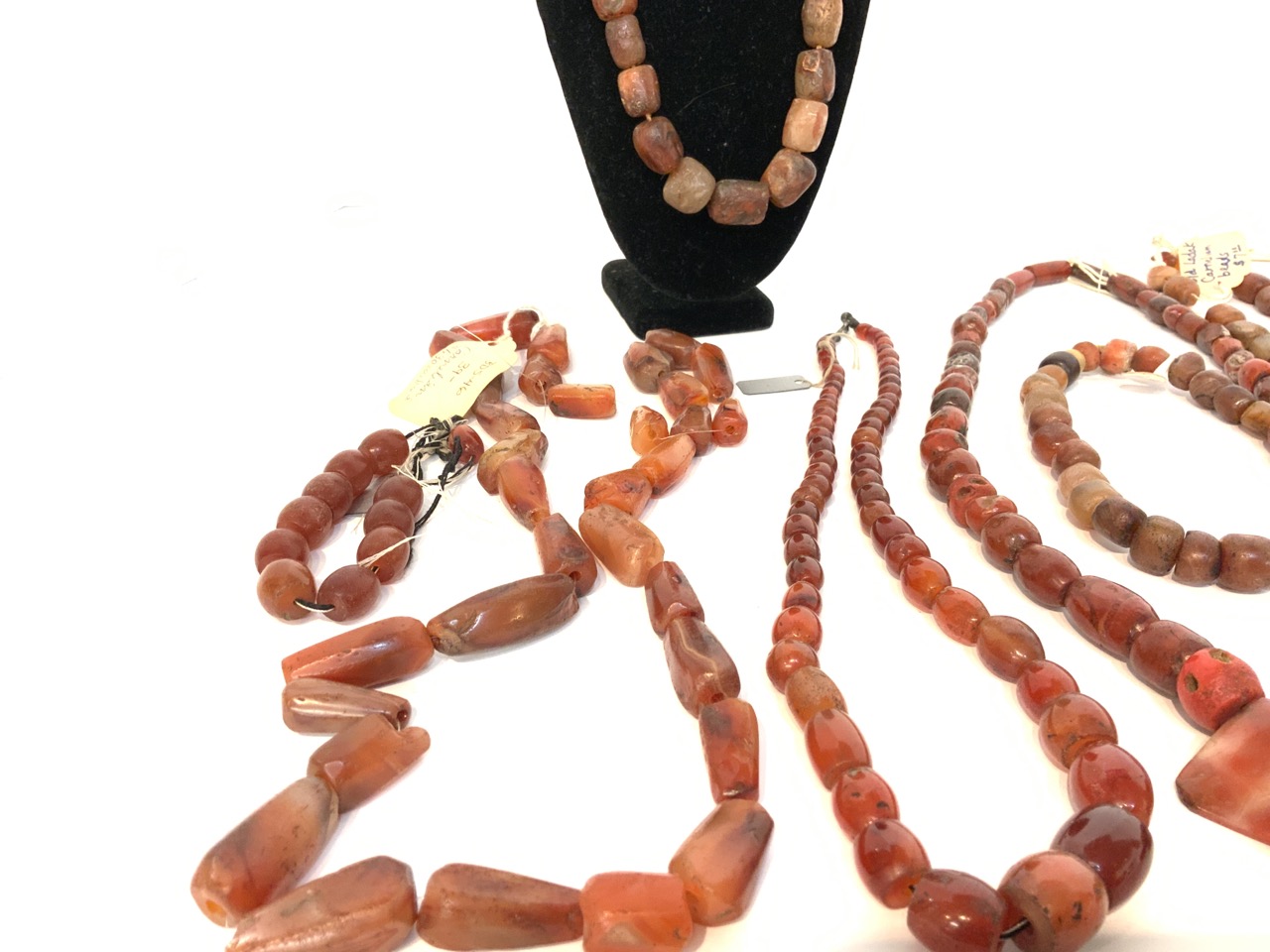 African trade beads grouping. Carnelian, Agate and Jasper stone beads. As see in photograph preview.