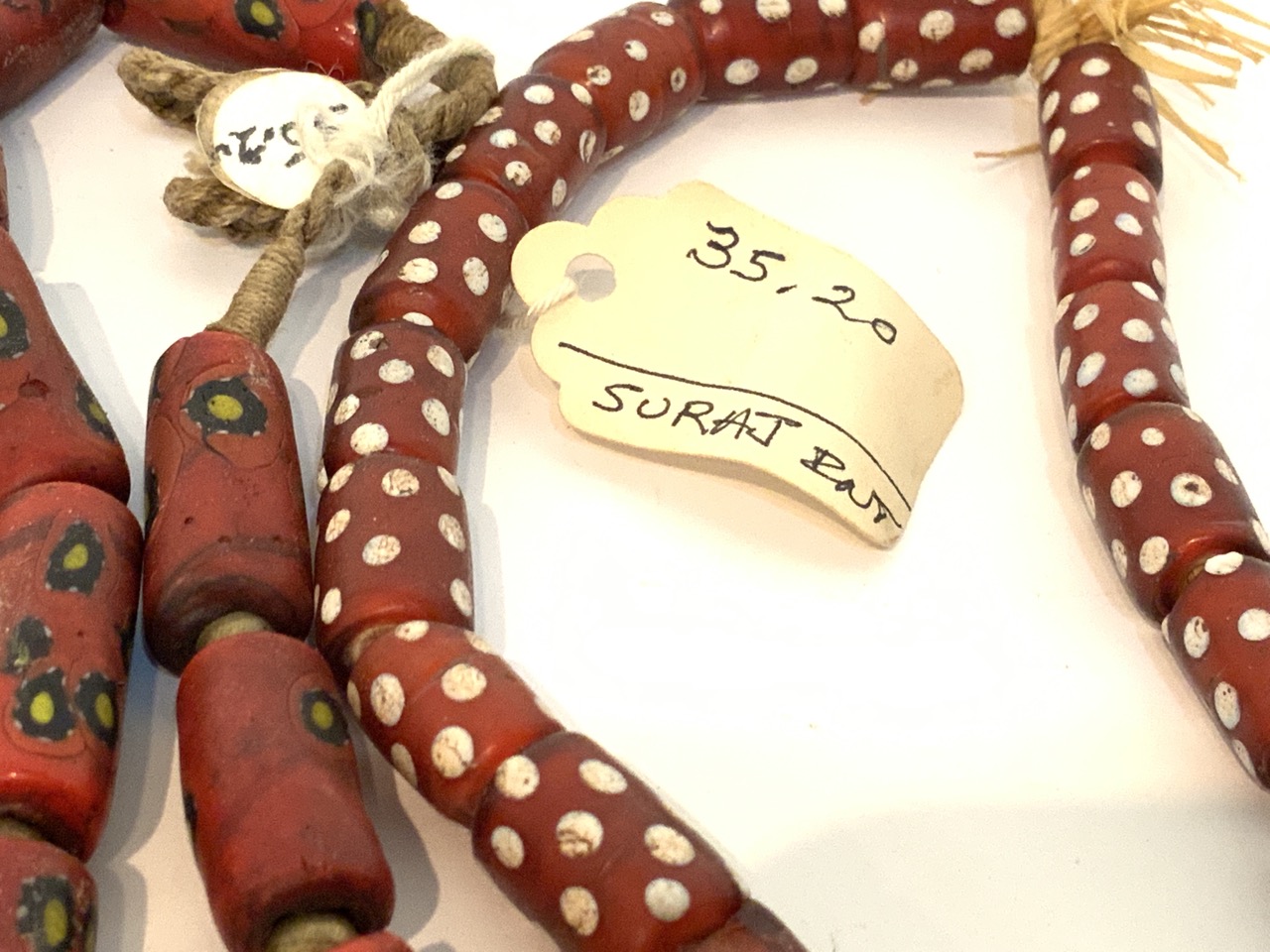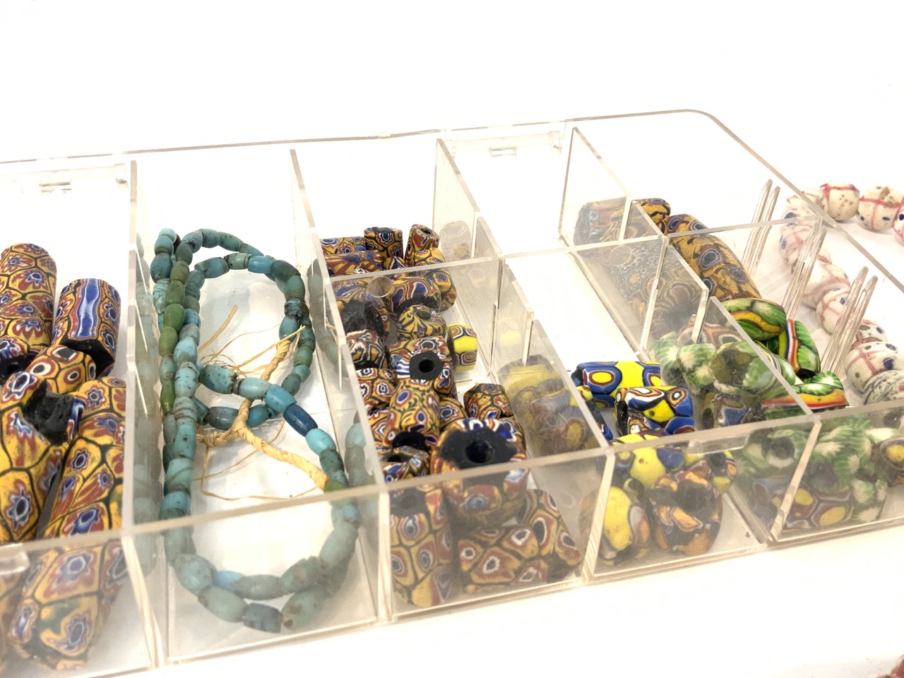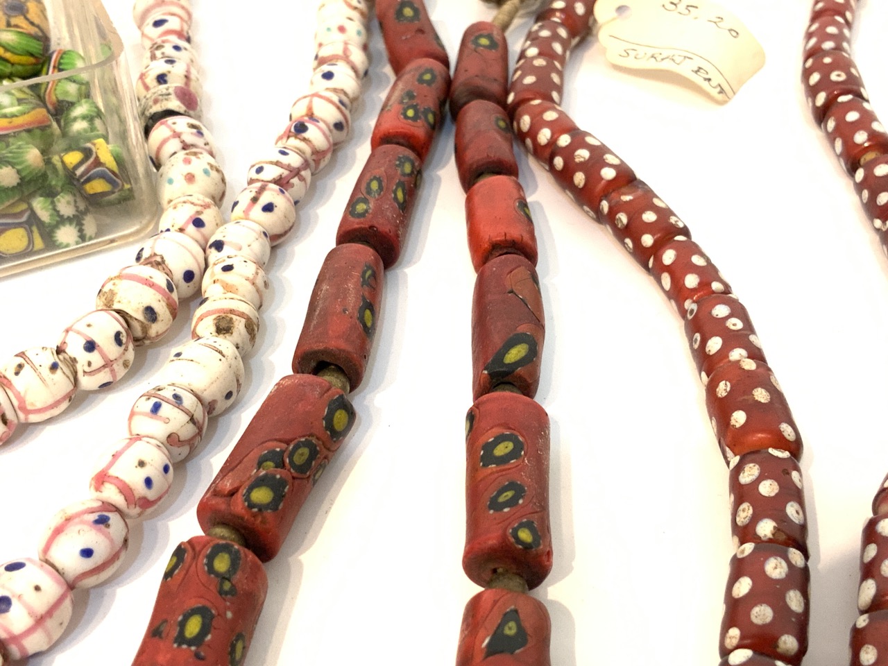 Provenance: Curated collection over 70+ years of purchasing/collecting African trade beads, Italian glass, Asian and tribal stones. All old price tags when purchased left with each piece when possible. Careful inspection encouraged. Bergen Cty. New Jersey Estate