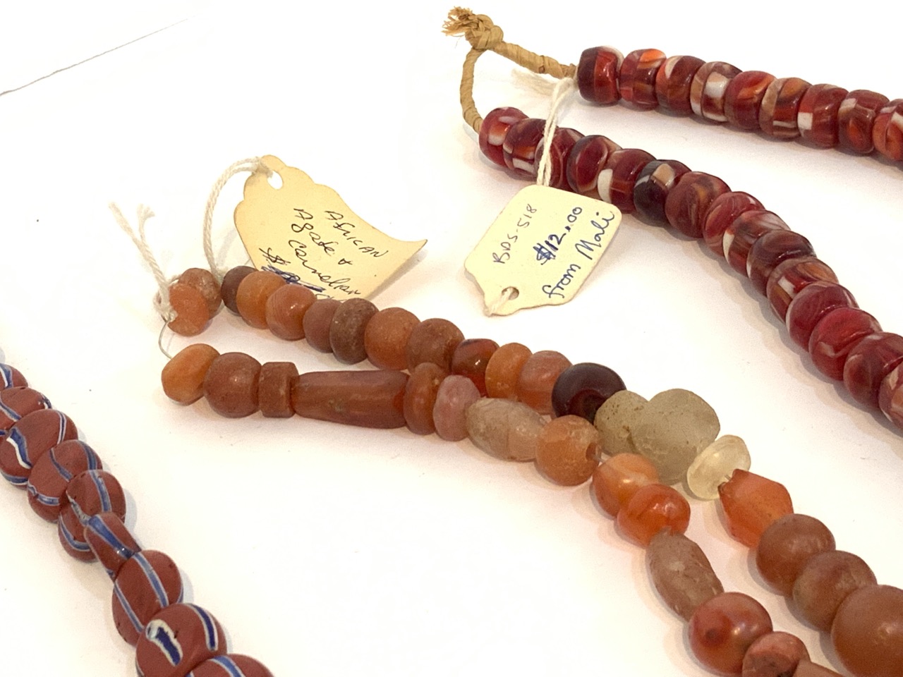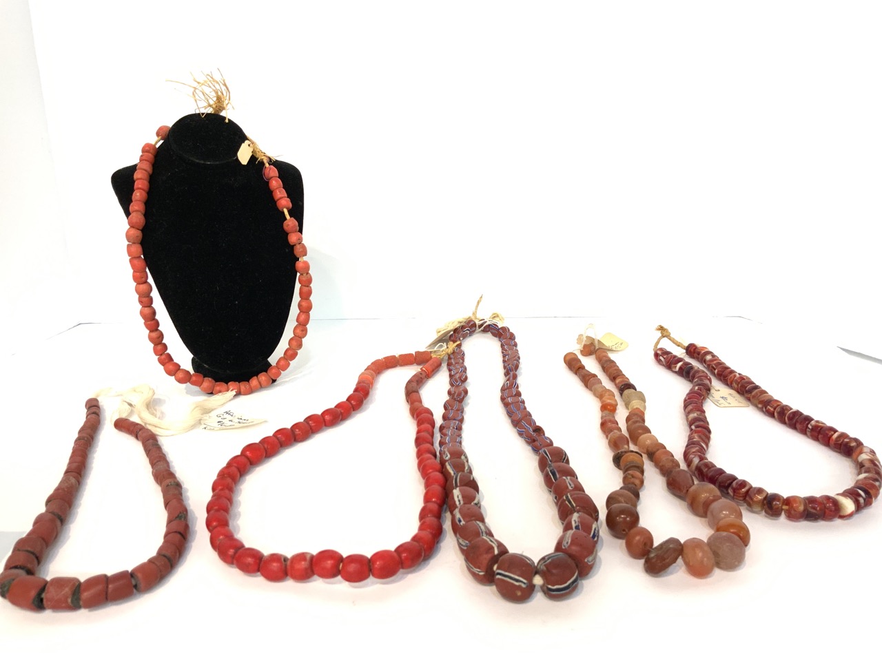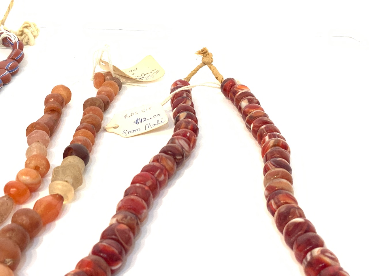 Provenance: Curated collection over 70+ years of purchasing/collecting African trade beads, Italian glass, Asian and tribal stones. All old price tags when purchased left with each piece when possible. Careful inspection encouraged. Bergen Cty. New Jersey Estate