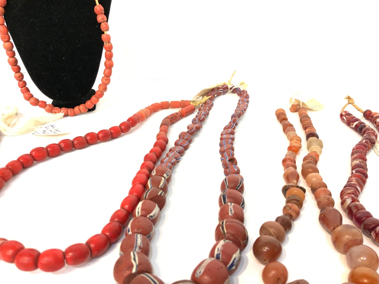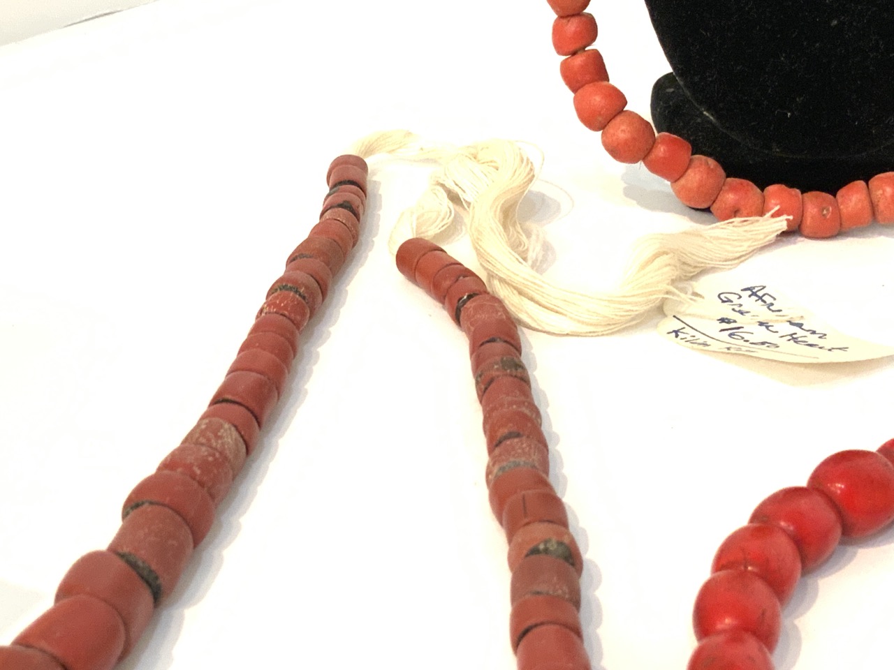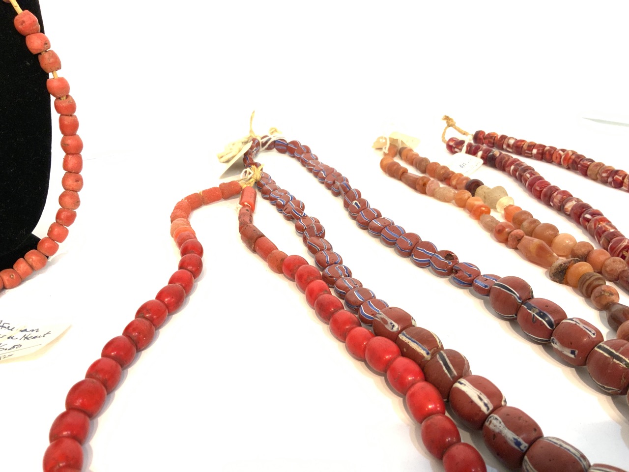 Provenance: Curated collection over 70+ years of purchasing/collecting African trade beads, Italian glass, Asian and tribal stones. All old price tags when purchased left with each piece when possible. Careful inspection encouraged. Bergen Cty. New Jersey Estate