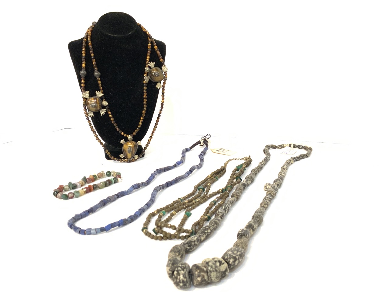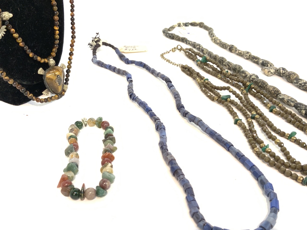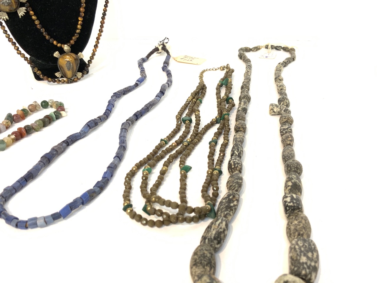 Provenance: Curated collection over 70+ years of purchasing/collecting African trade beads, Italian glass, Asian and tribal stones. All old price tags when purchased left with each piece when possible. Careful inspection encouraged. Bergen Cty. New Jersey Estate