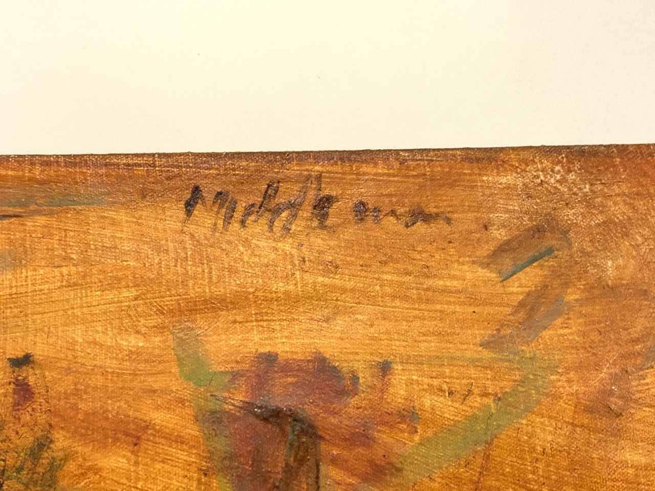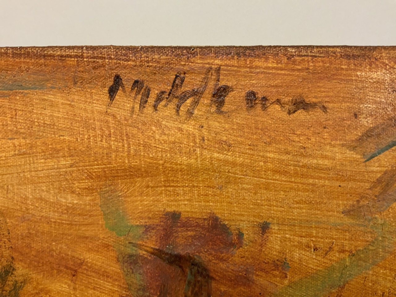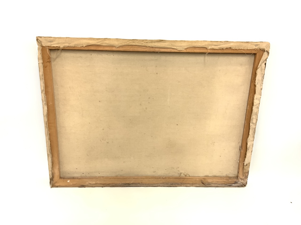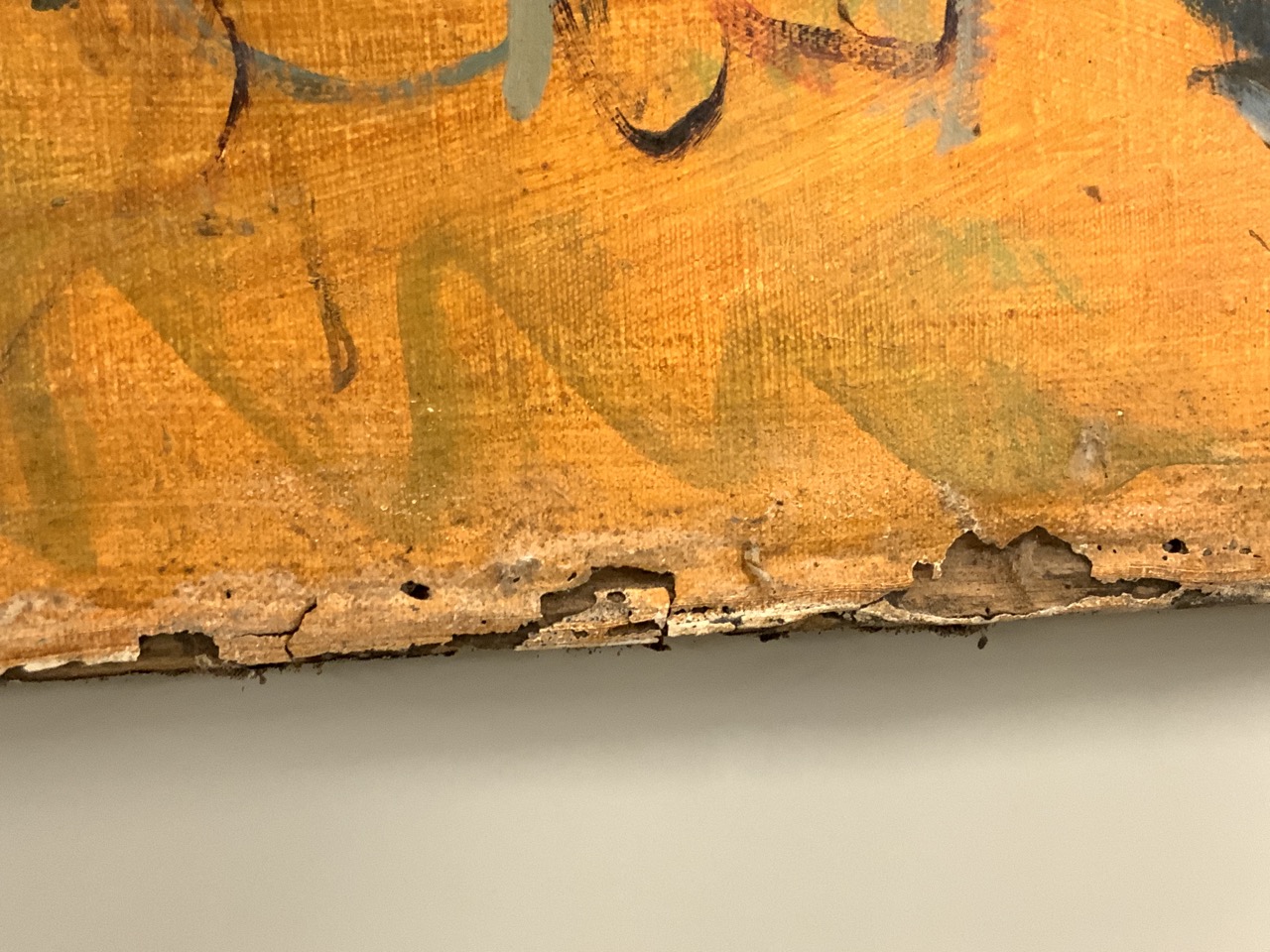 Bottom edge damage noted. Please see photograph preview. Image and main body of painting not affected.