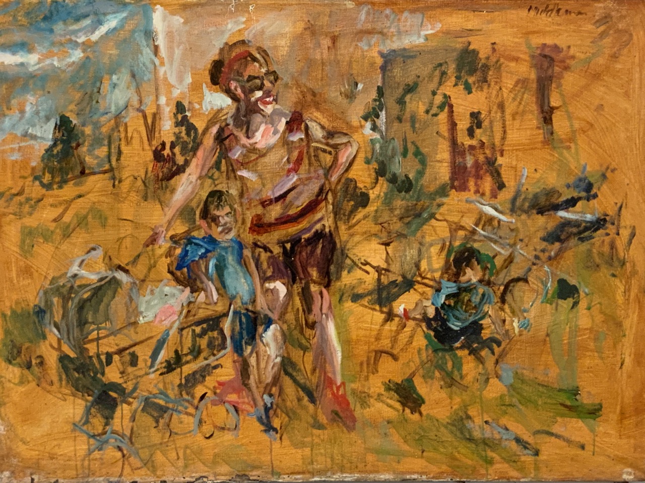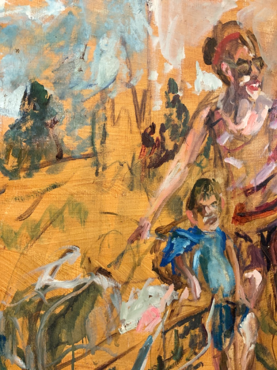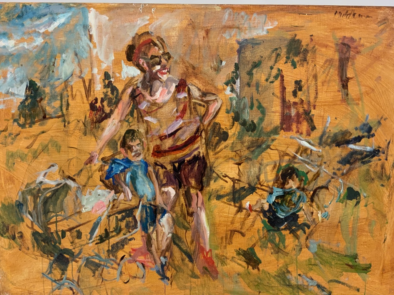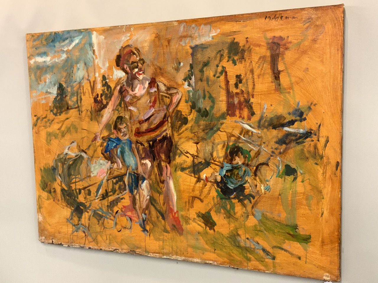 Bottom edge damage noted. Please see photograph preview. Image and main body of painting not affected.