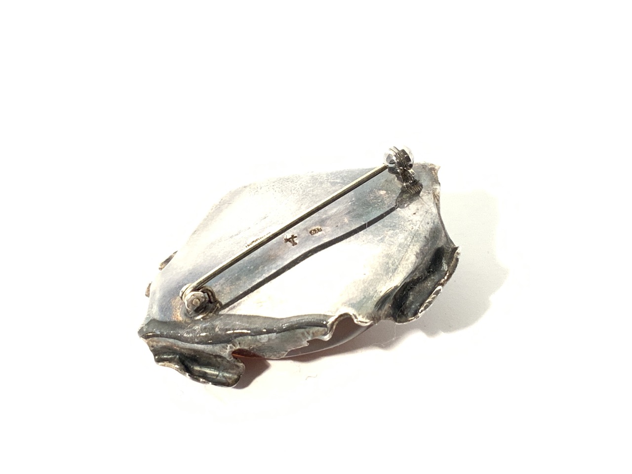 A Brutalist designed sterling silver amber pin. Large 2"diameter.
