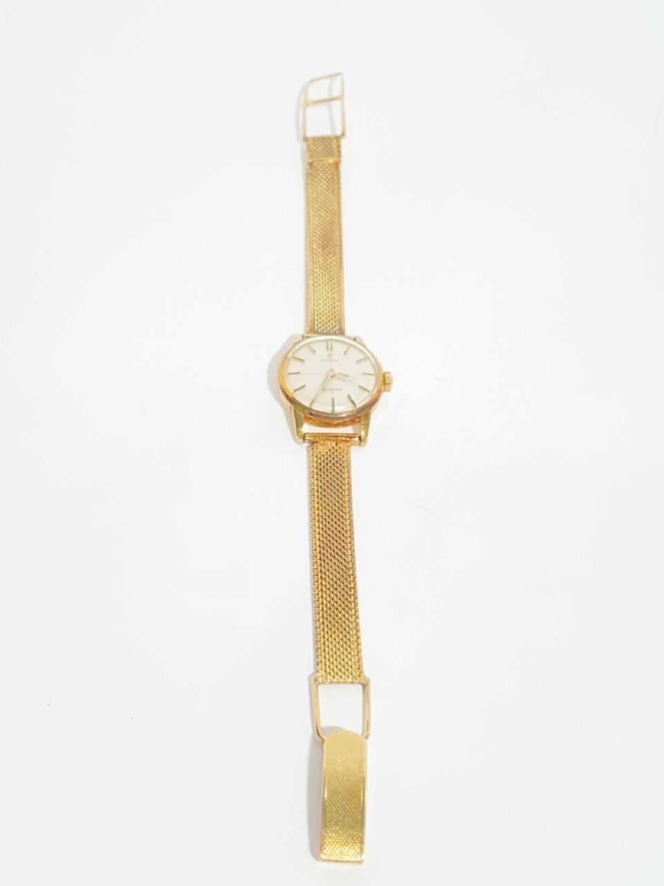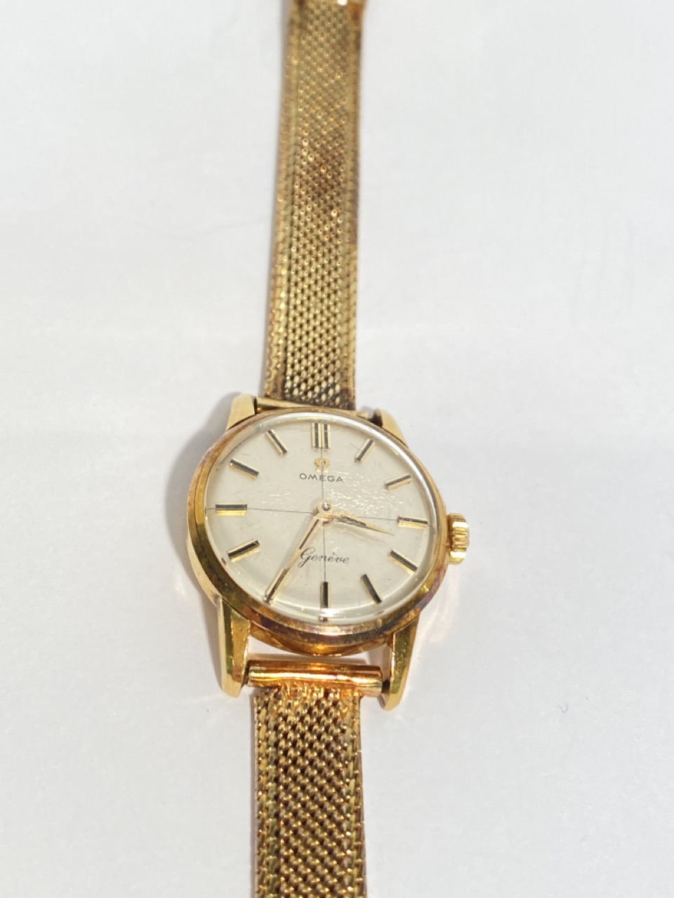 All 14k gold Omega lady's wristwatch. Swiss movement. Watch and band marked 14k.