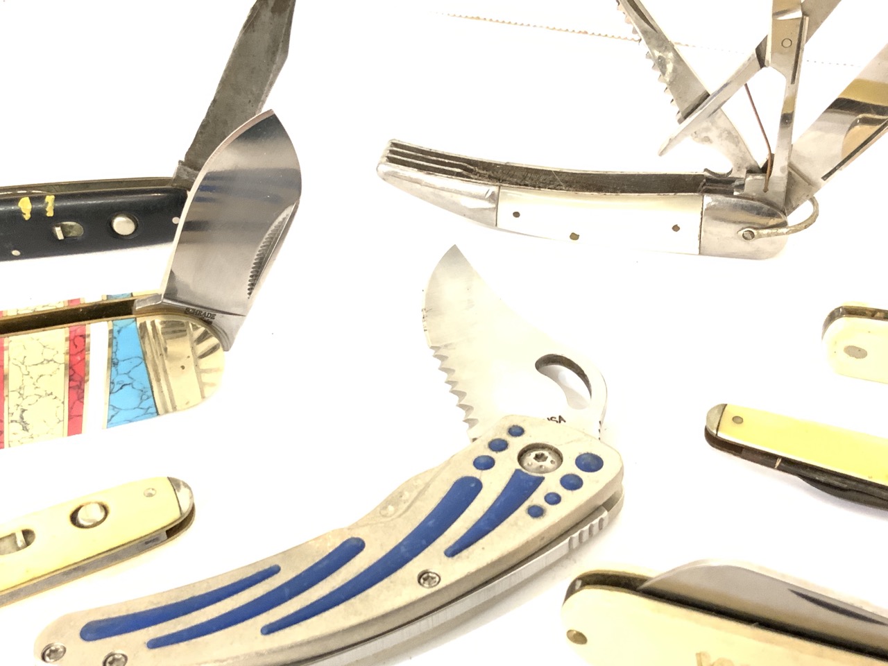 Eleven (11) Piece Schread Pocket Knives. Ellenville, New York.