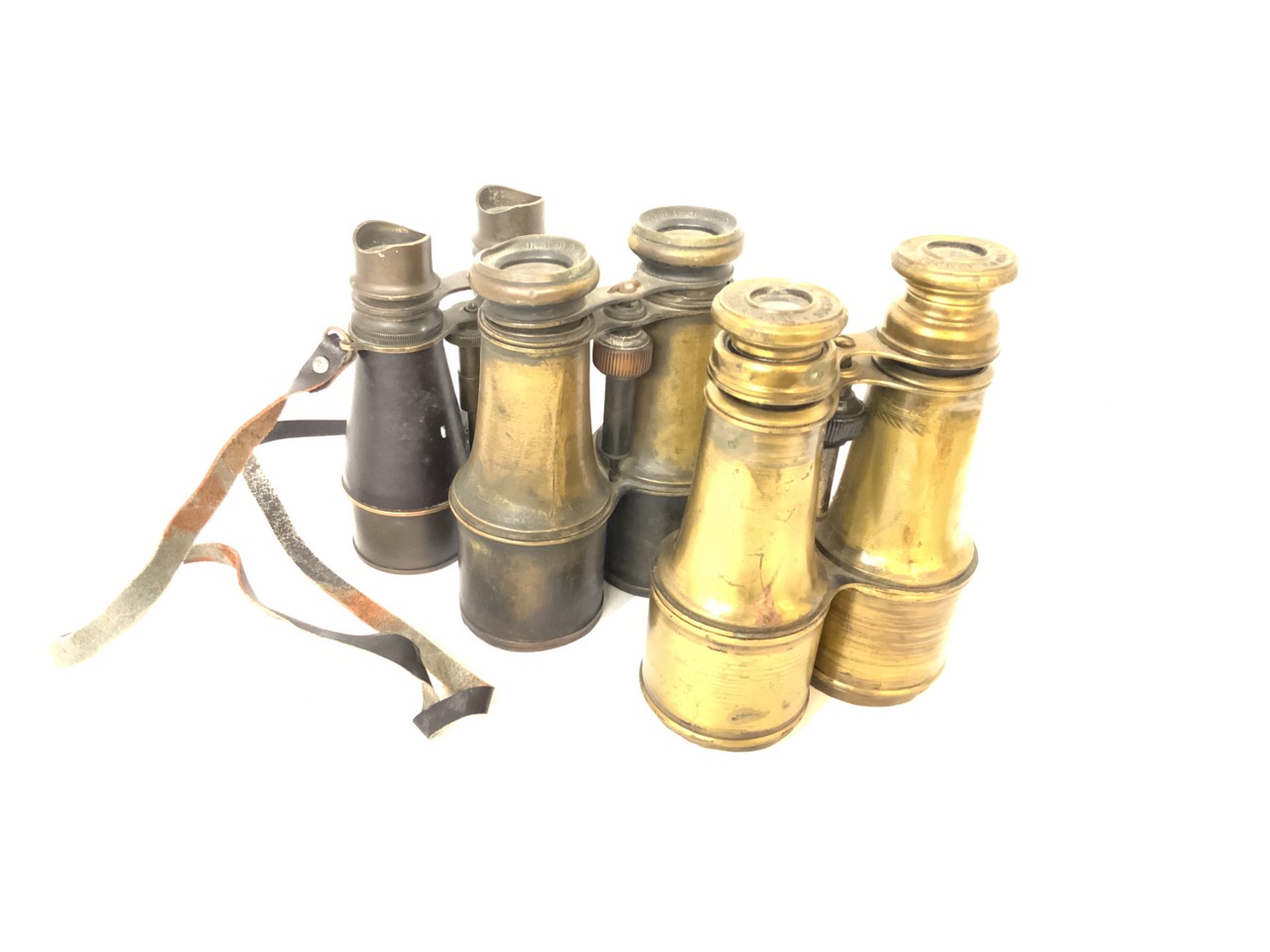 Lot of three (3) British WWI brass officers binoculars.