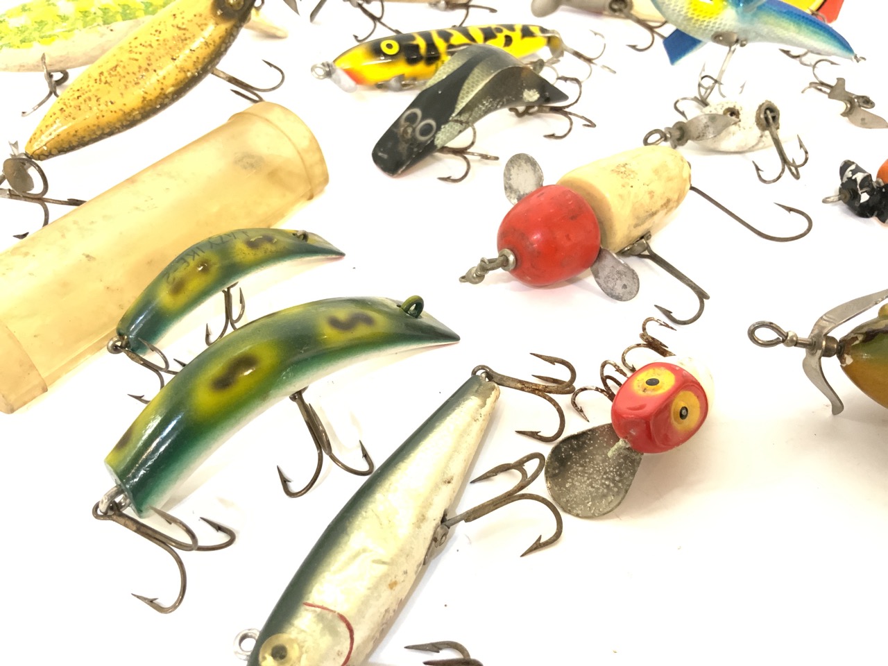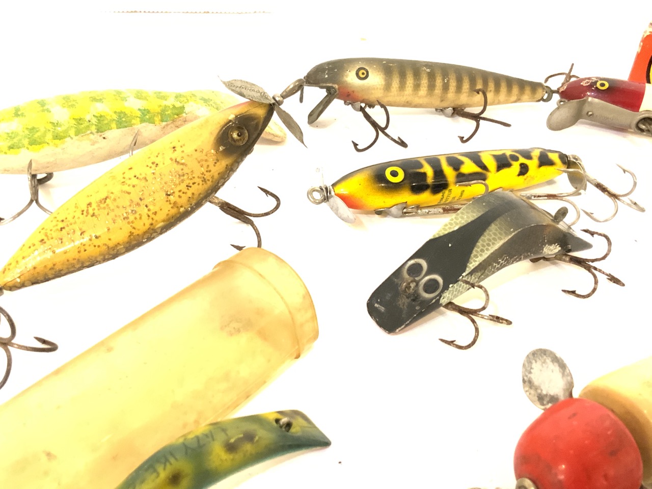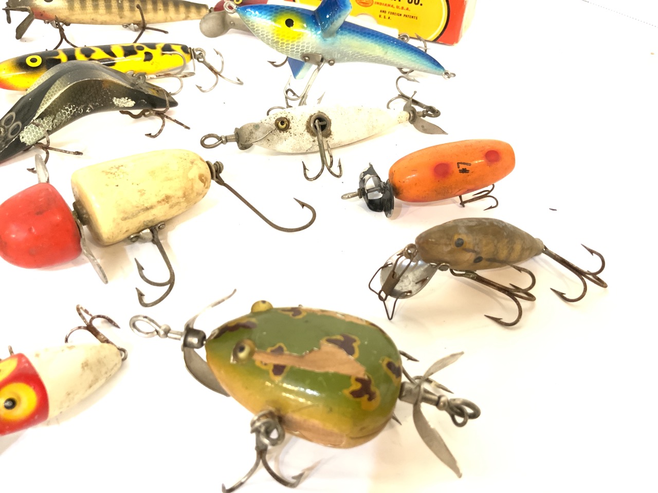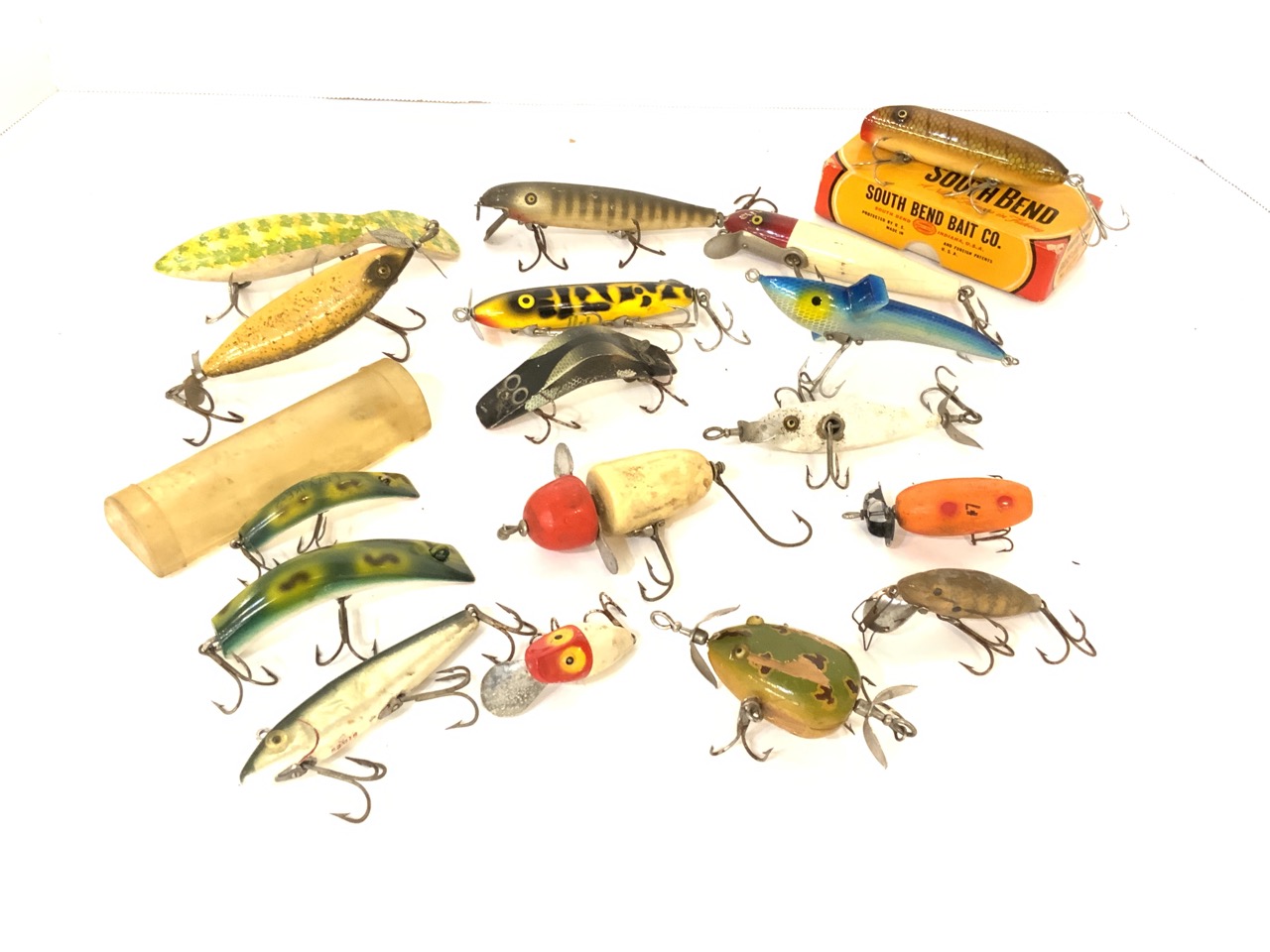 Seventeen (17) Vintage wooden fishing lure lot. As seen in photograph preview.