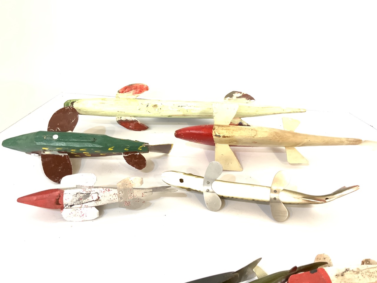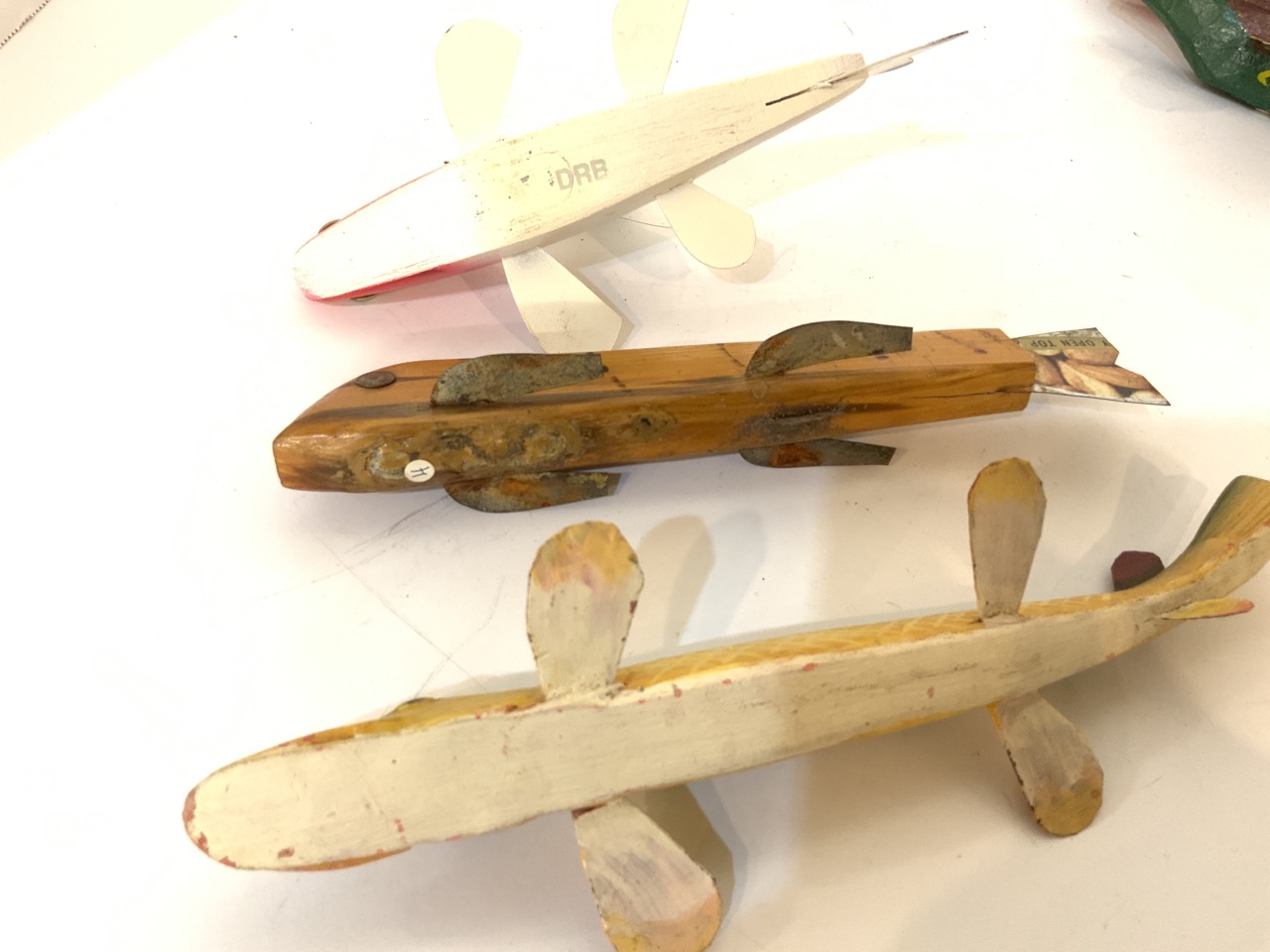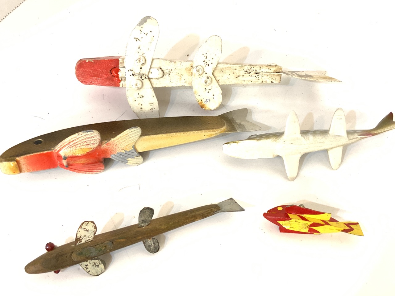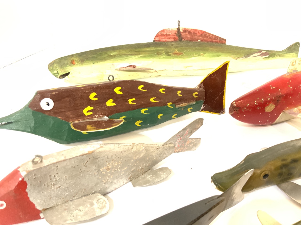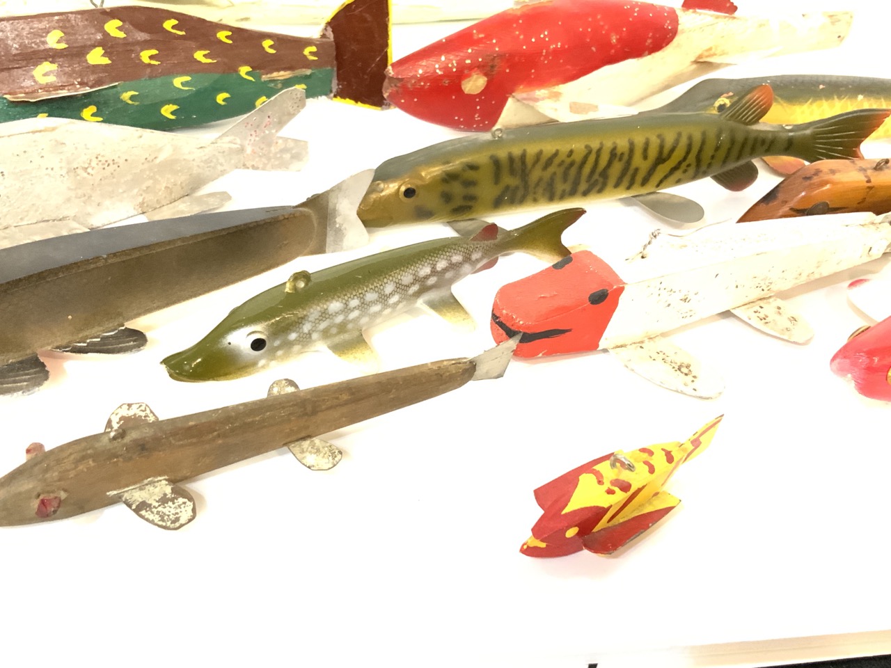 Thirteen (13) assorted wood fish decoys.