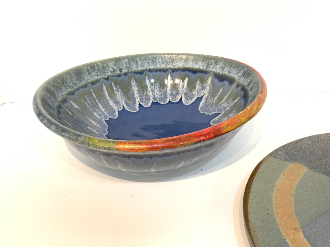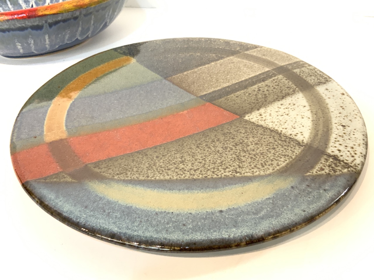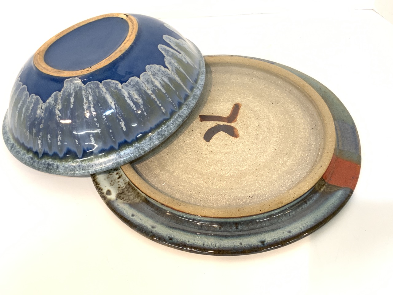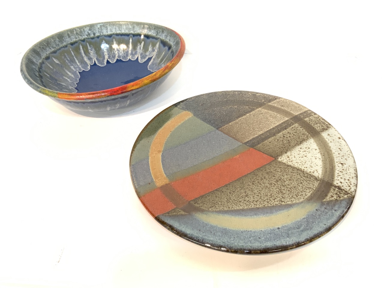 Two (2) Piece 1980's Pottery cake stand and serving bowl.
