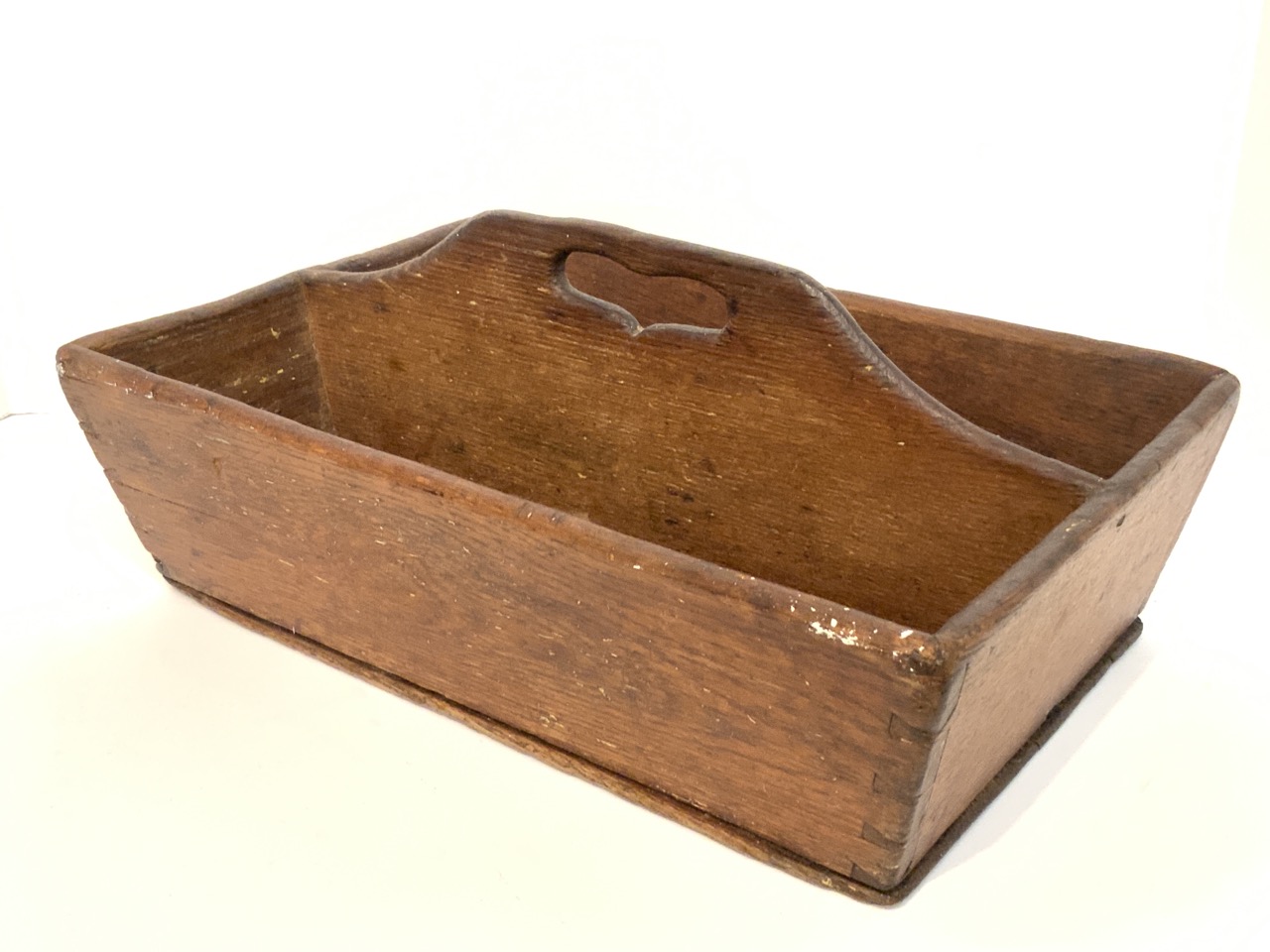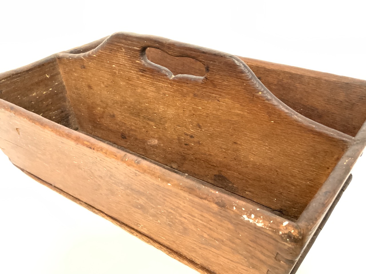 19th century divided cutlery box with heart shape cut out handle.