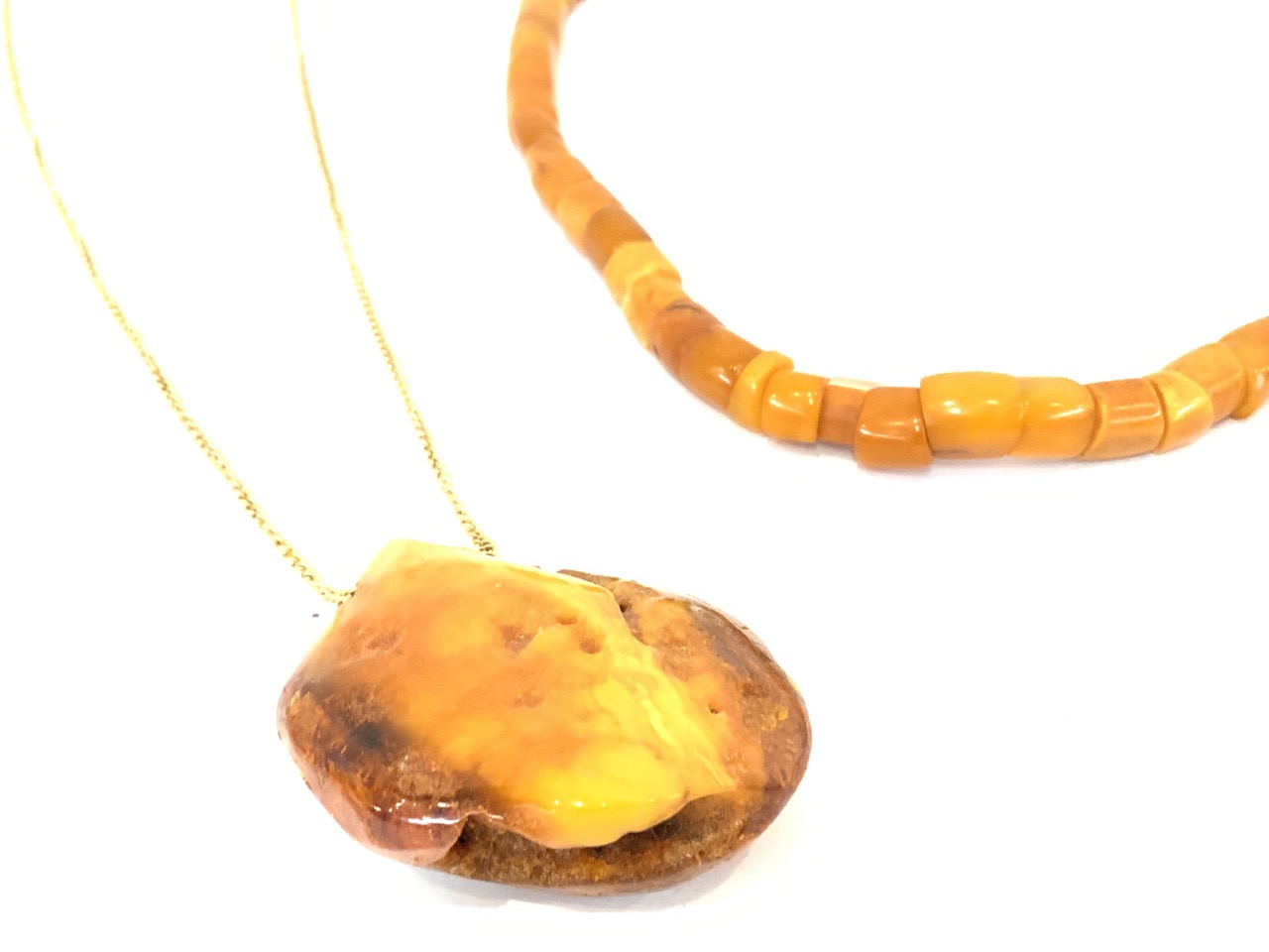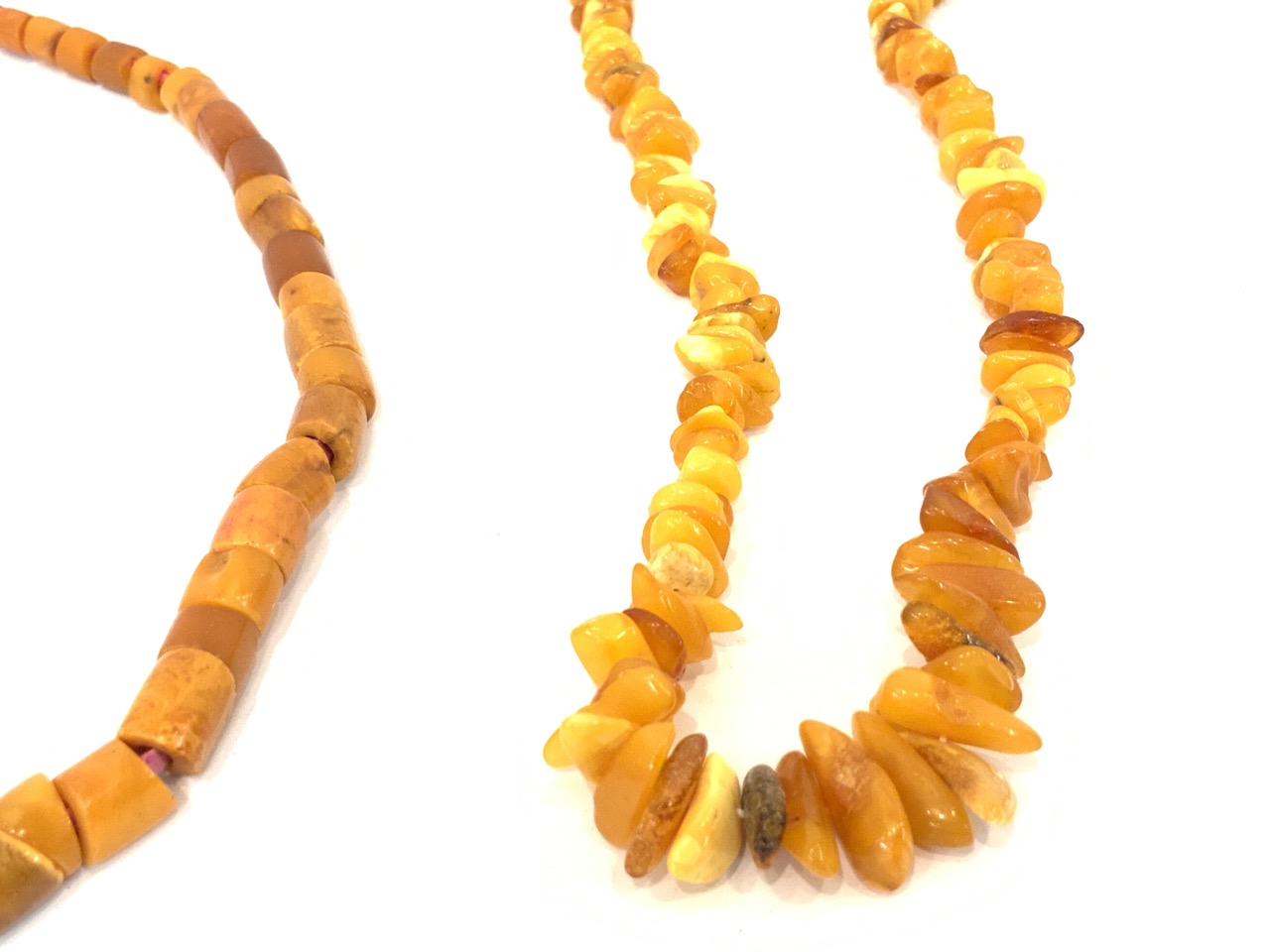 Three Amber Necklaces. One old strand is Indonesian.