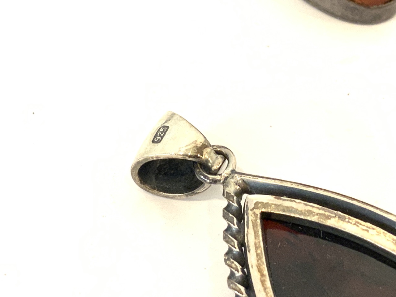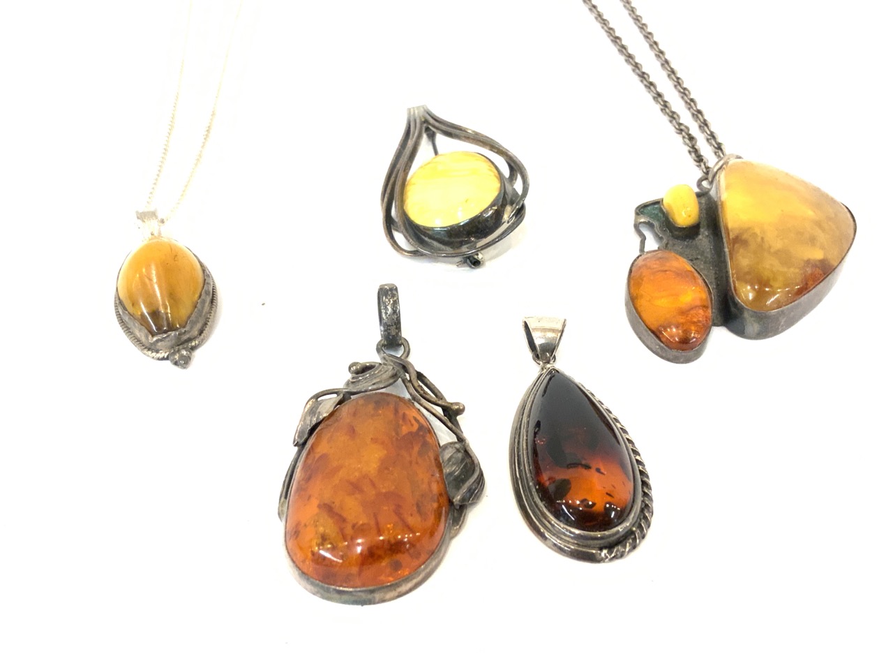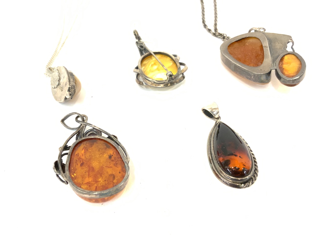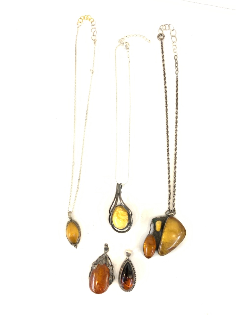Five (5) Sterling Silver Amber Necklace/Pendants