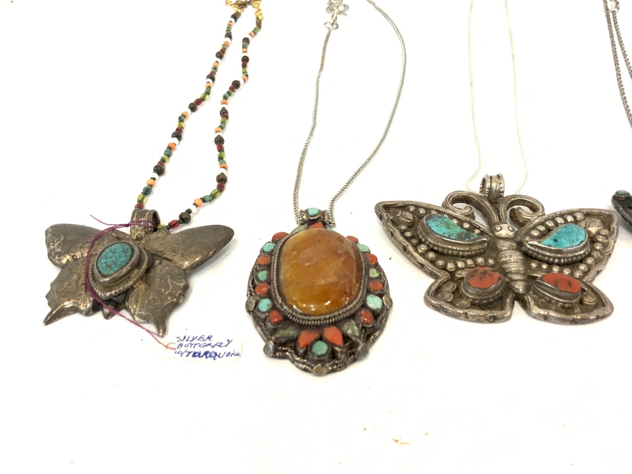 Lot of five Sterling Silver Tibetan Turquoise Necklaces includes…