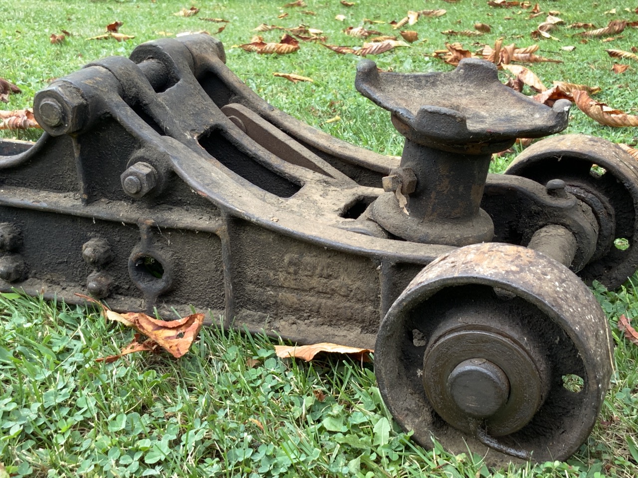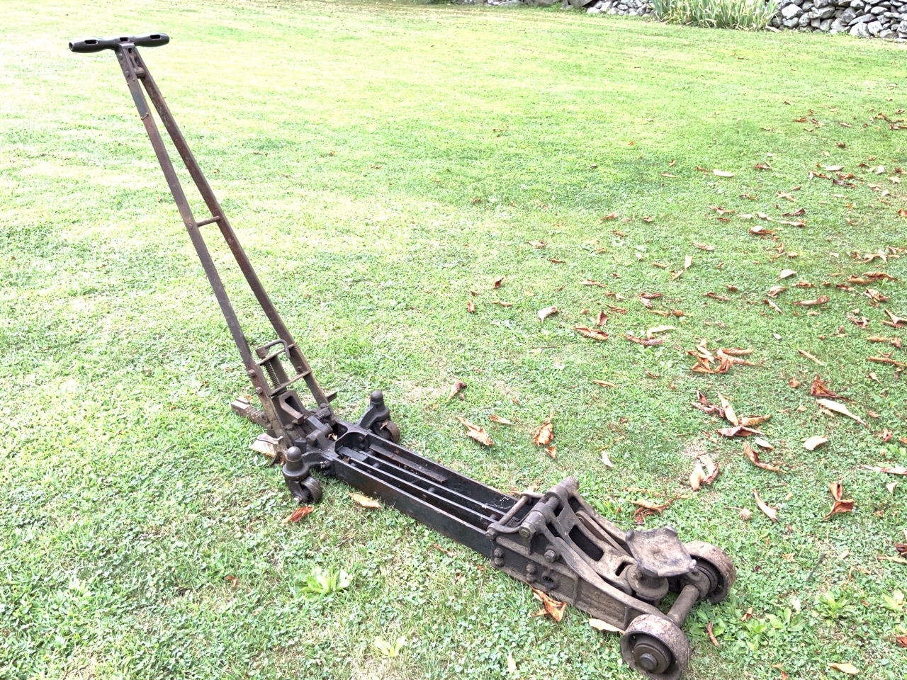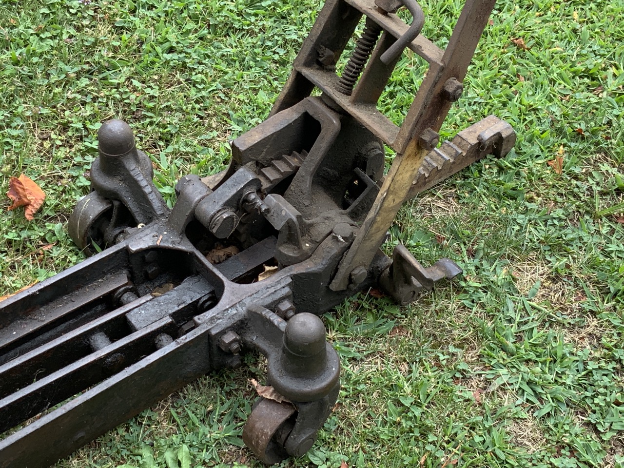Antique adjustable floor jack, Racine Wisconsin.