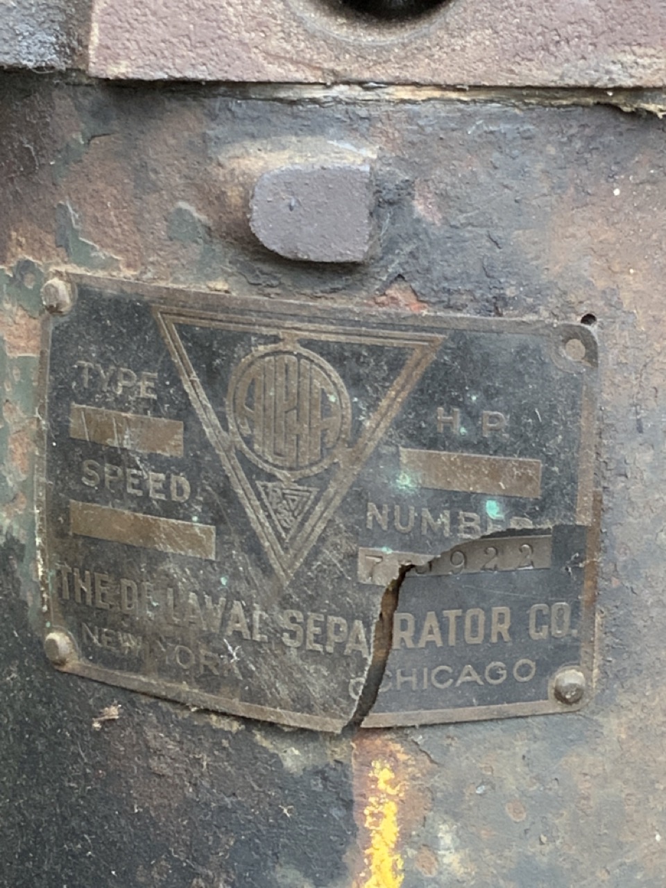 De Laval separator with engine. Label worn. Please see photograph preview or call.