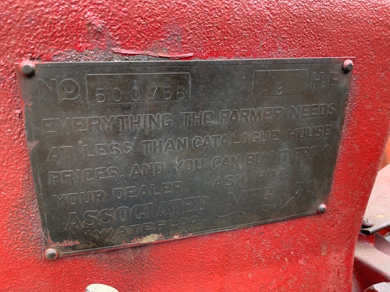 3HP Associated Mfg. Co. Waterloo, Iowa Hit & Miss Engine.