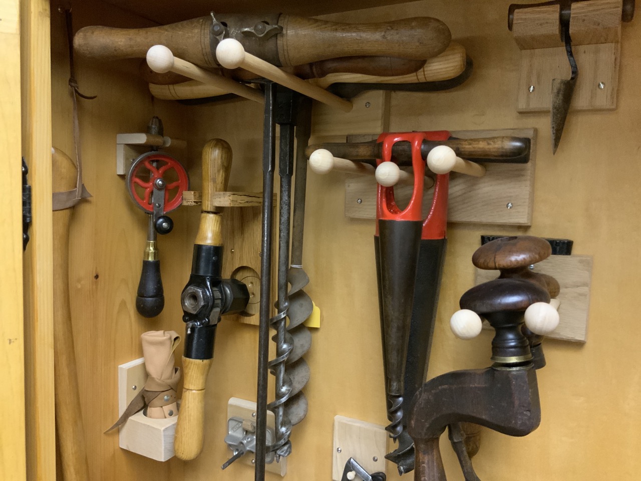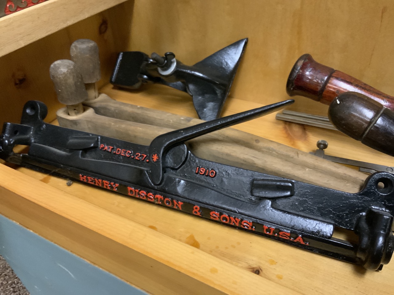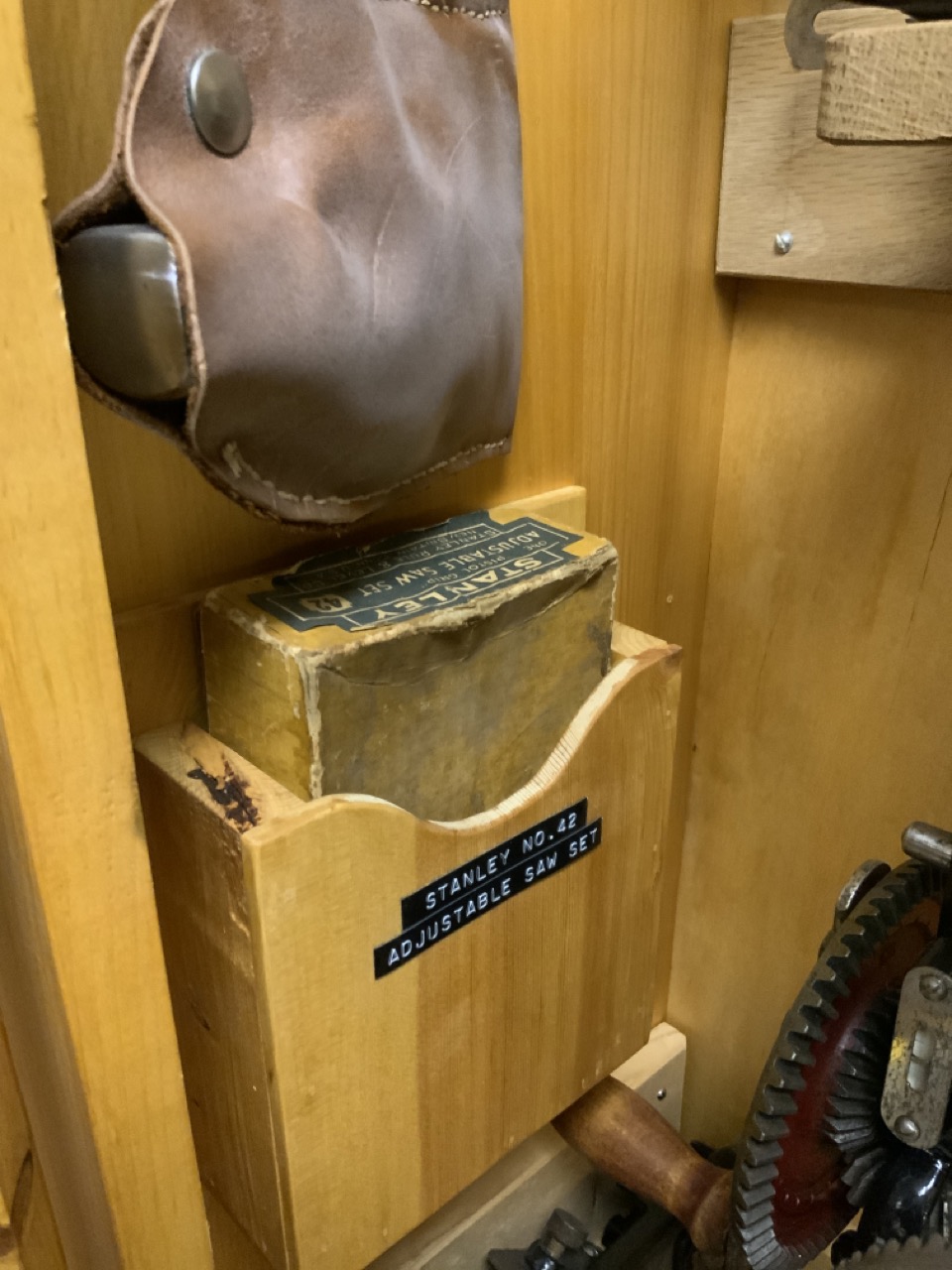 Antique Tools. Cabinet Is Included And Optional. Stanley 78 woodplane, 1910 Disston, Stanley 42 Saw Set, Drills, Saws and all content seen in photograph preview.