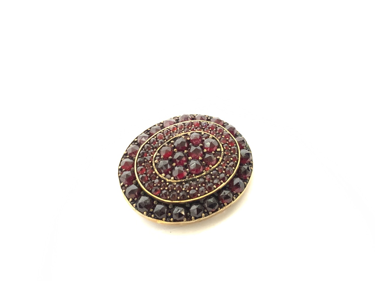 A vintage Bohemian garnet pin. 1 1/2" diameter.