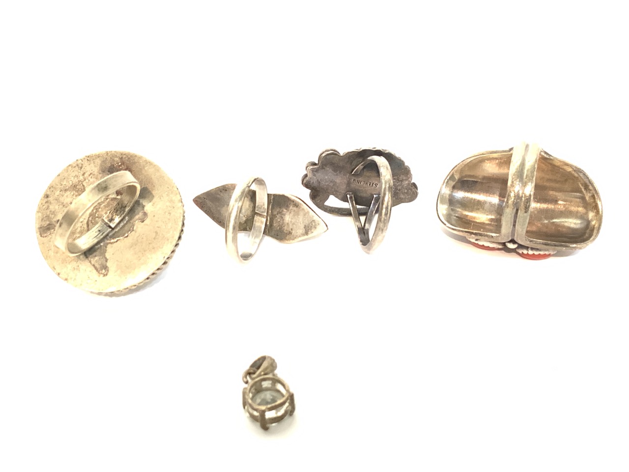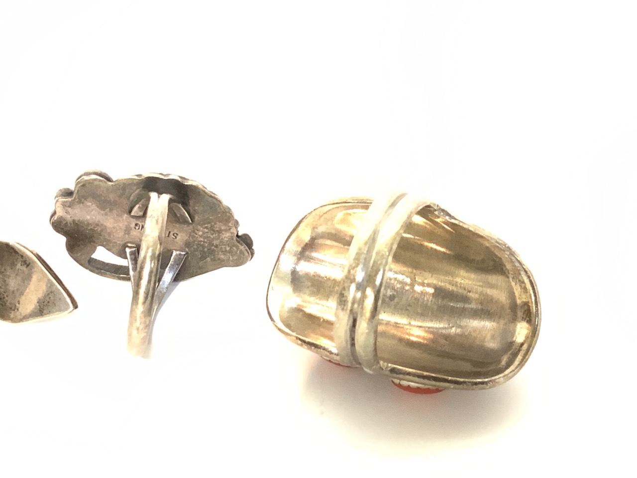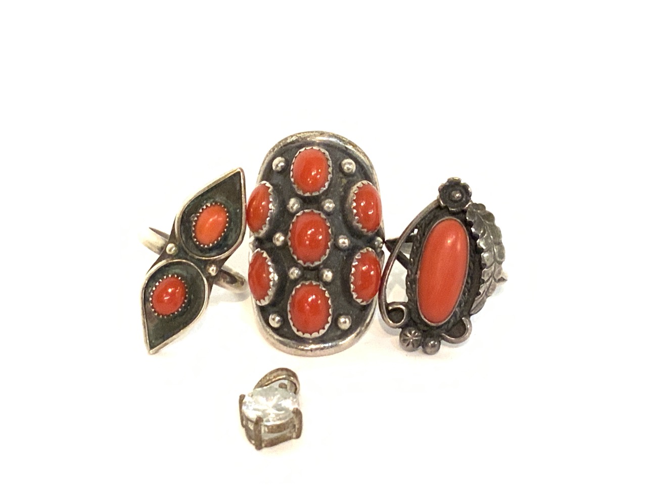 Four (4) Sterling Silver Coral Rings.