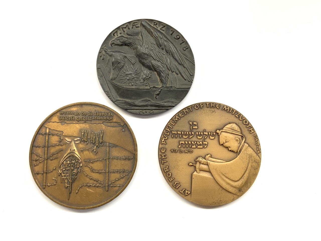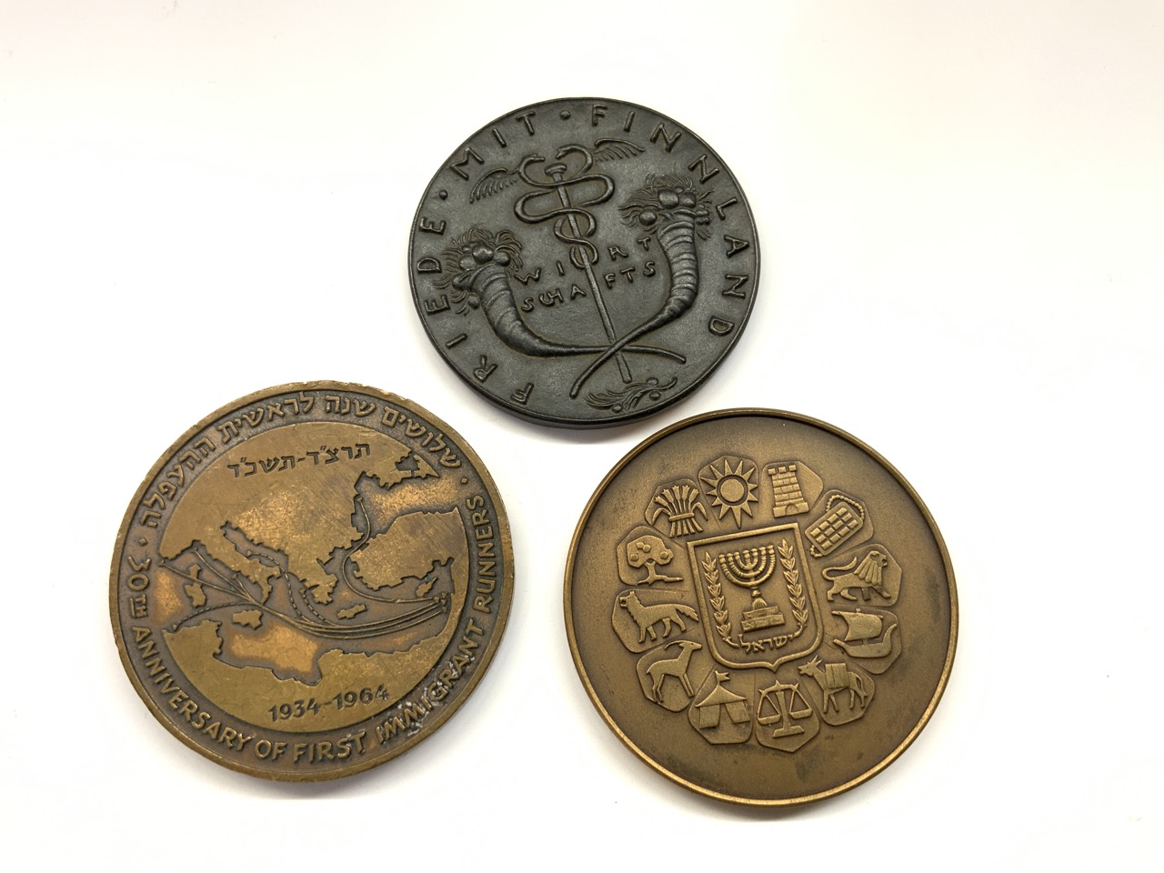 Three (3) Assorted Medals. 1919 Finland Friegewirtschafts, Judaica Etc.