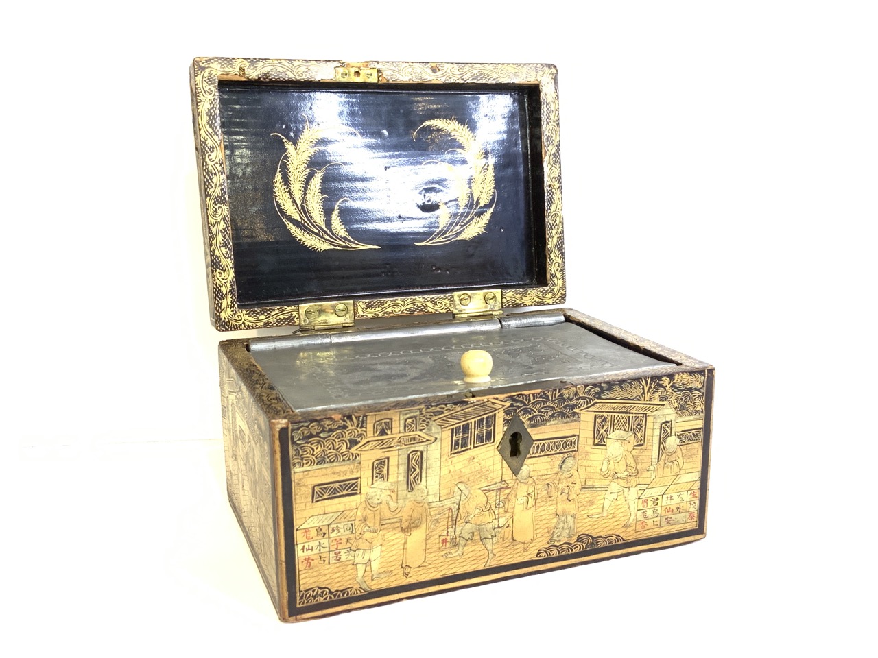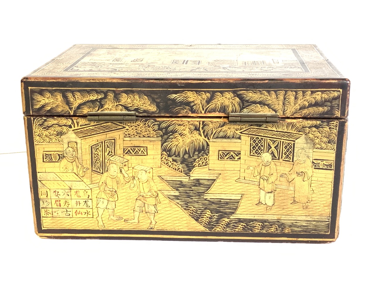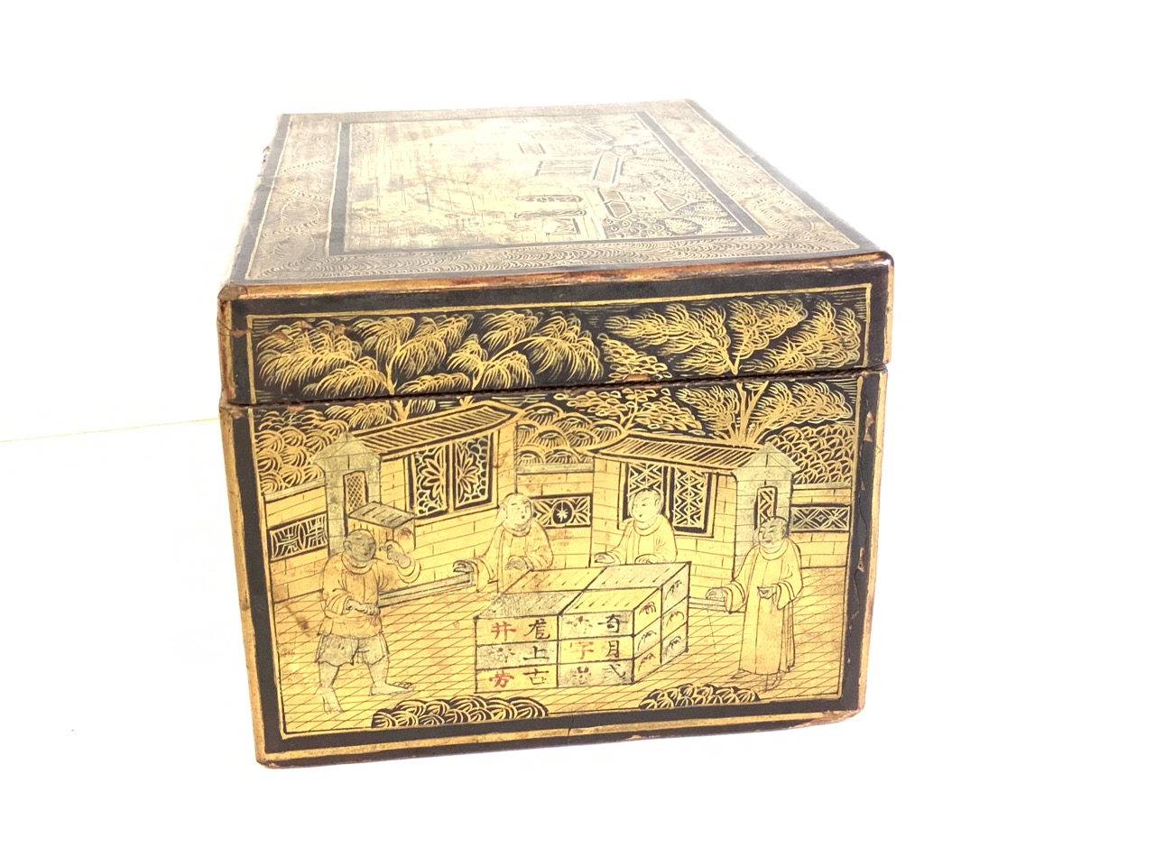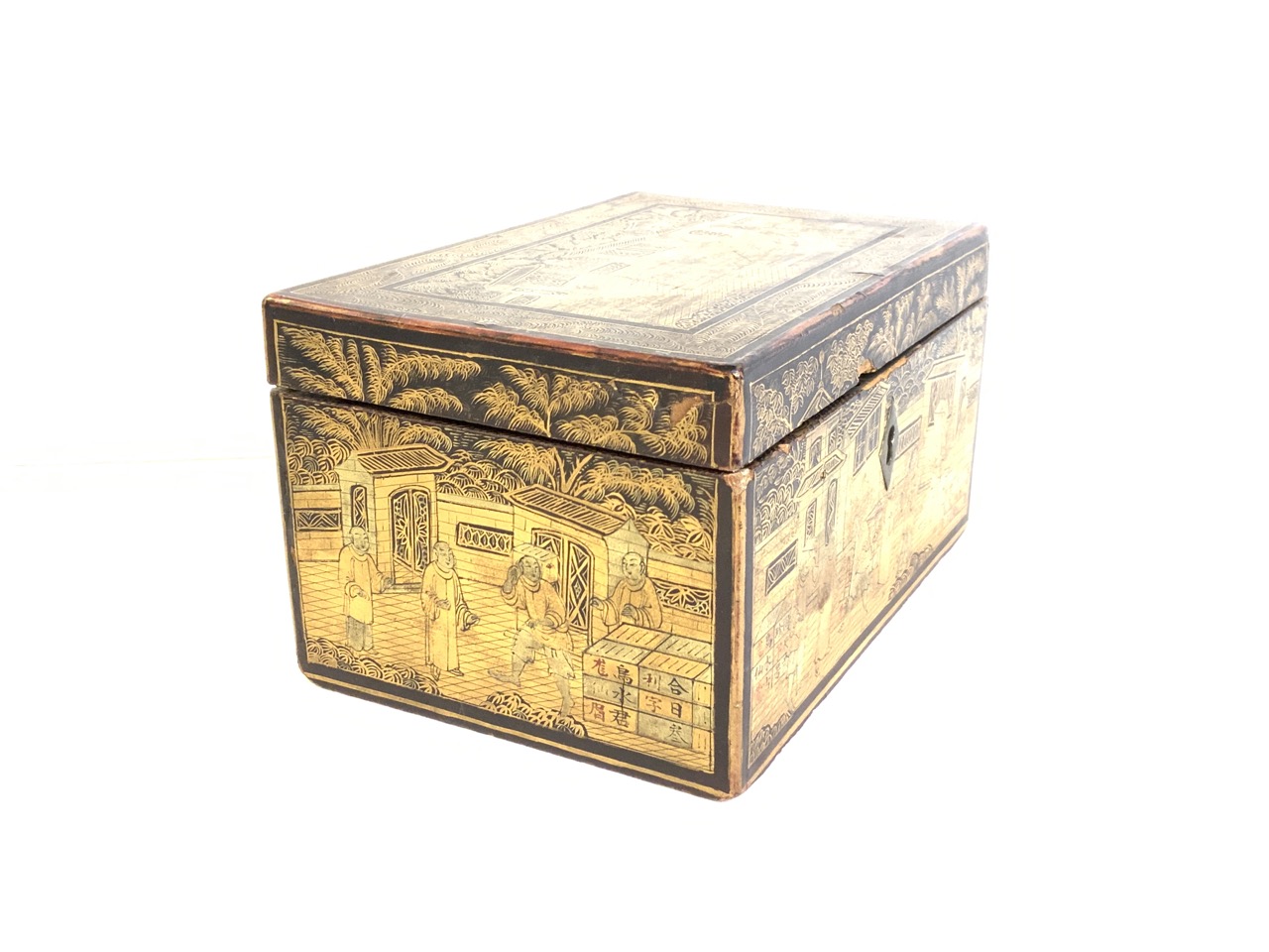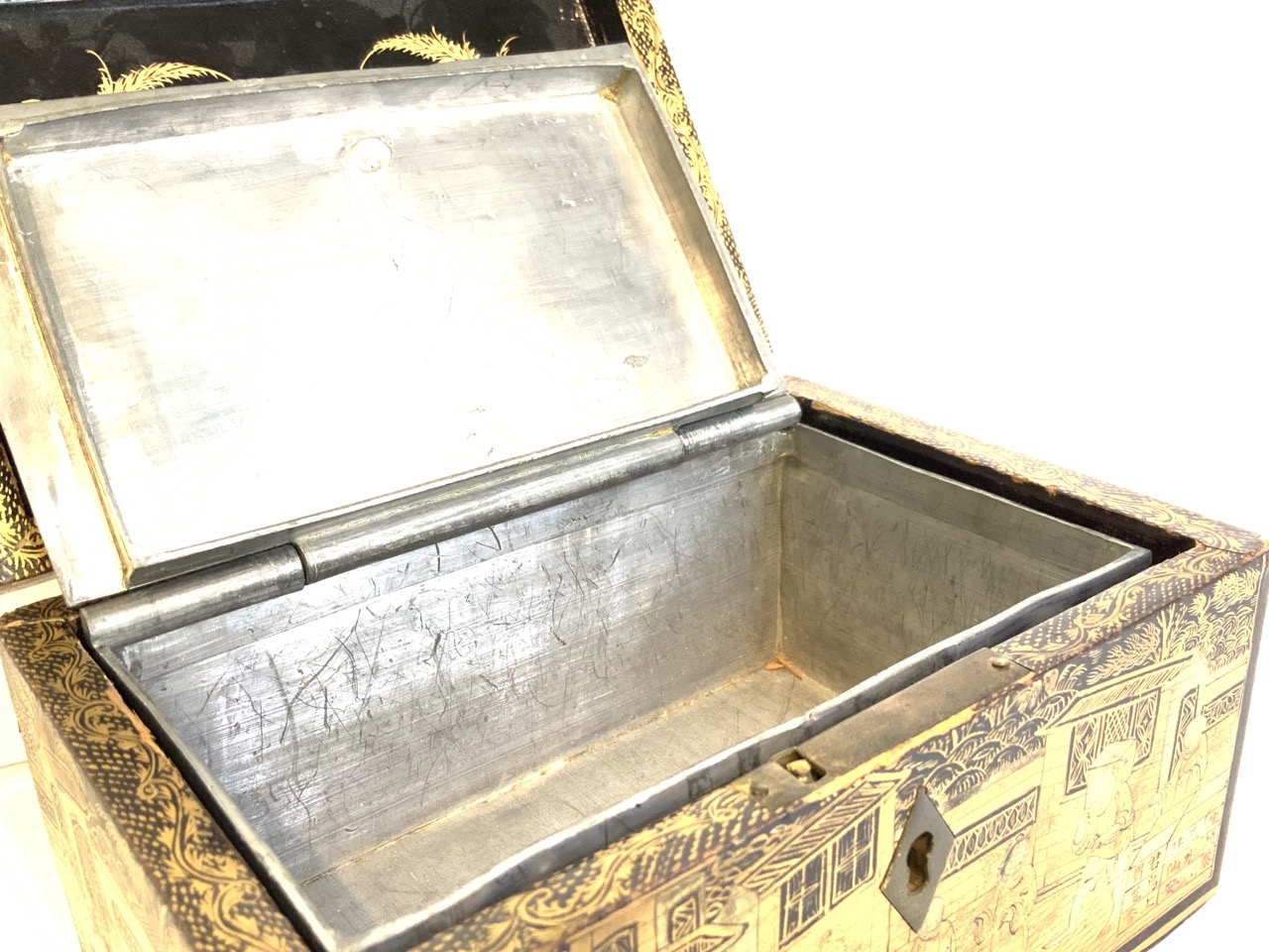 A fine antique Chinese gold gilt lacquered tea box.