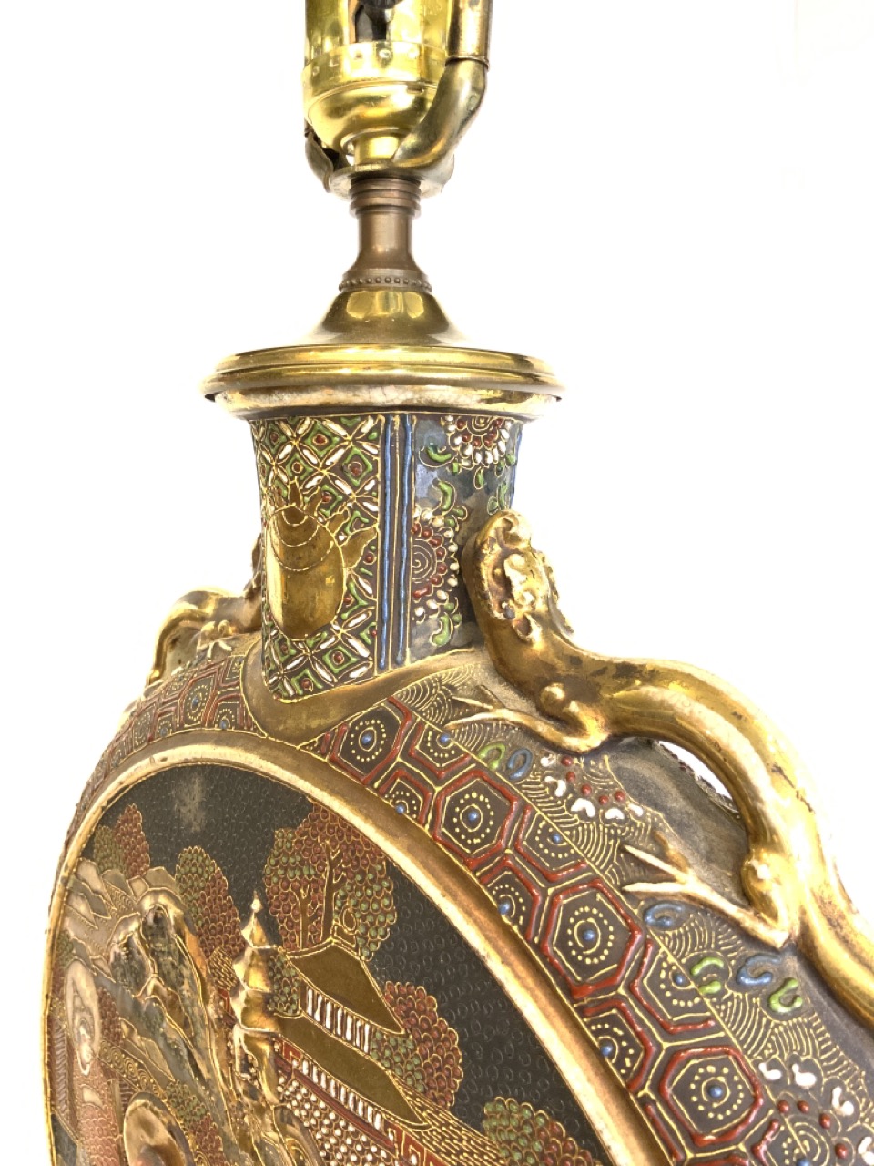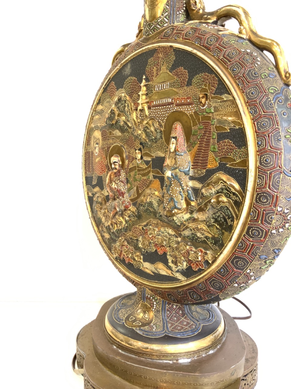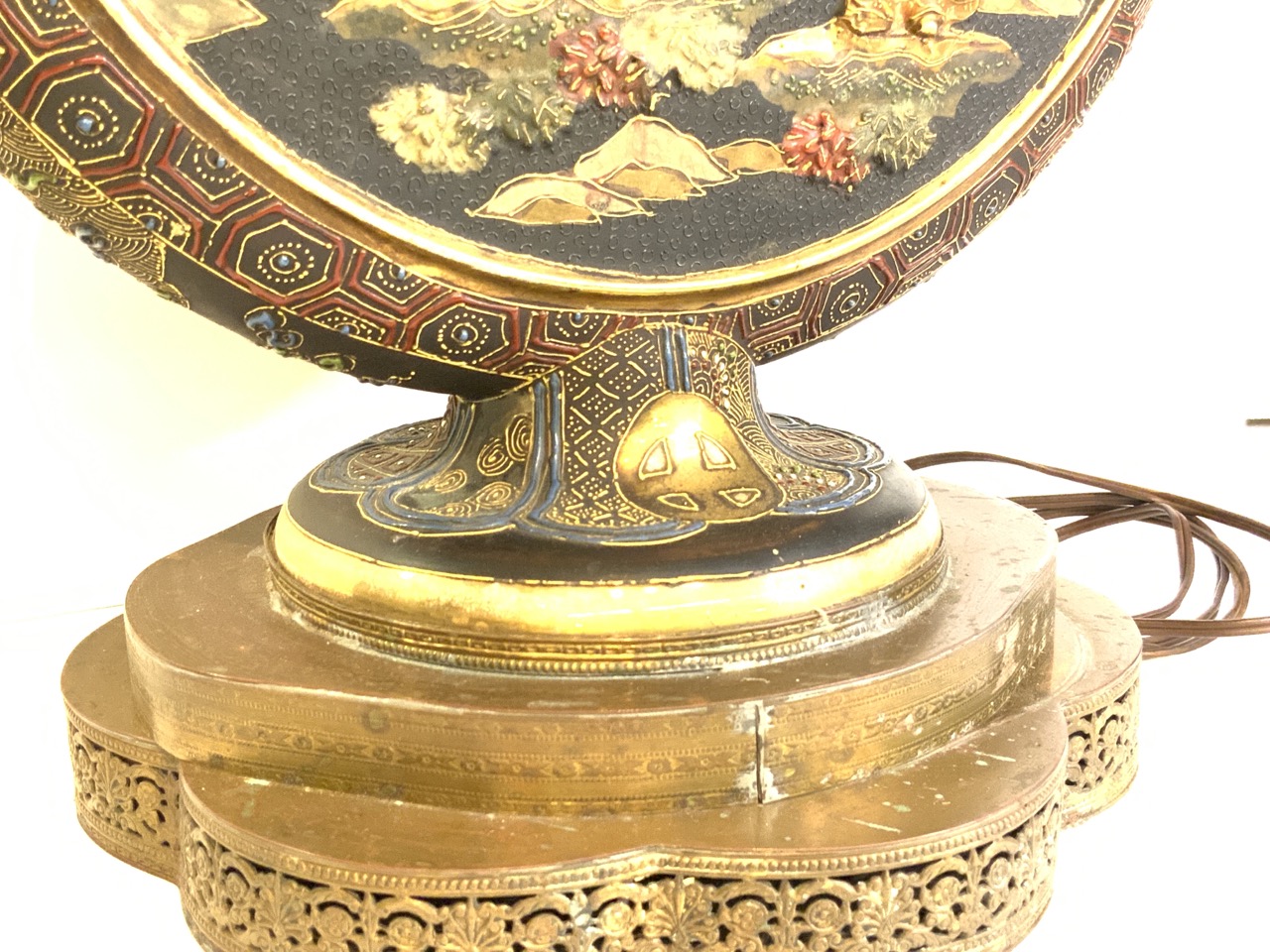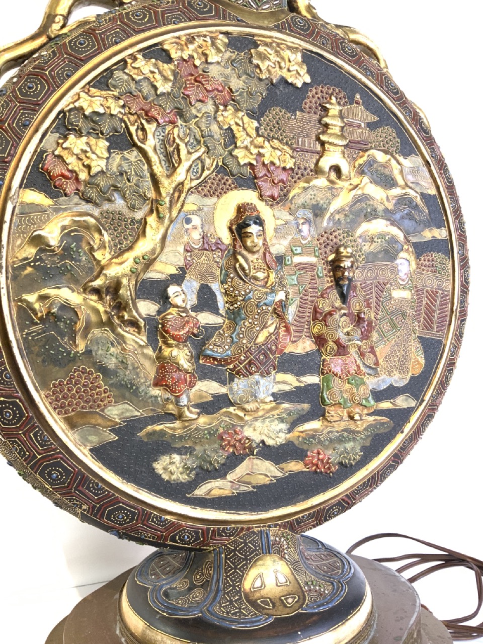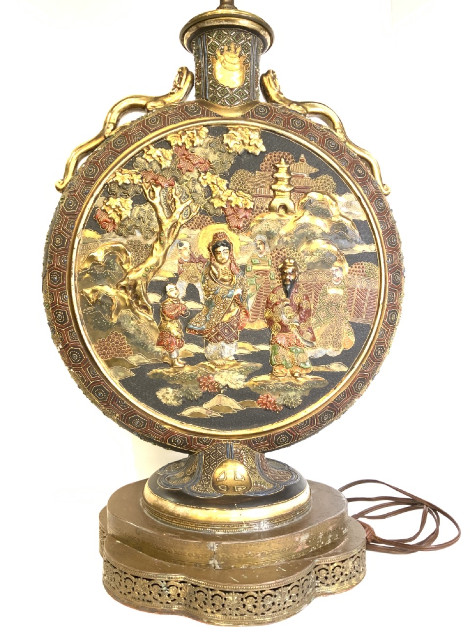 A vintage Chinese porcelain disc form lamp.