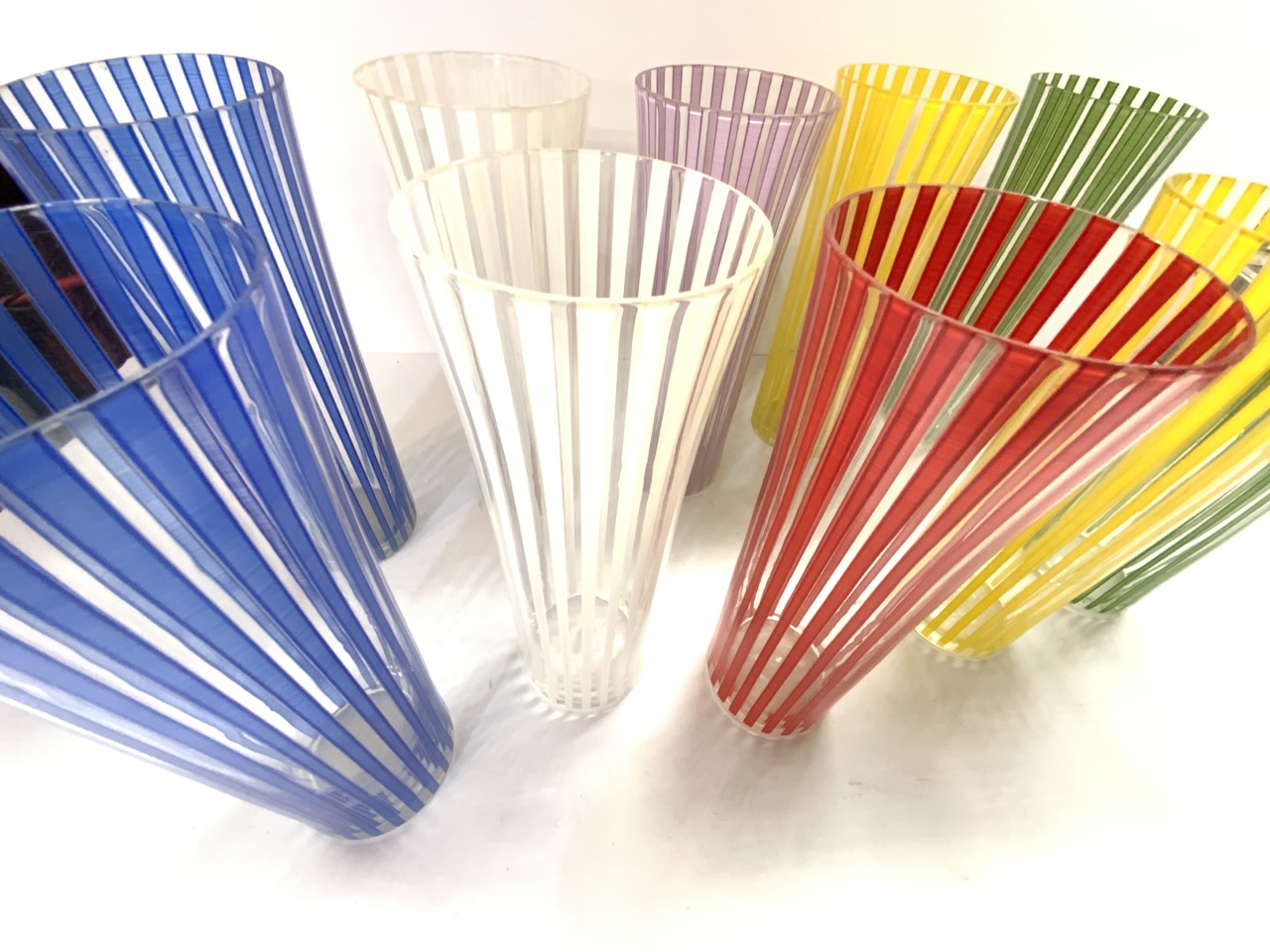 Set of ten (10) Italian art glass tumblers. Top shelf quality. Mid 20th century. Excellent condition.