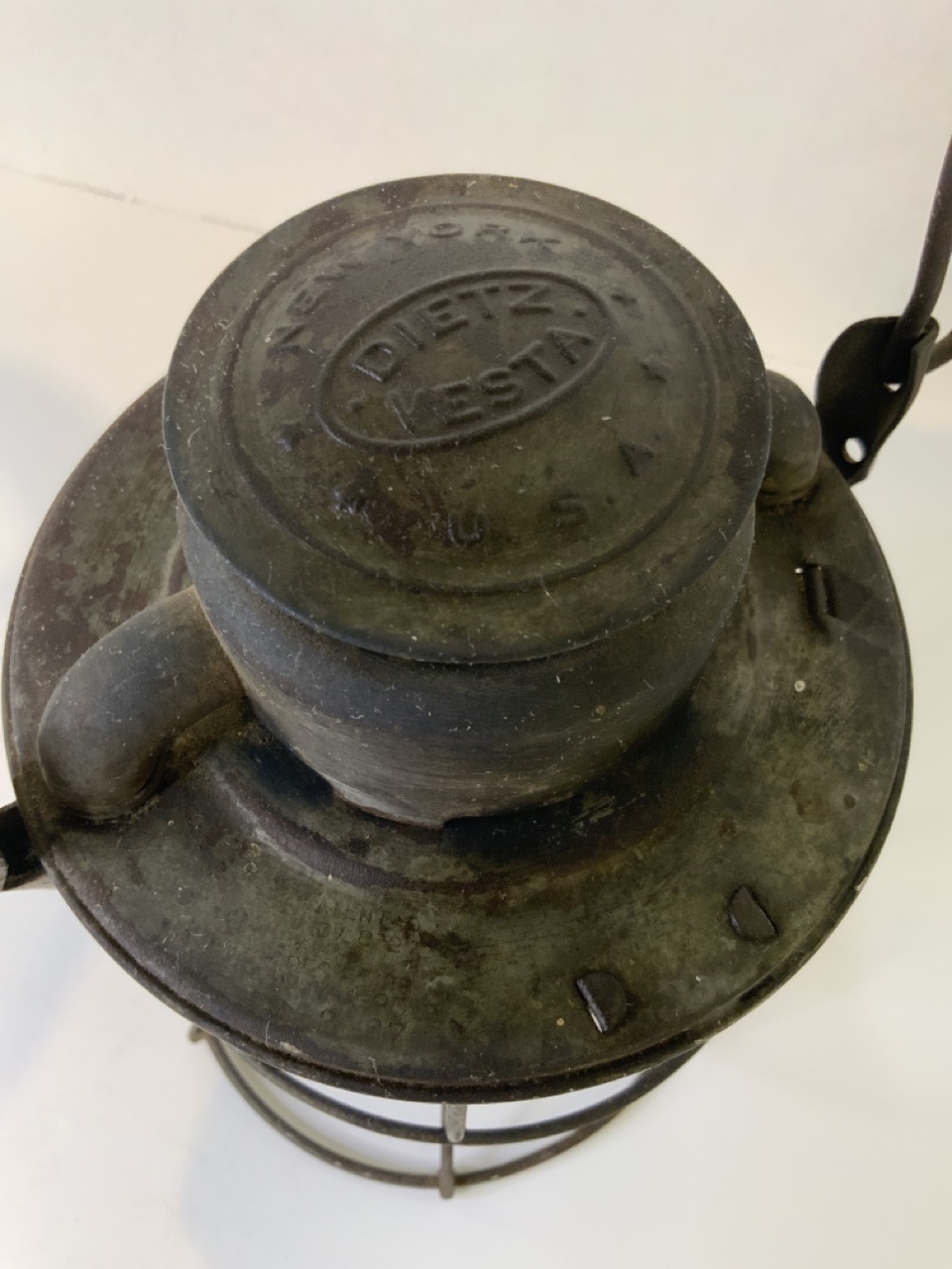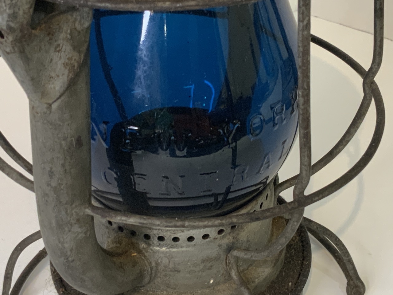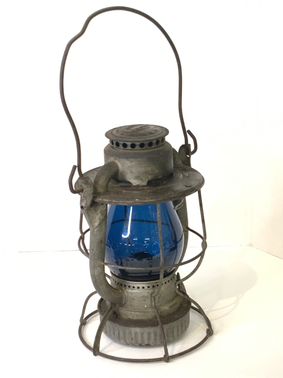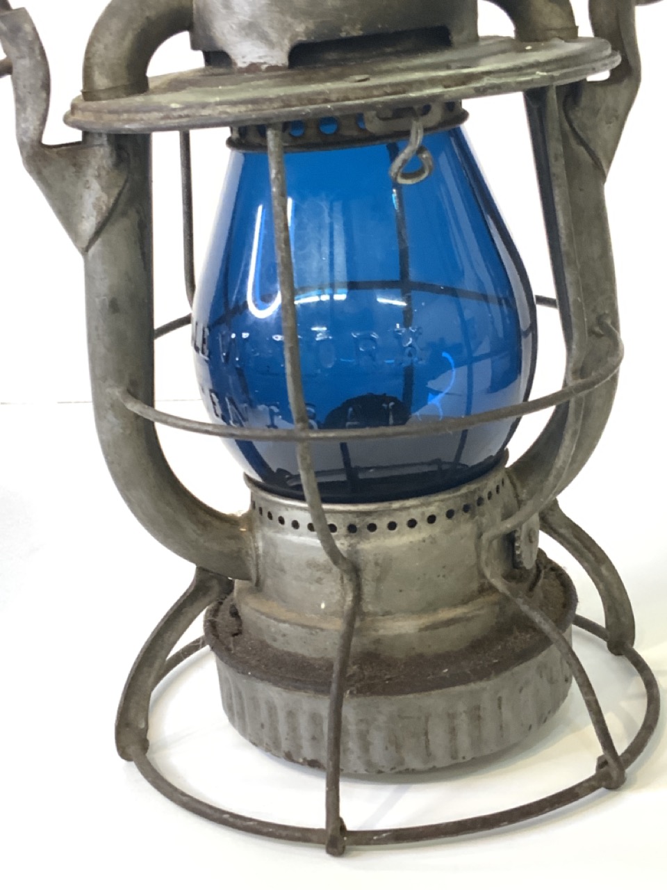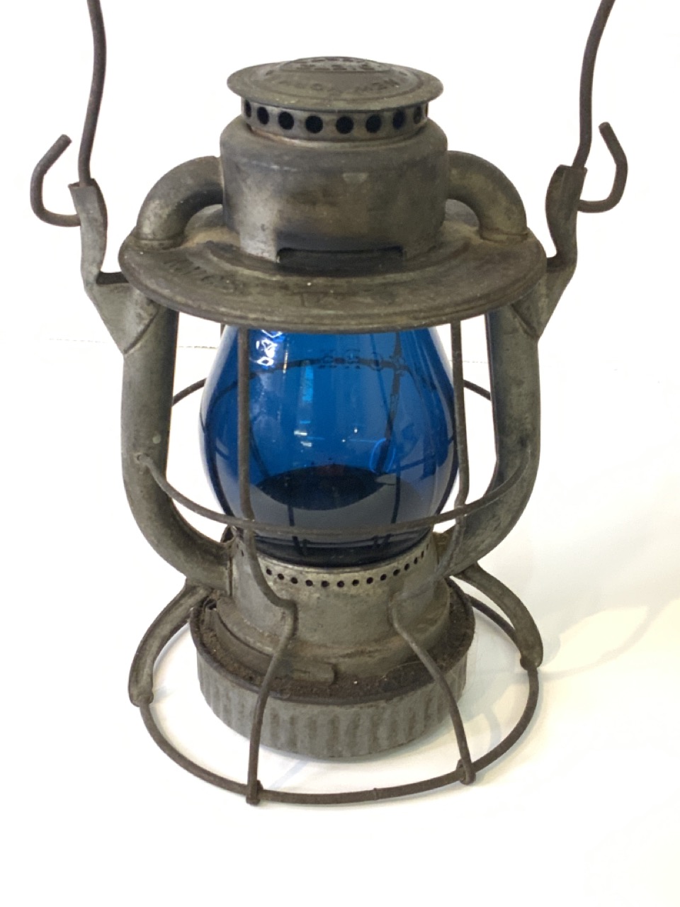Deitz Vesta New York Central System Railroad Lantern. Blue emboseed globe spelling out New York Central.
