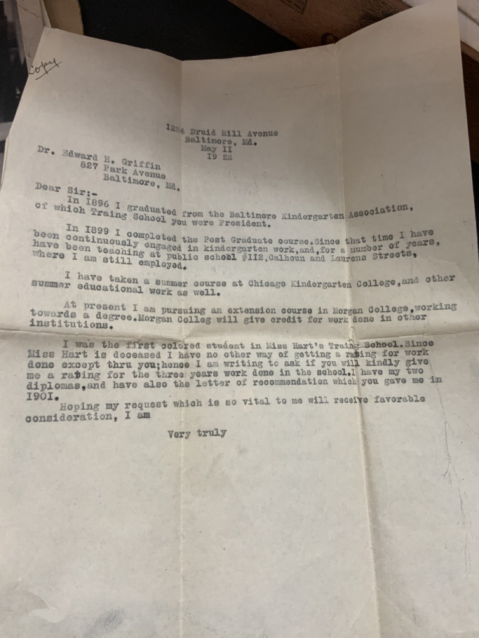 Ida Rebecca Cummings class of 1922 Morgan College Graduationg Program and photographs, letter and ephemera. Ida R. Cummings personally owned images and letters. Ida R. Cummings ( 1867-1958) 1st Black segregated Kindergarden school teacher in Baltimore and past officer of the National Association of Colored Women's Clubs In The 1910's.