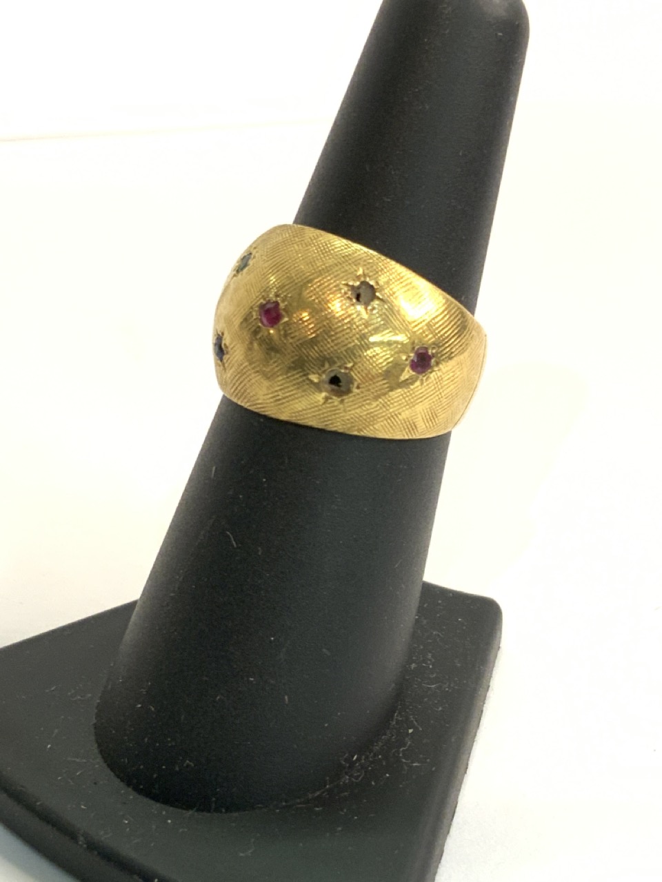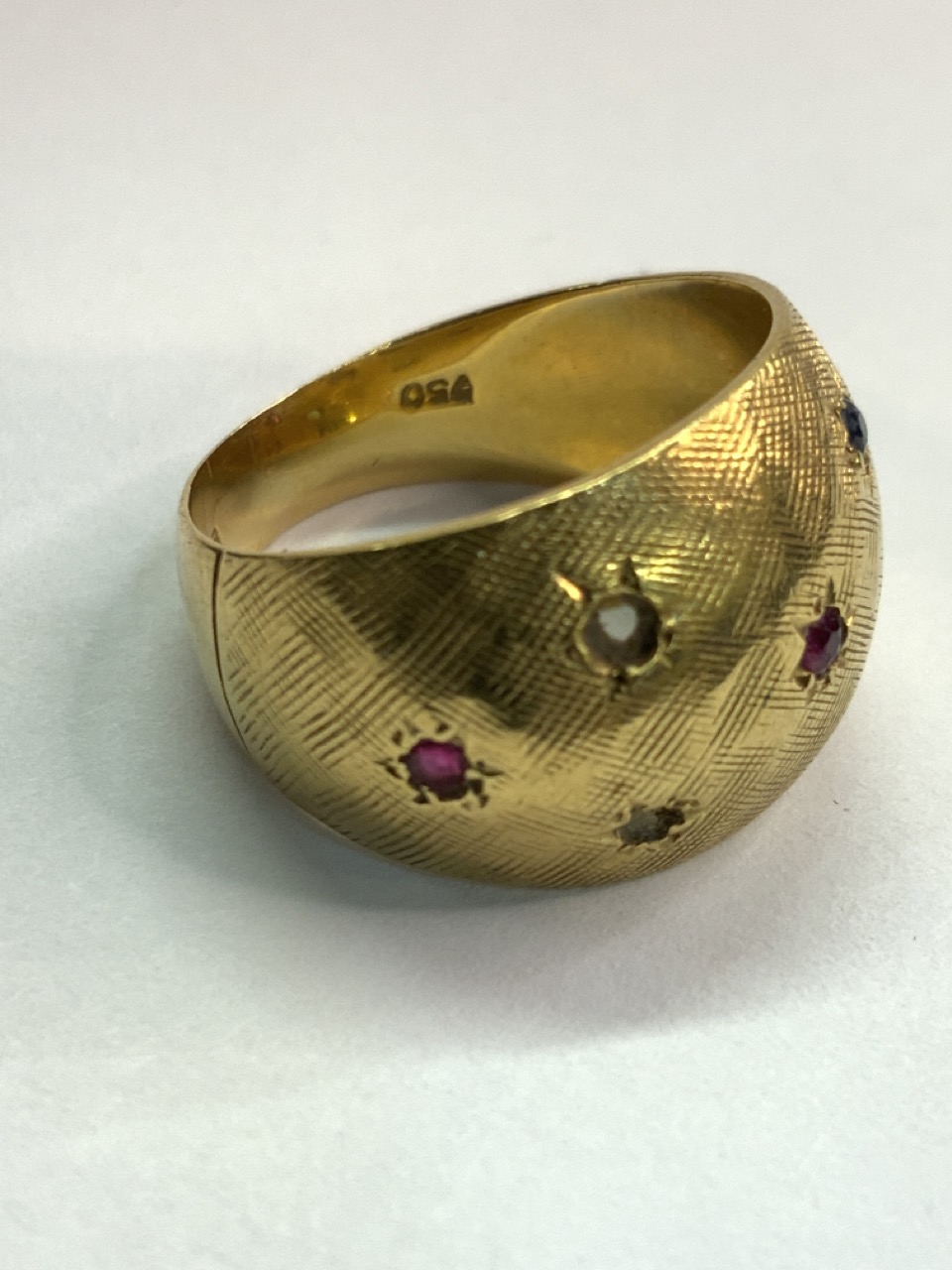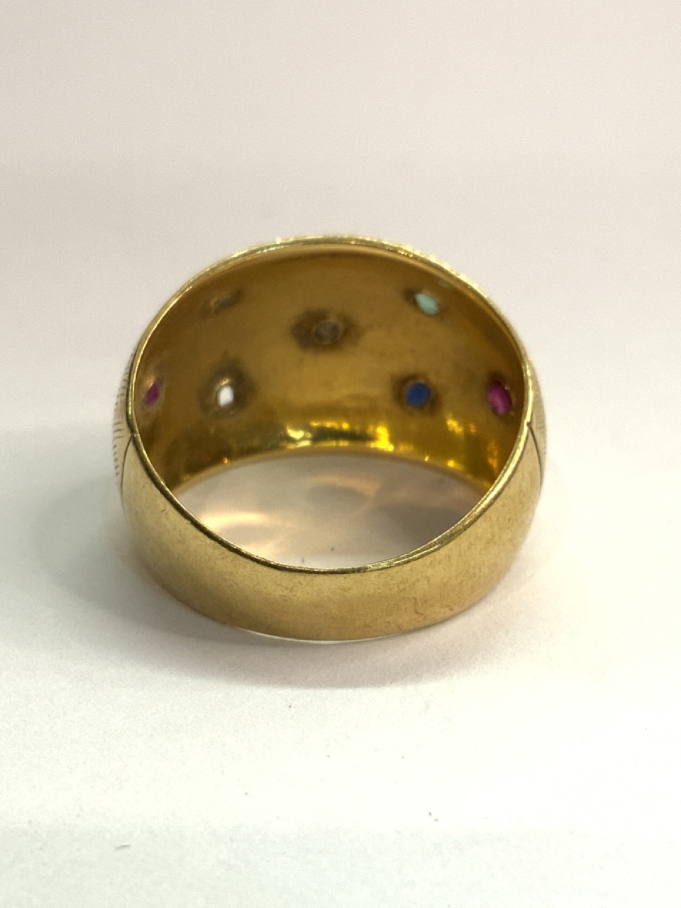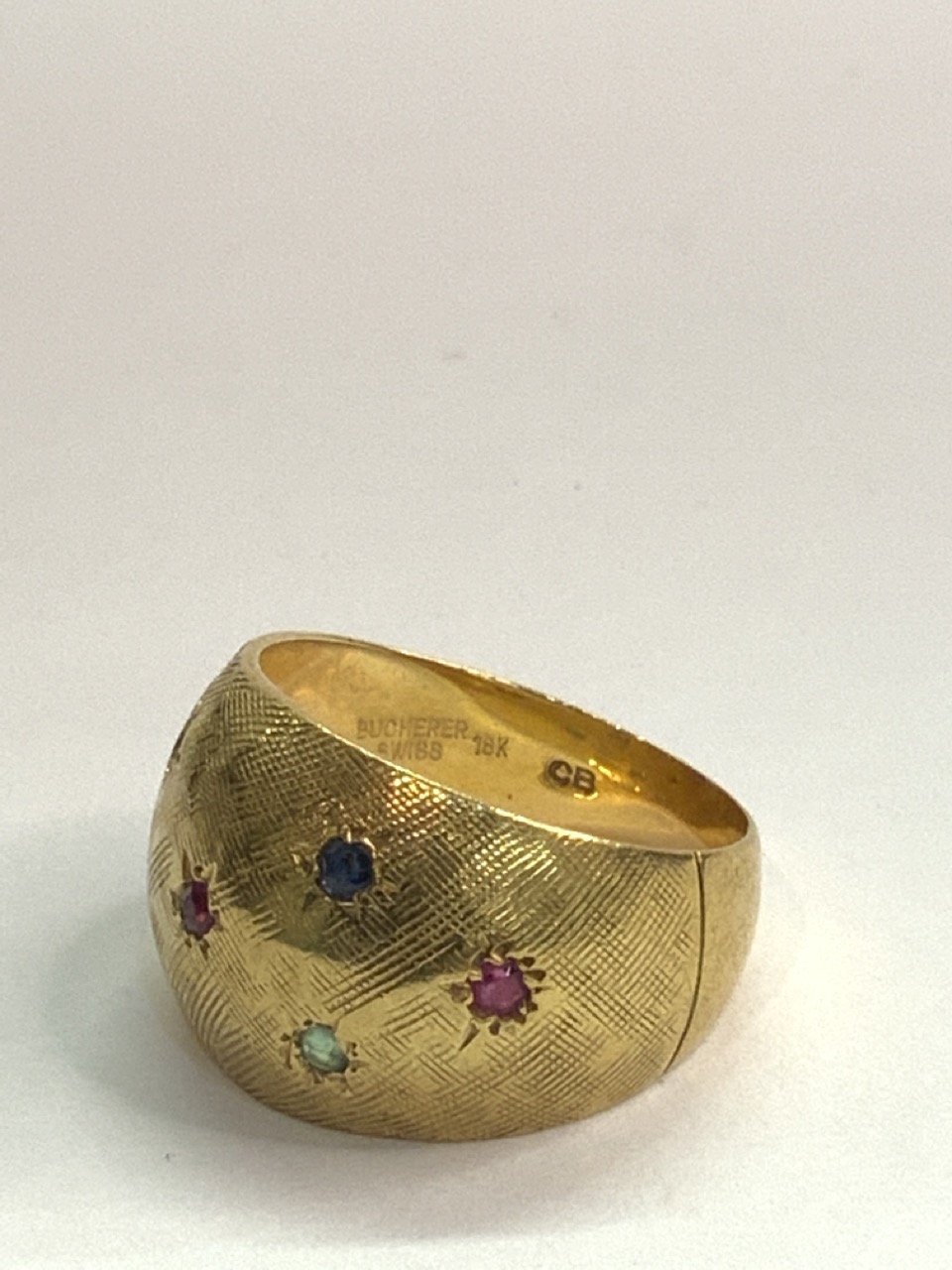 A Bucherer Swiss gemstone ring. 18k (750) yellow gold. Missing stone.