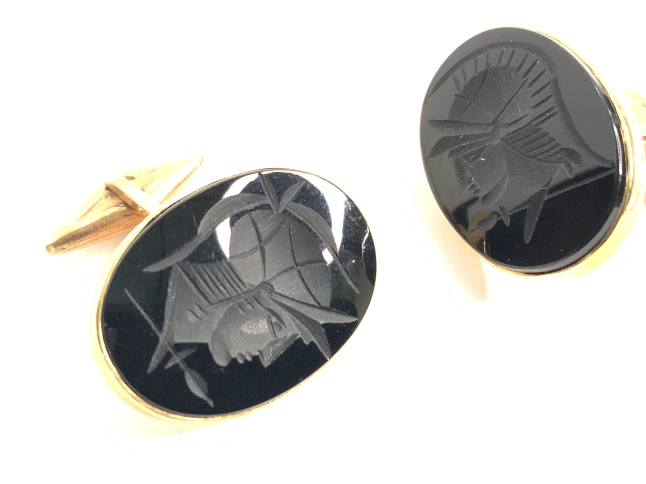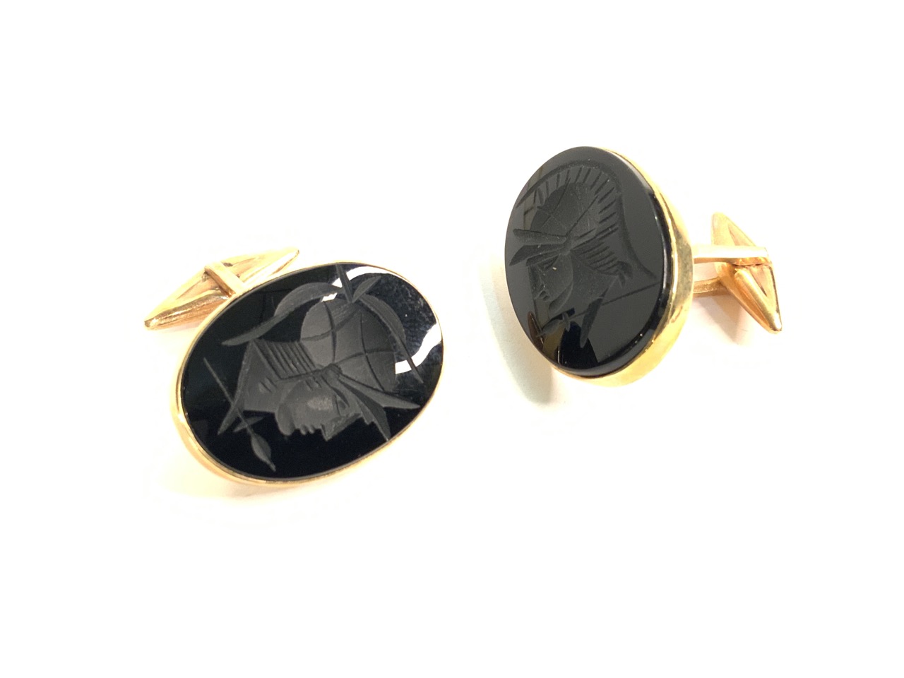 14k y.g. Black Onyx Carved Cufflinks