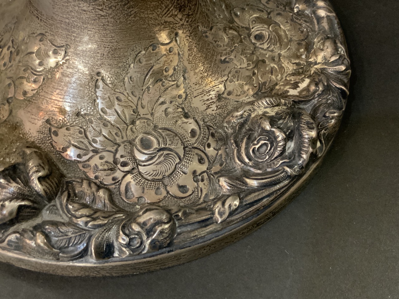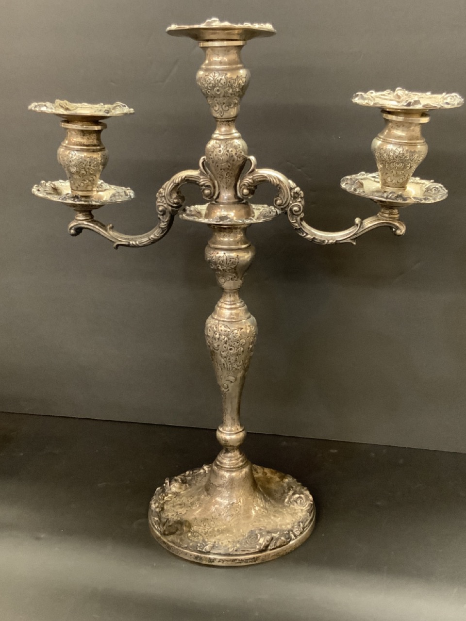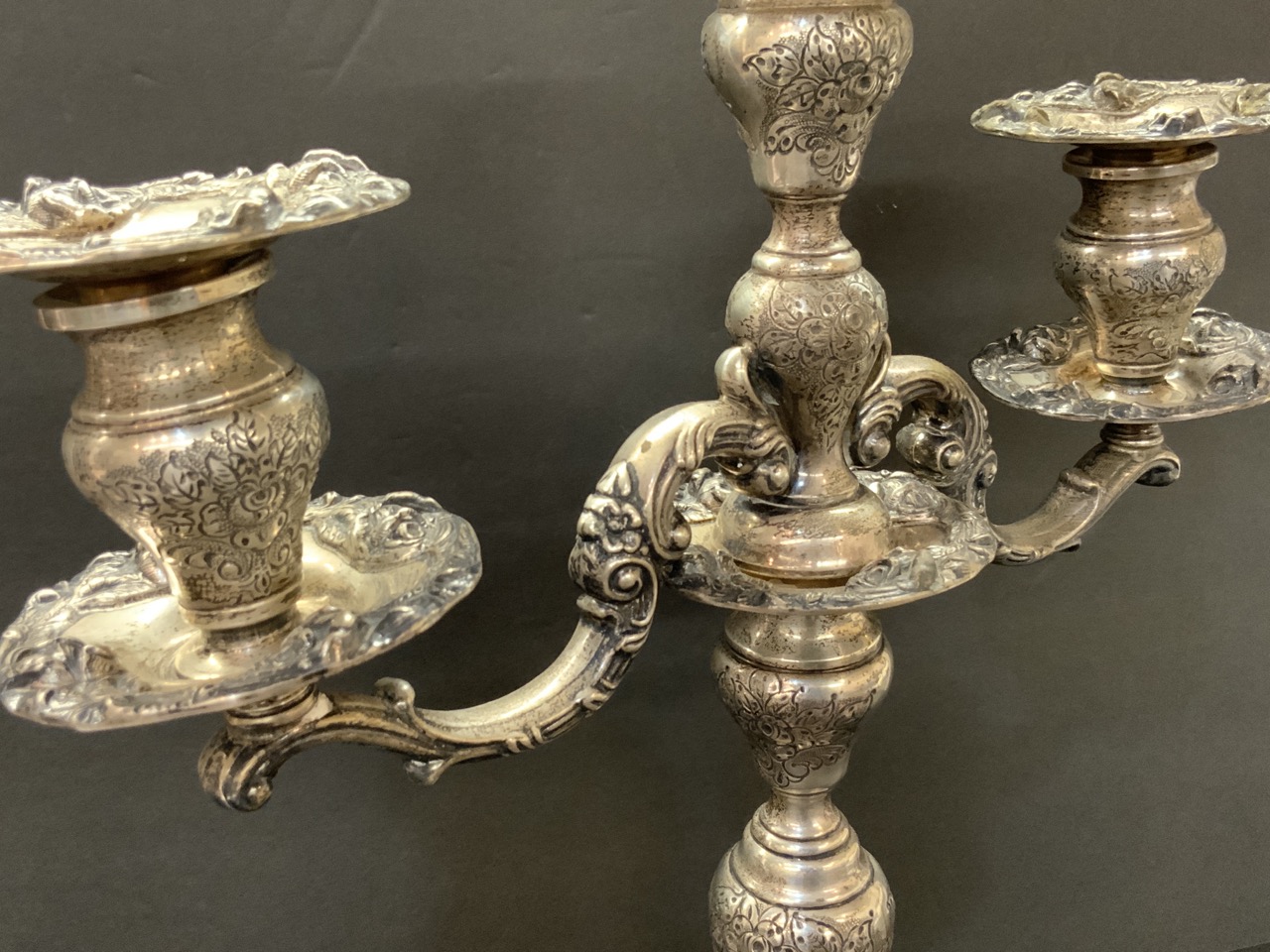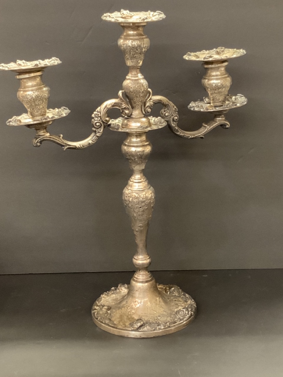 Frank Whiting "Talisman Rose" 6701 hand chased/reinforced sterling silver candelabra.