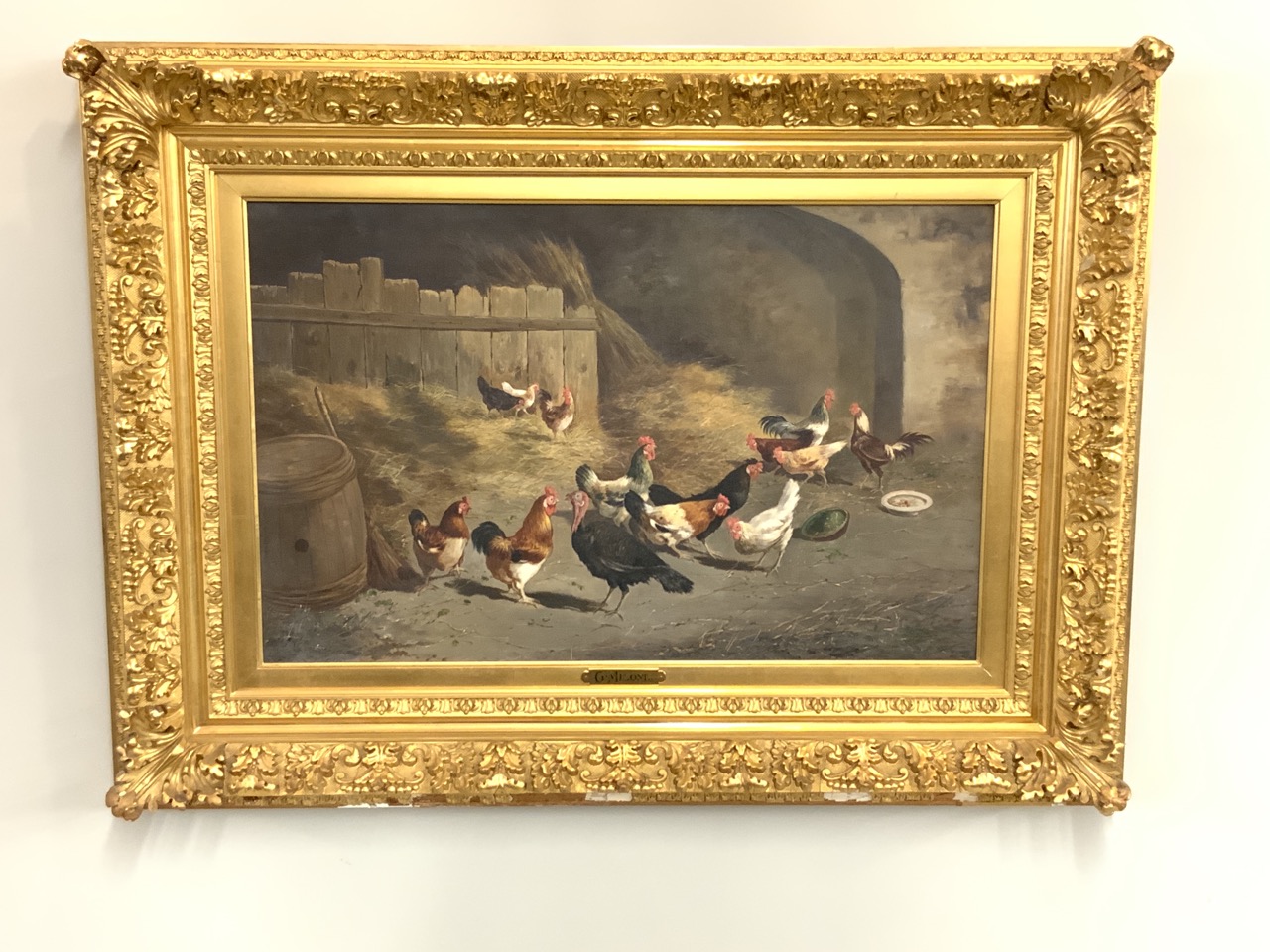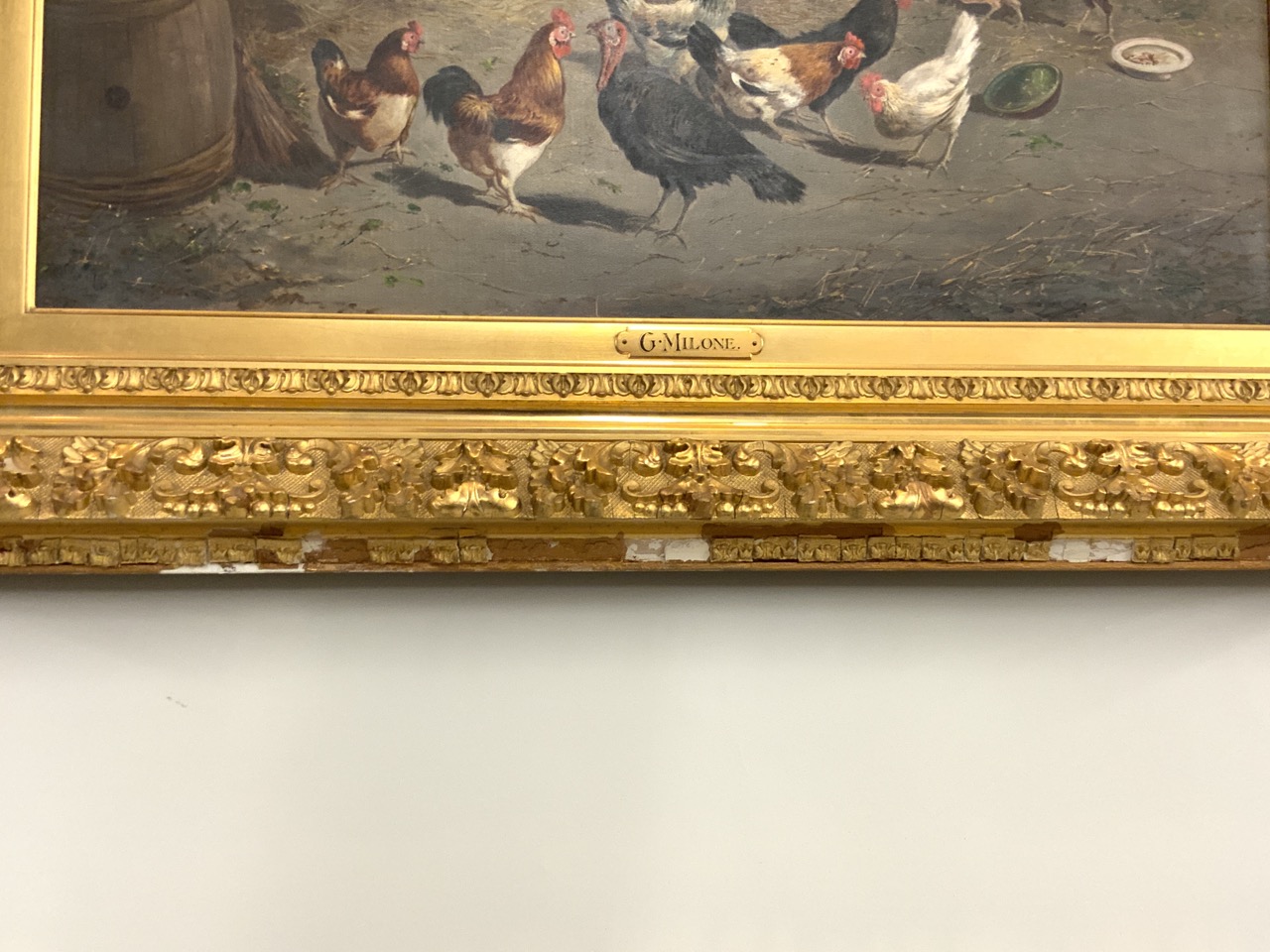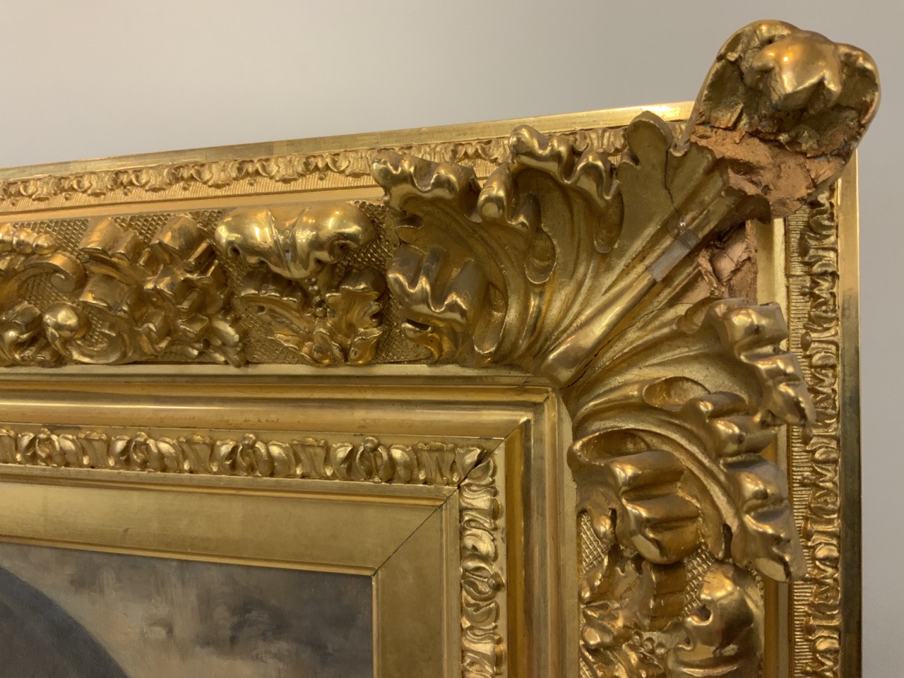Housed in a carved gold gilt frame. Frame has some loss noted. Please see photograph preview or call.