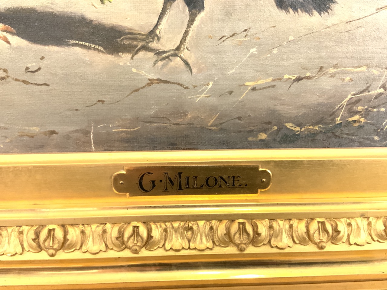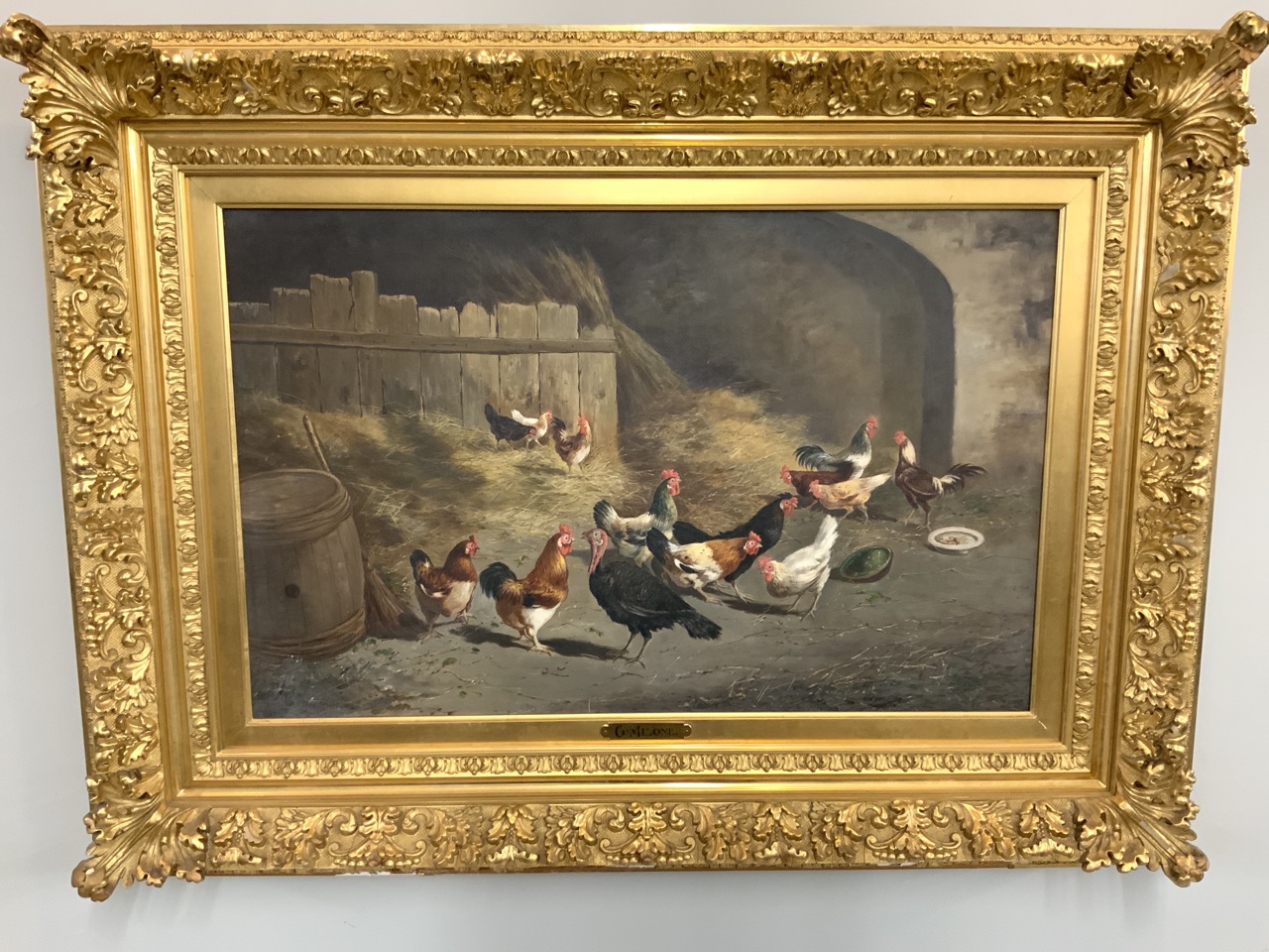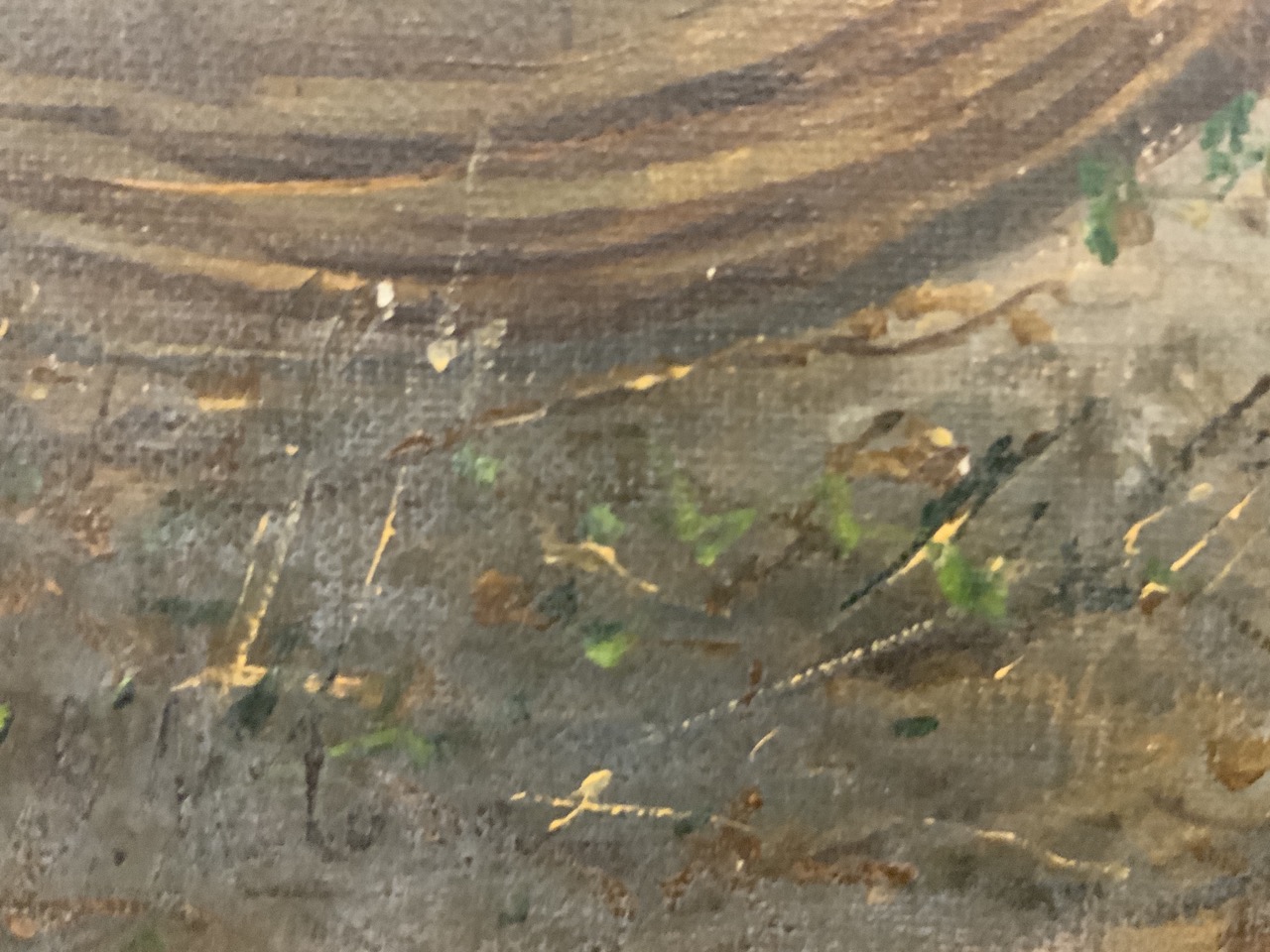 Housed in a carved gold gilt frame. Frame has some loss noted. Please see photograph preview or call.