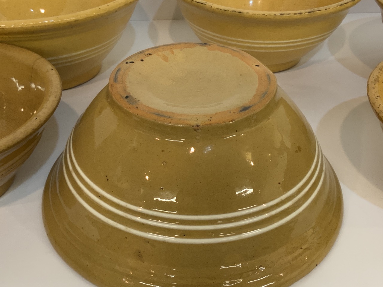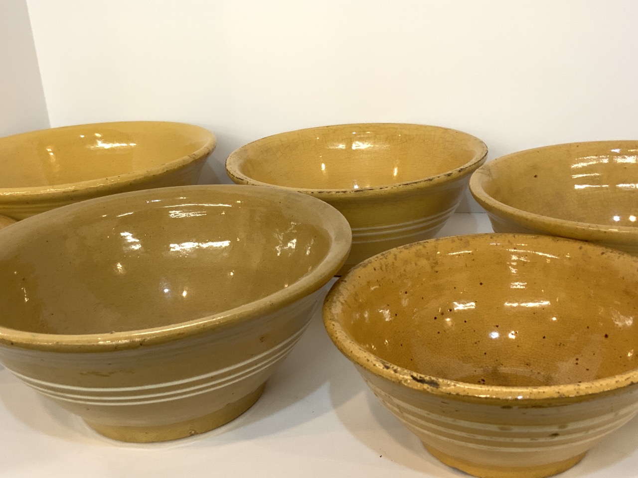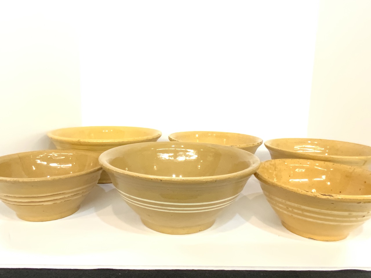 Six (6) assorted antique Yellowware bowls.