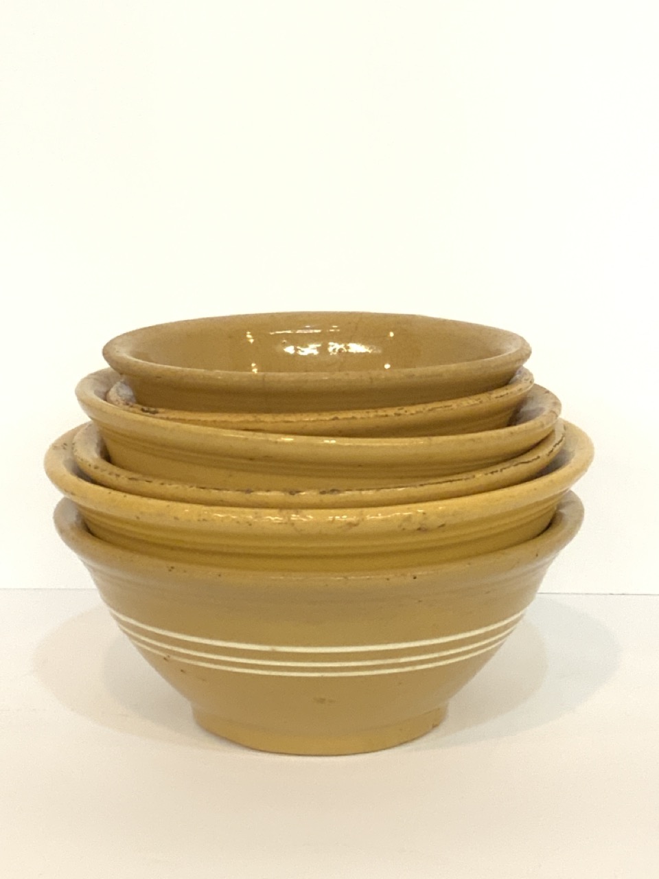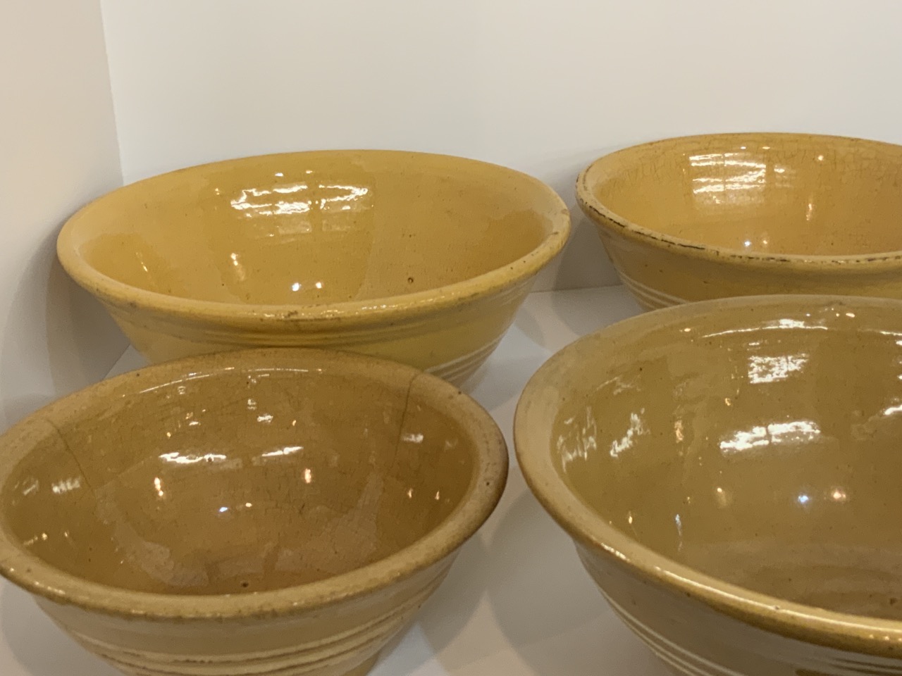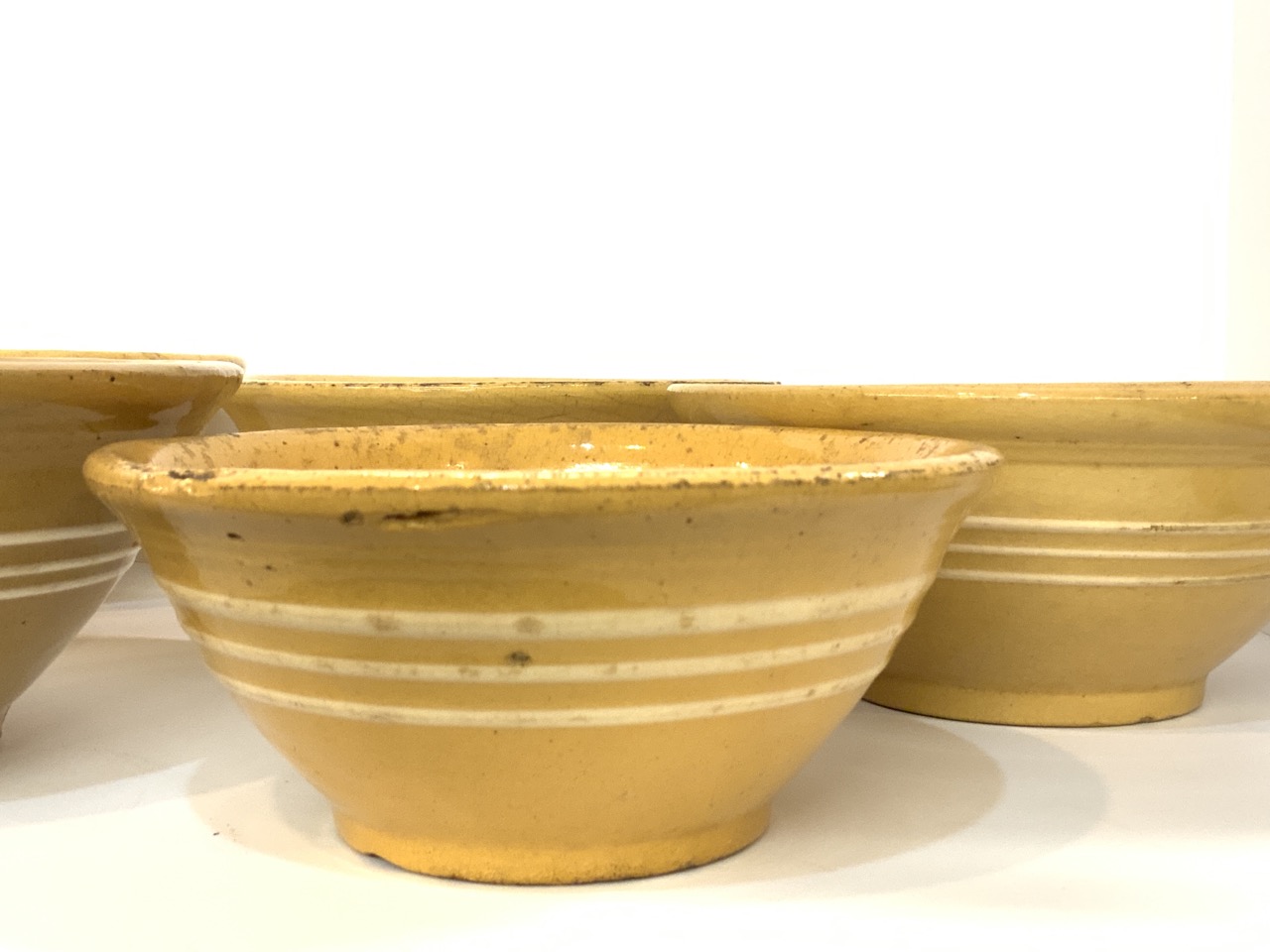 Six (6) assorted antique Yellowware bowls.