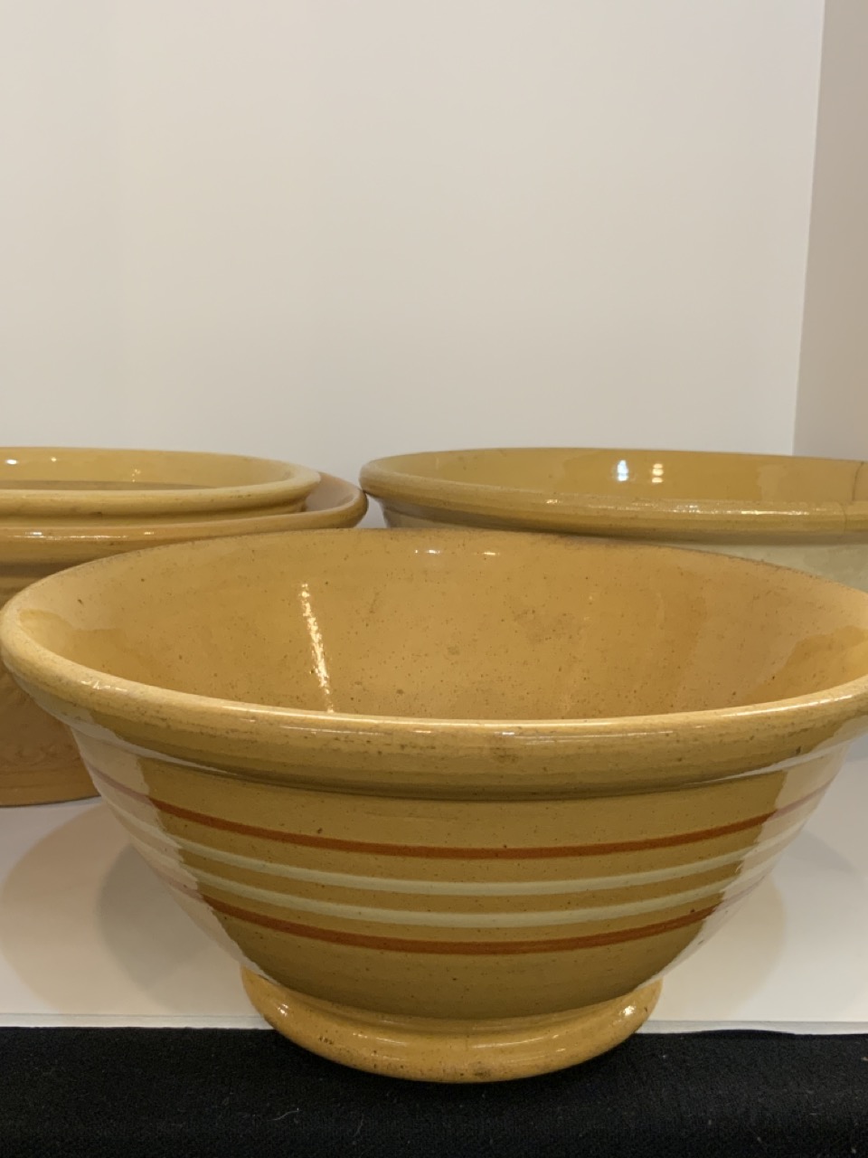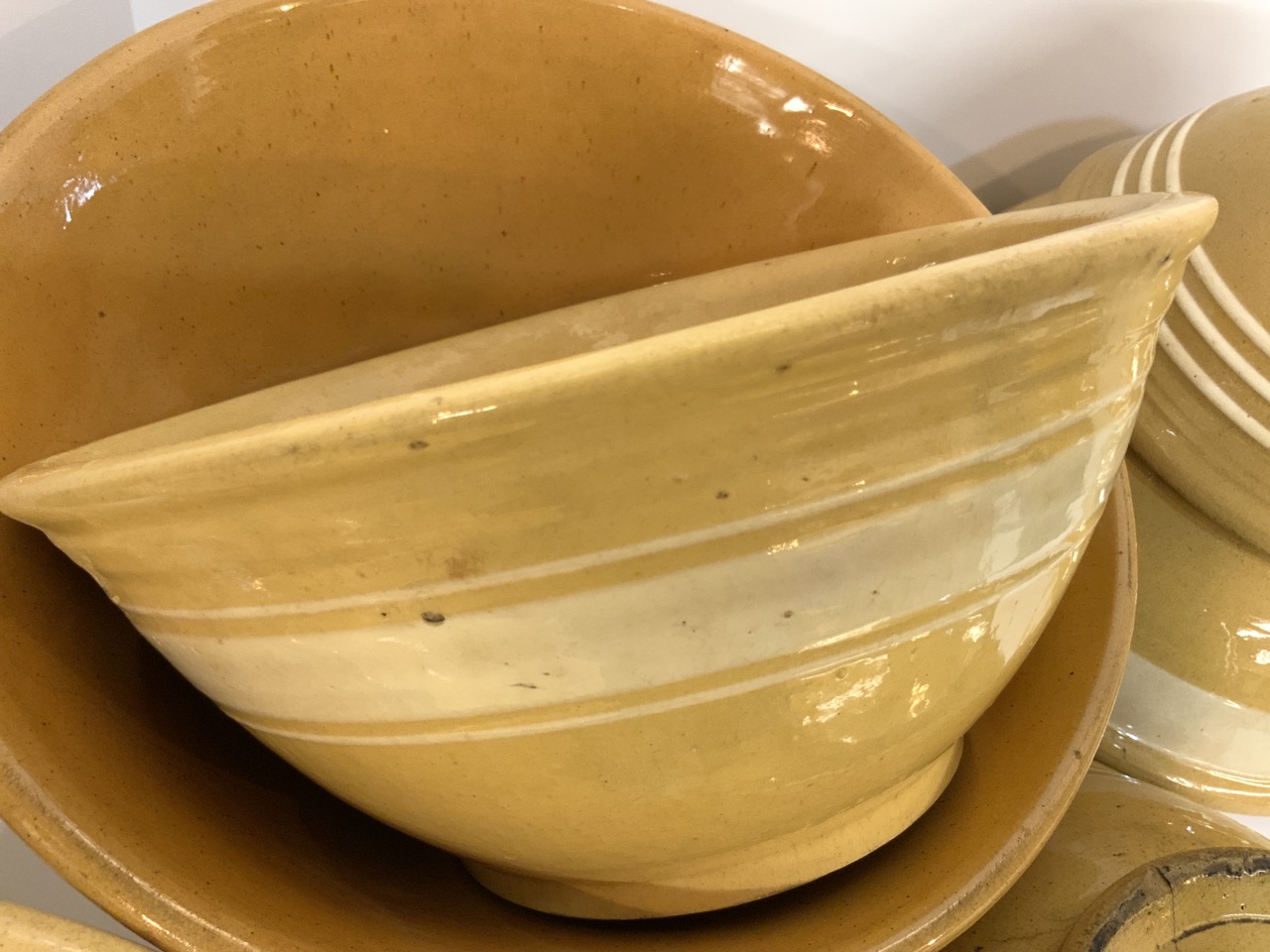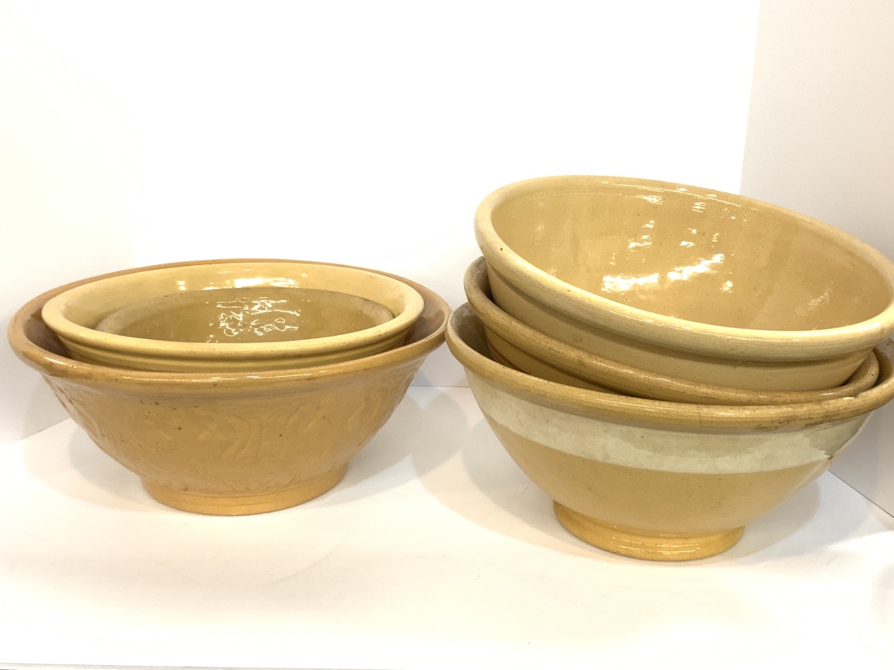 Six (6) Yellowware mixing bowls.