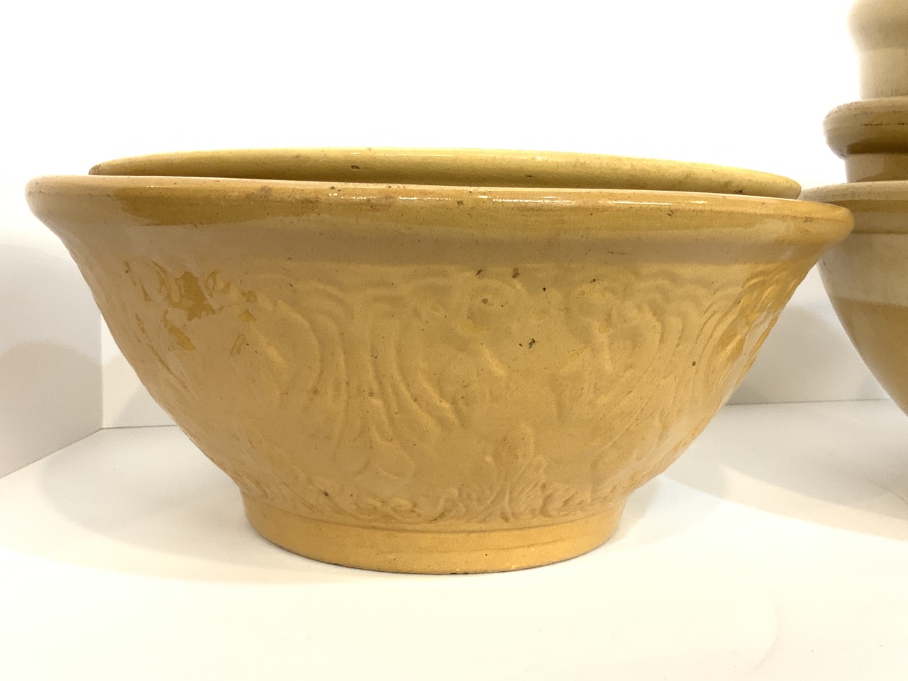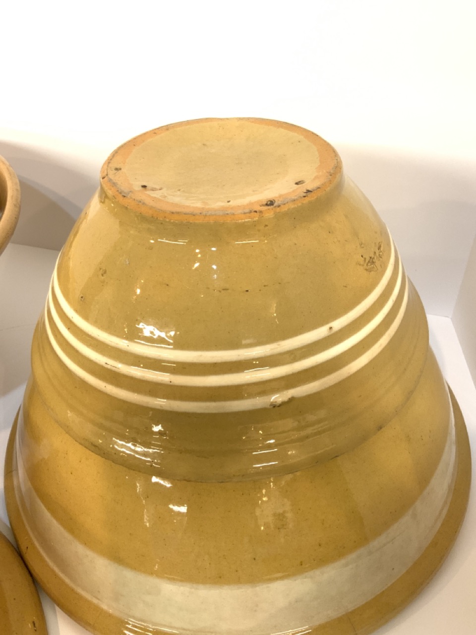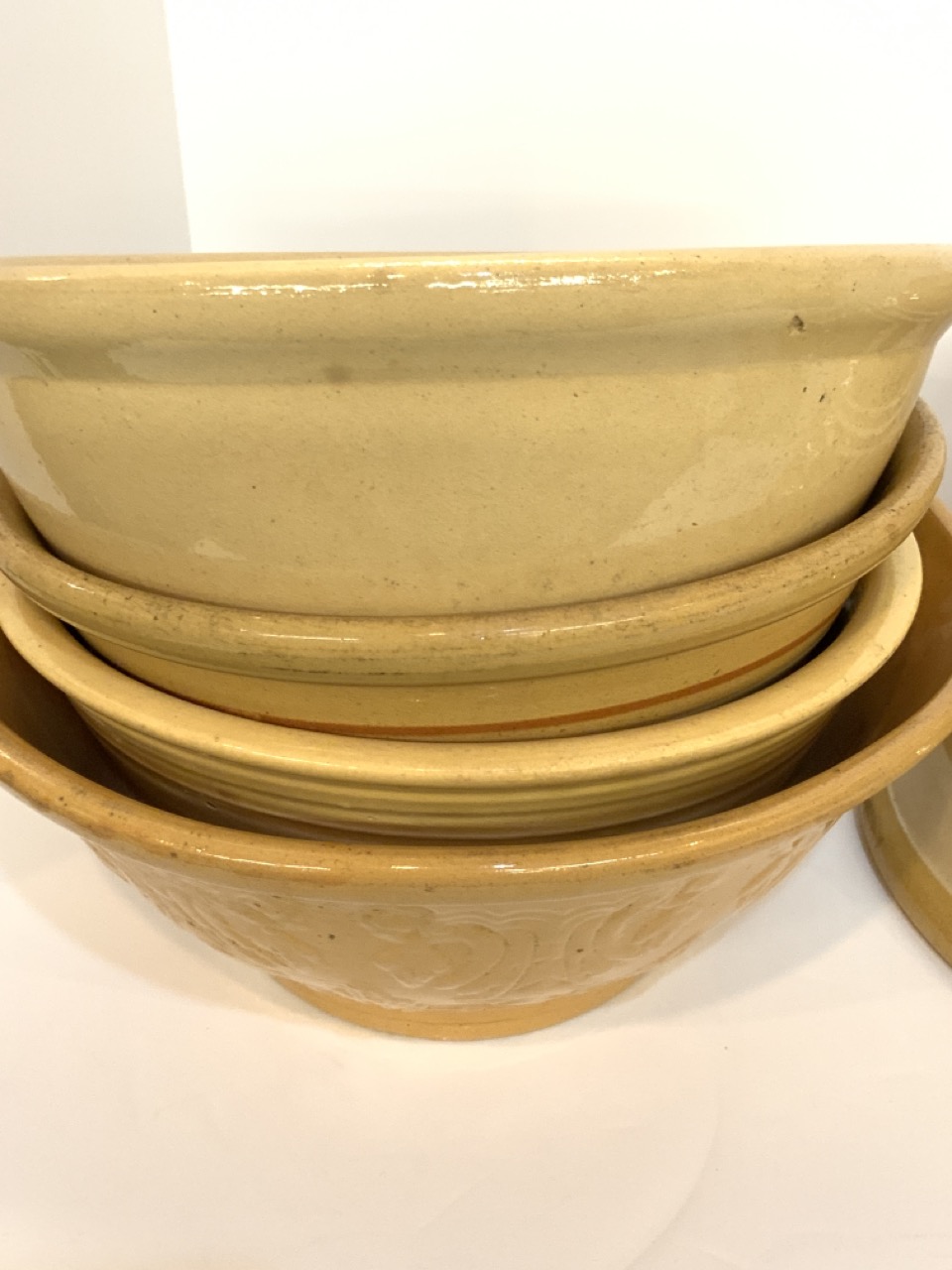 Six (6) Yellowware mixing bowls.