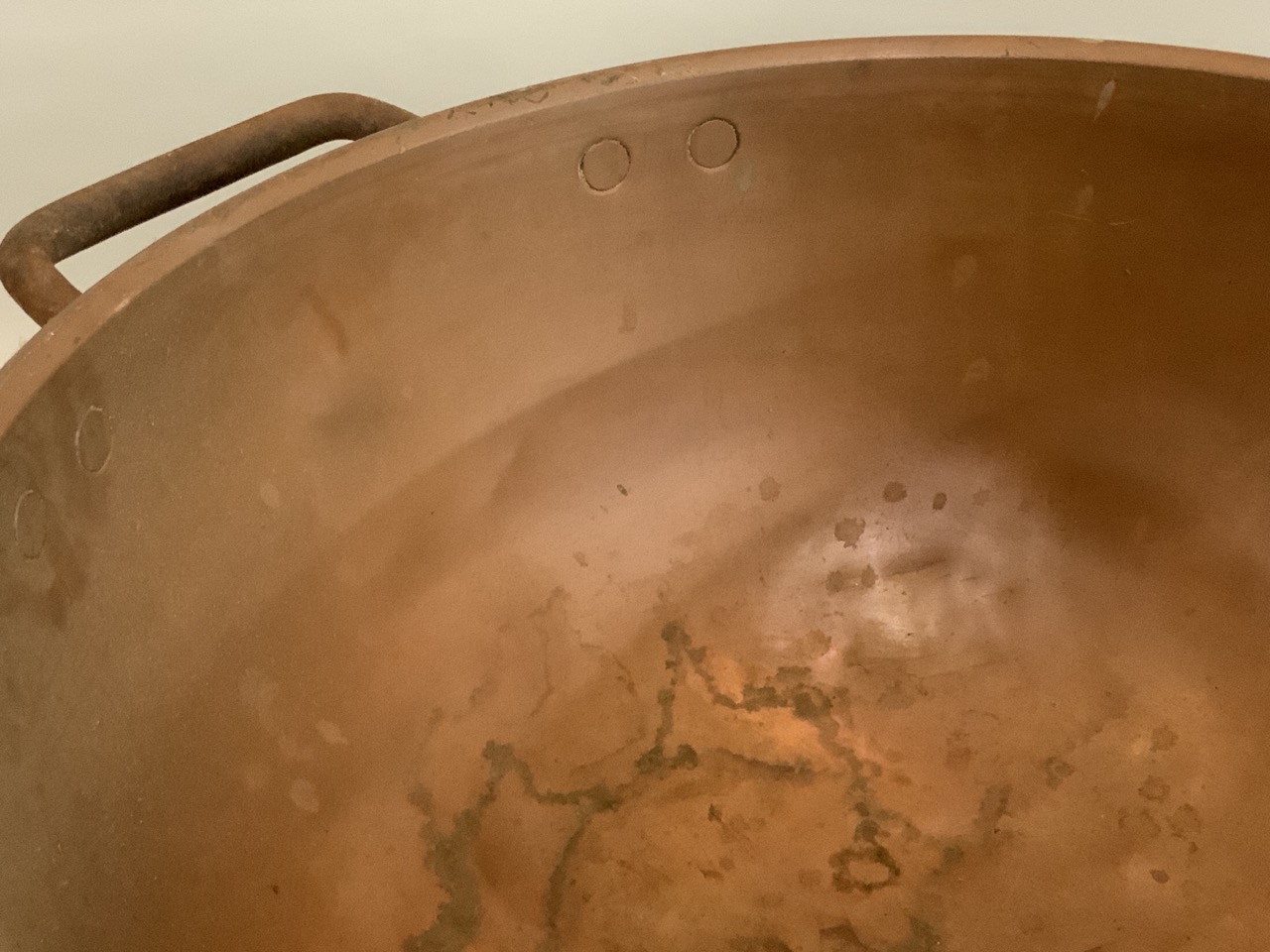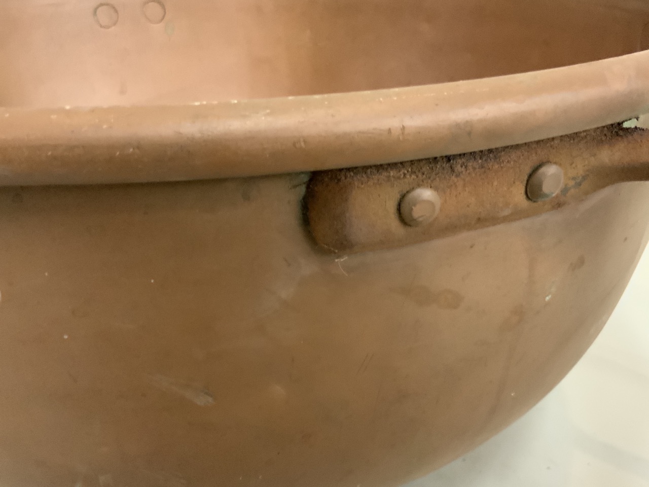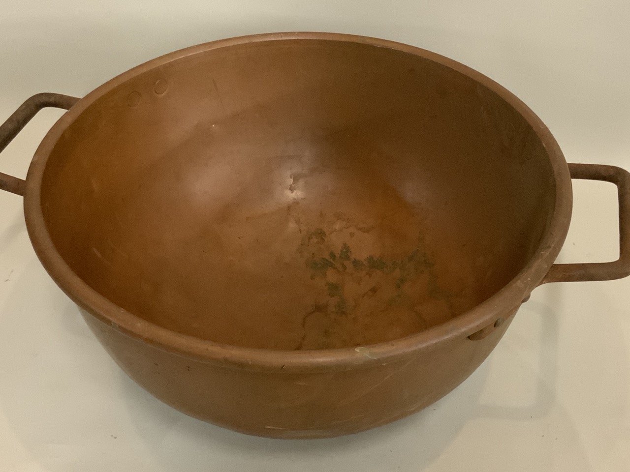 Large commercial double handled copper candy bowl.