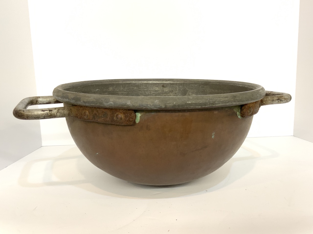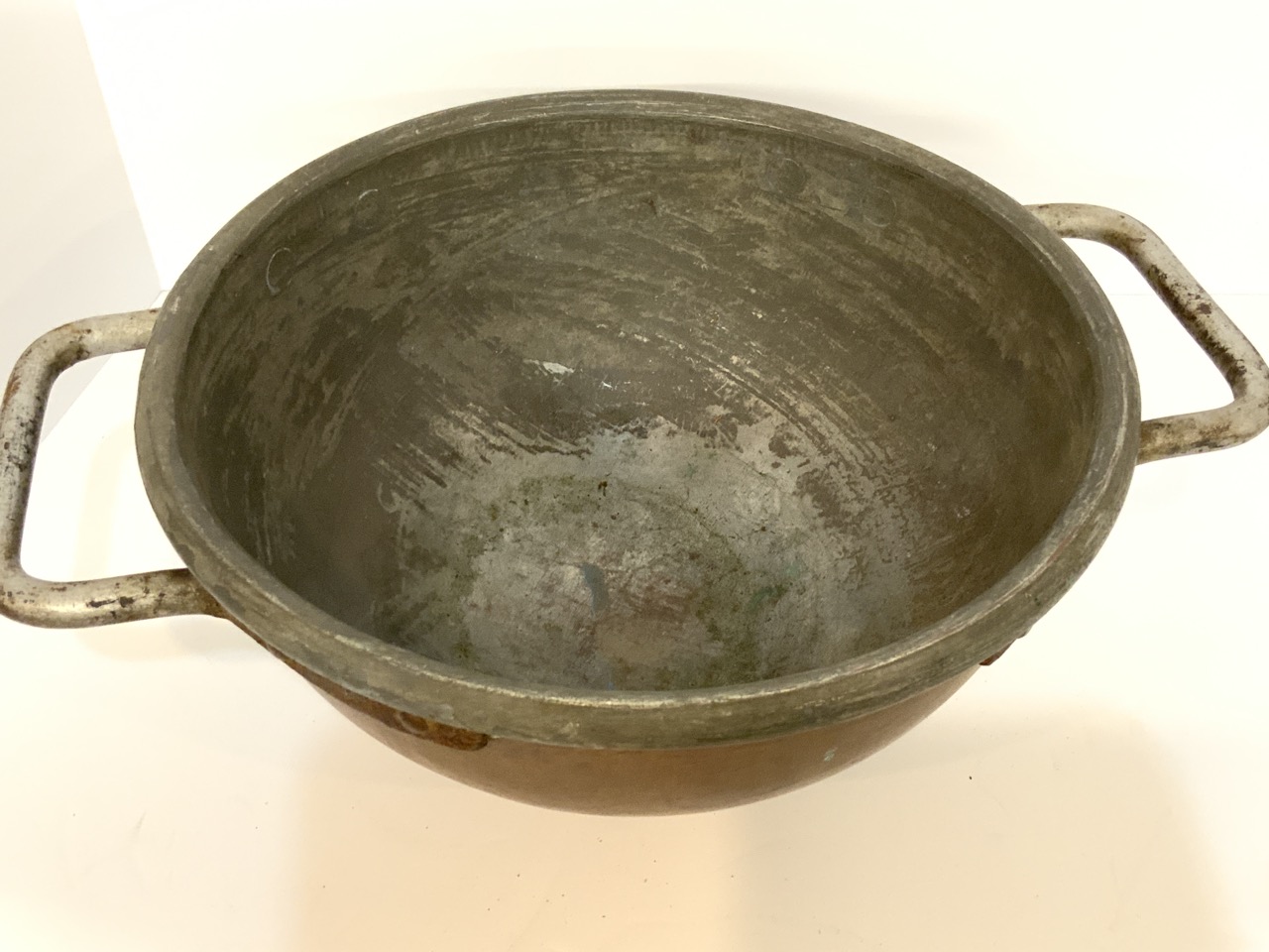 Double Handled Antique Zinc Lined Copper Bowl.
