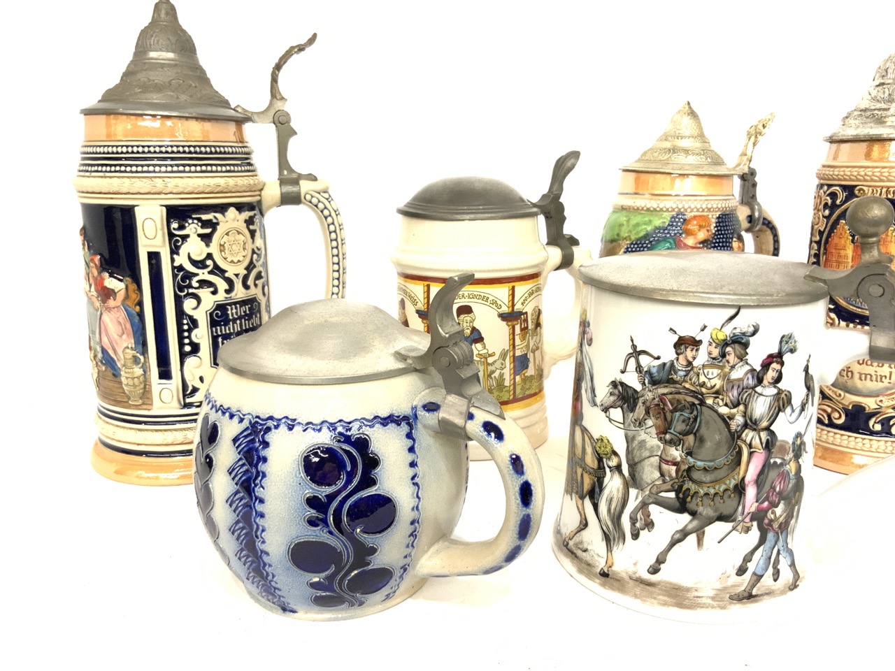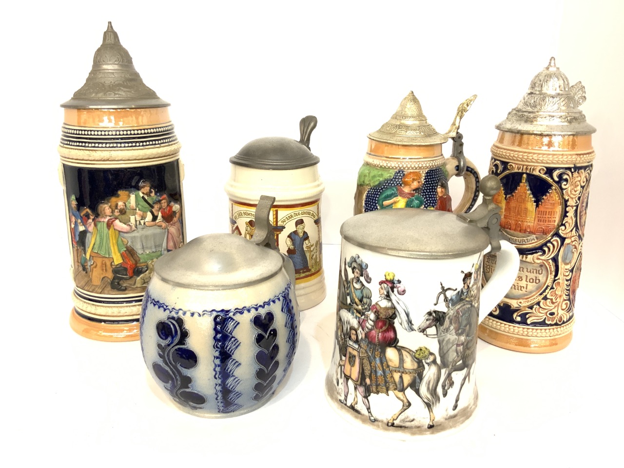 Six (6) Assorted German steins.