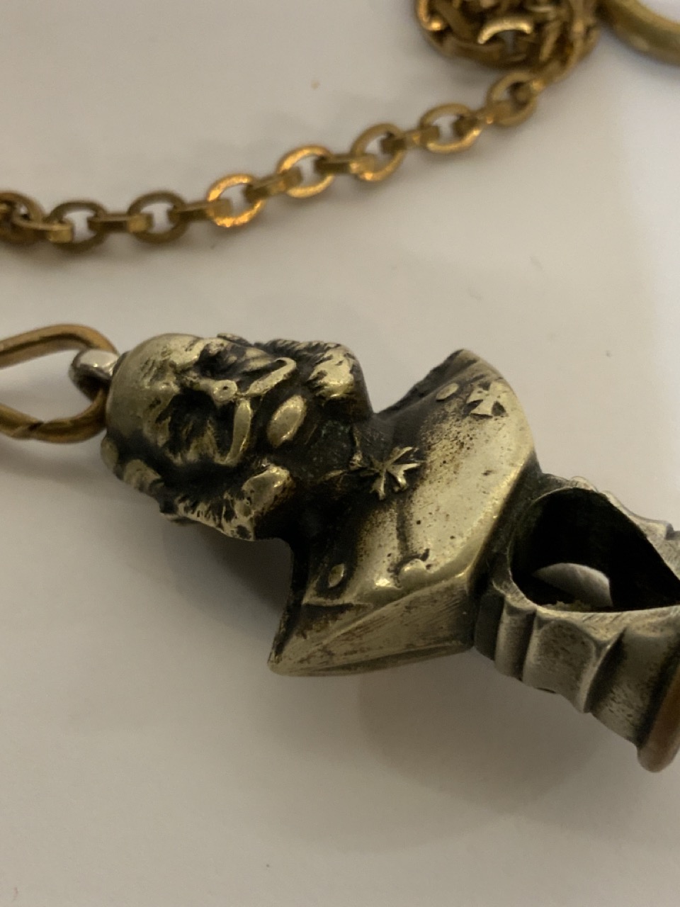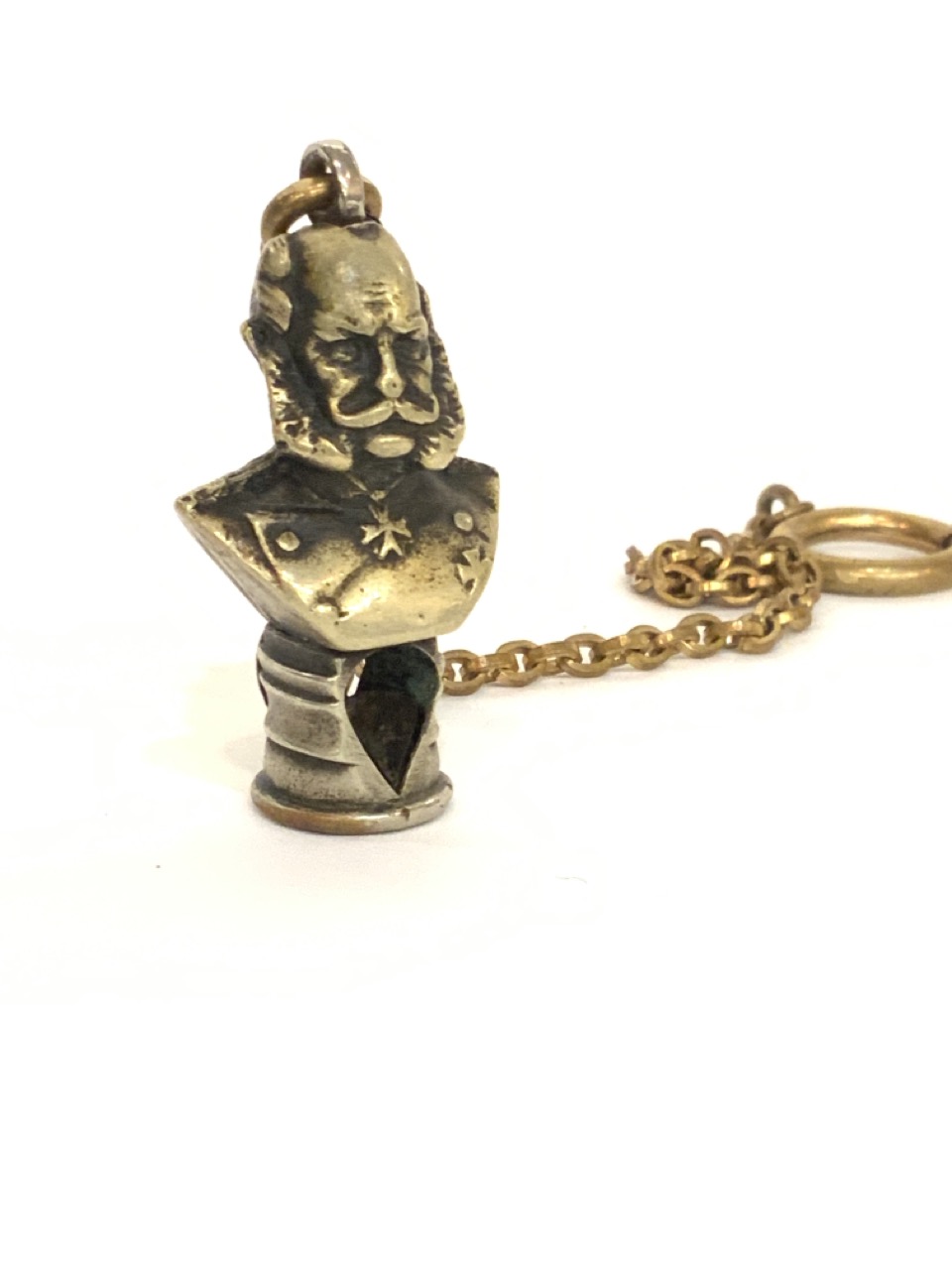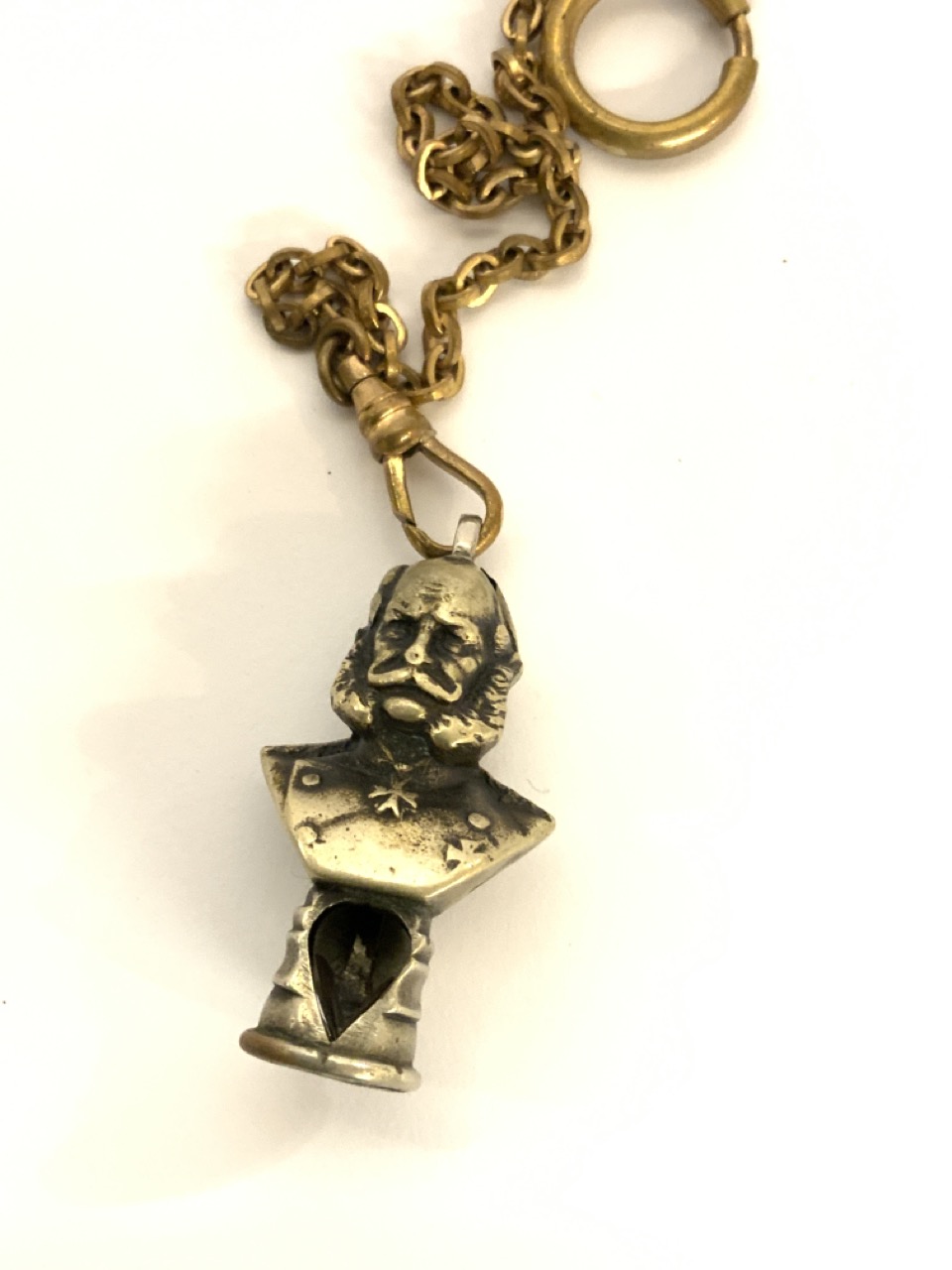 A fine and rare Franz Josef WWI era silver cigar cutter with a gold filled chain.